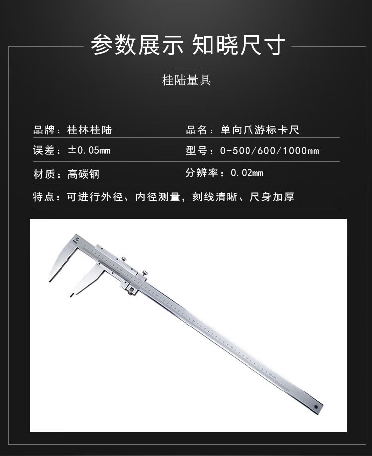 Large range one-way long claw vernier caliper 0-500 600 1000mm measuring tool internal and external diameter measurement accurate and durable 0-700mm