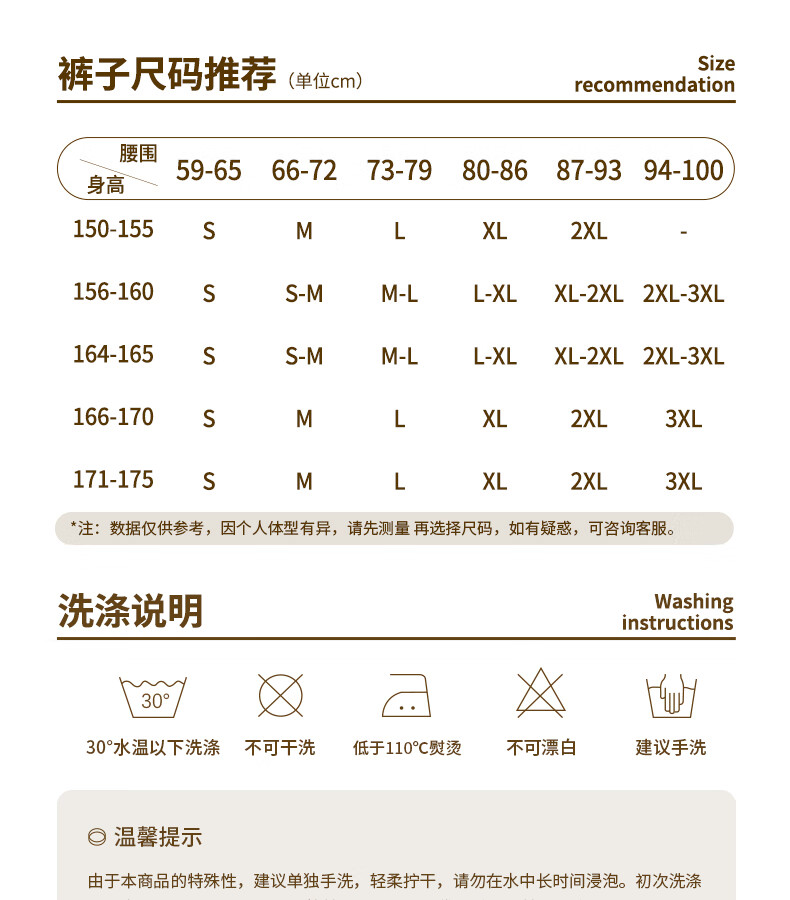 China (cm) 160-165/84-86 165-170 / 88-90 167-172 / 92-96 168-173 / 98-102 170-176 / 106-110