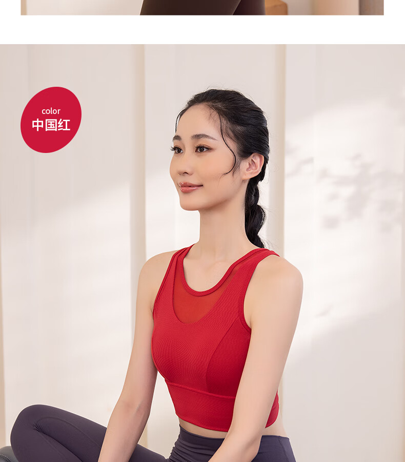 Meisu Yoga Bra Women's Mesh Breathable One-Cup Summer Shockproof Pilates Breast-Reducing Sports Bra Beautiful Back Fitness China Red (One-Cup) M
