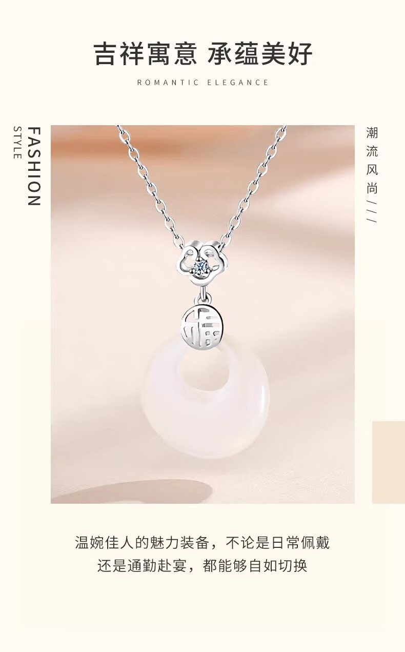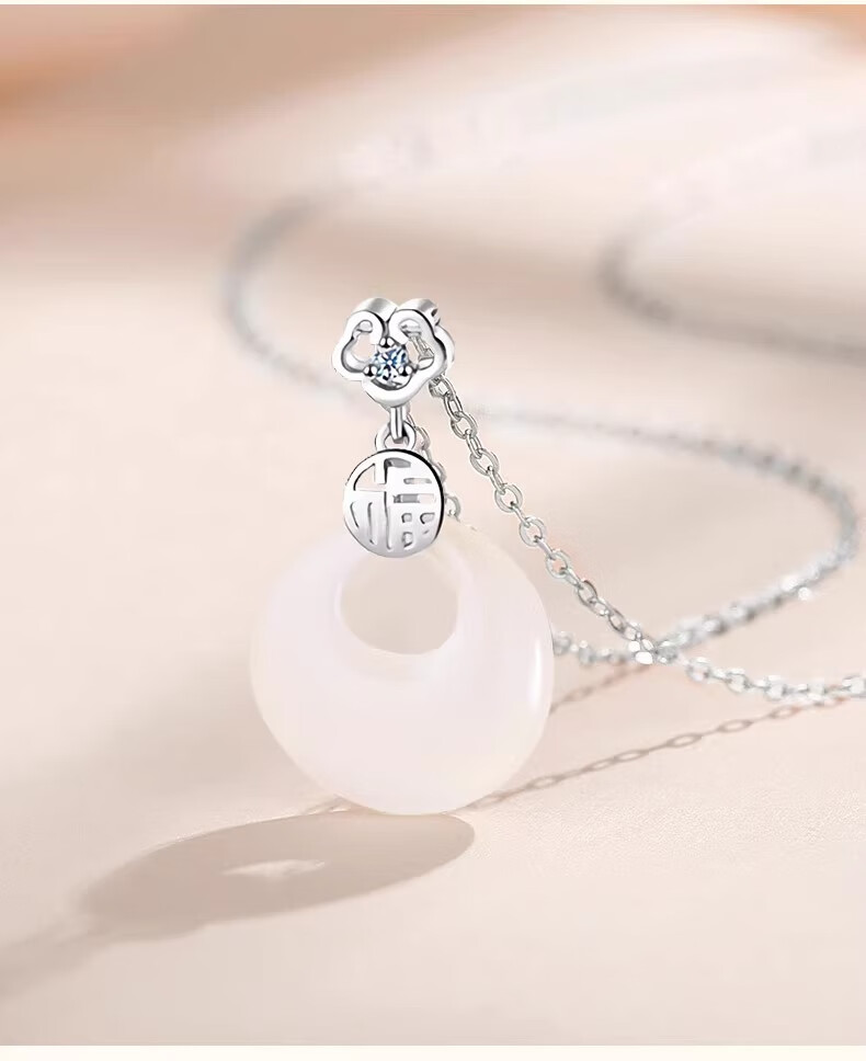 China Gold (CHINA GOLD) S Silver Blessing and Peace Buckle Necklace Women's Chalcedony Pendant for Old Valentine's Day Birthday Gift for Girlfriend and Wife Blessing and Peace Buckle Necklace Zhongjin Gift Box