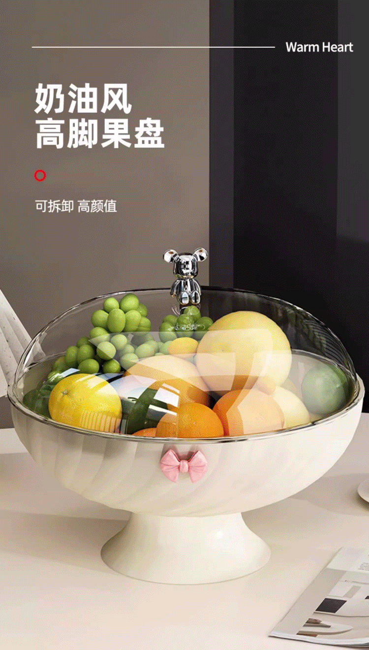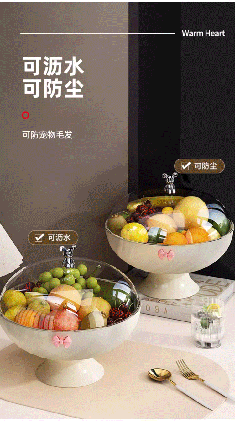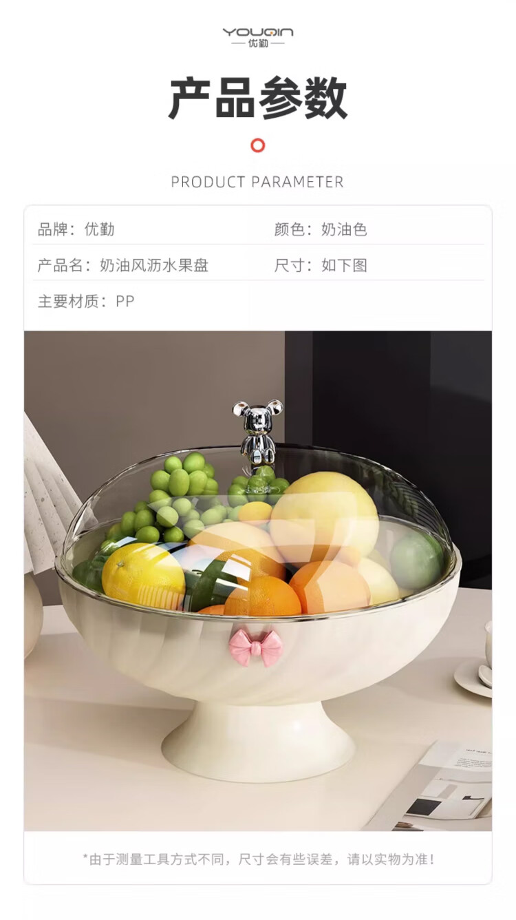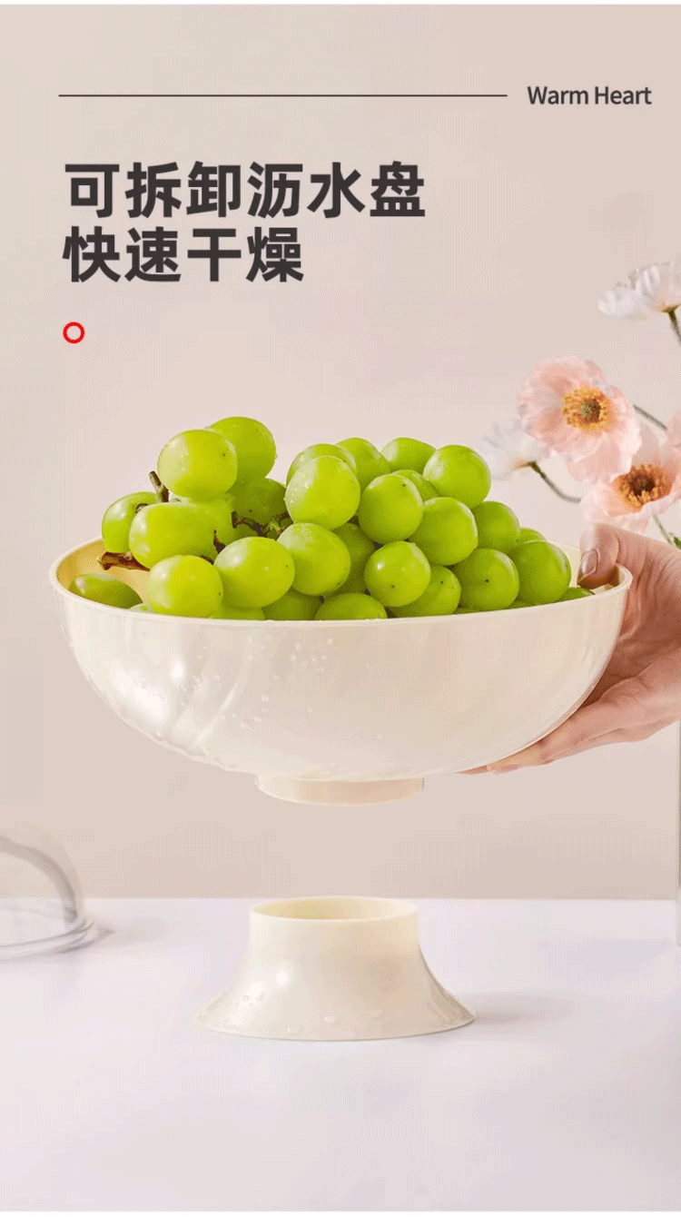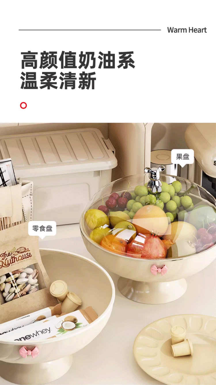 YOUQIN Fruit Plate Living Room Home High-Looking Coffee Table Fruit Plate Light Luxury Style Drainage Tray Dry Fruit Plate for Tea Break Drainable with Cover Cream White