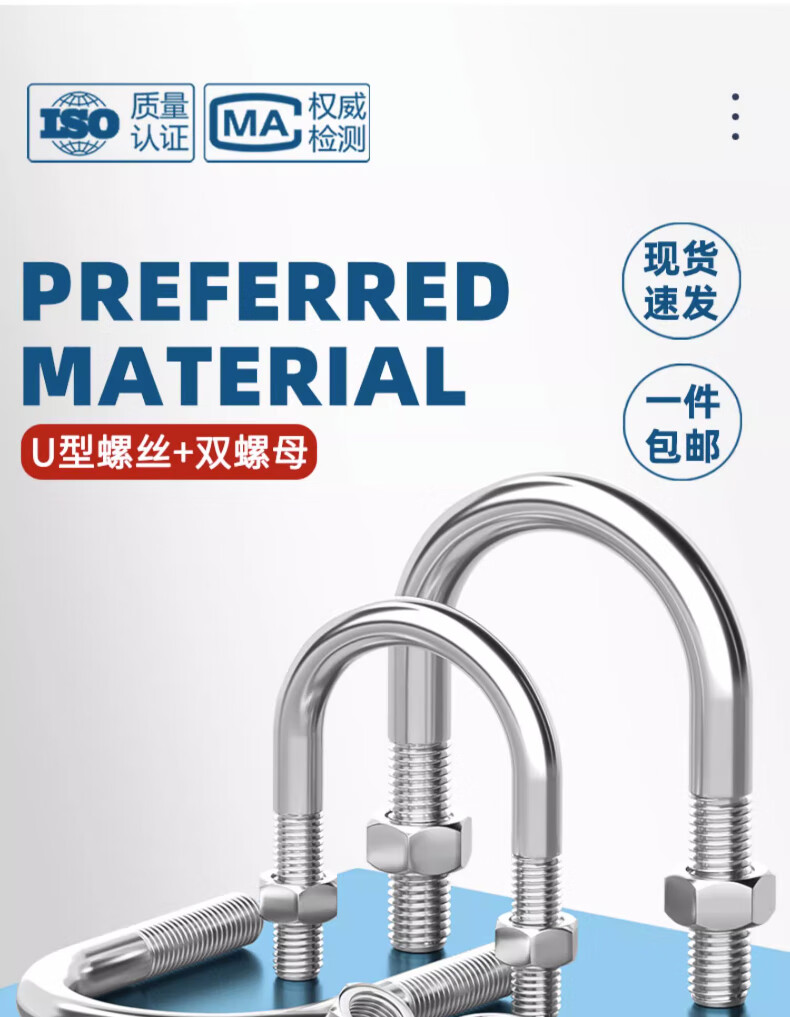 Tianzhuo Hardware 316/201 stainless steel U-bolt U-shaped screw tube clamp pipe clamp fixed buckle set M6M8M10M12mm 316-M12*325-1 set