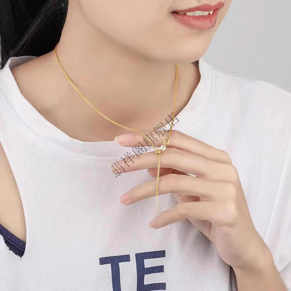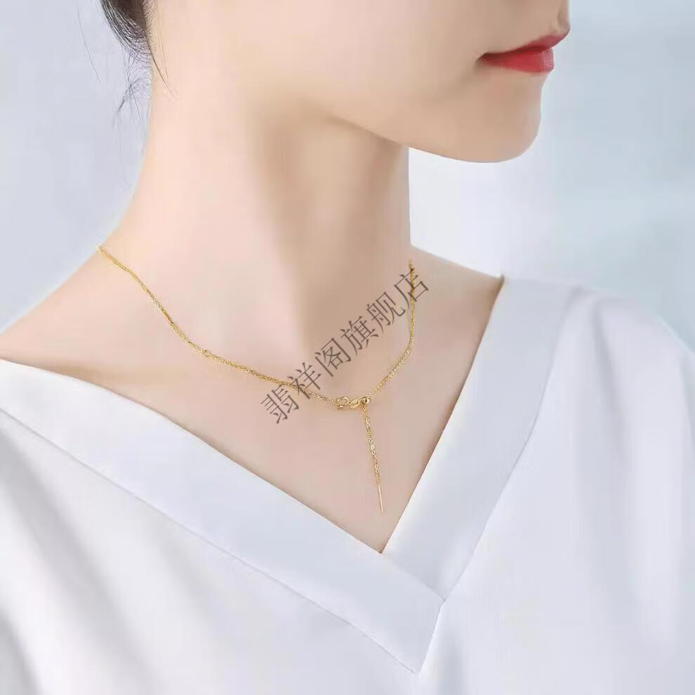 Feixiangge bag 18k gold color necklace women's clavicle chain color gold pigment chain O-shaped chain versatile gift for girlfriend's birthday 18K gold O-shaped chain M buckle
