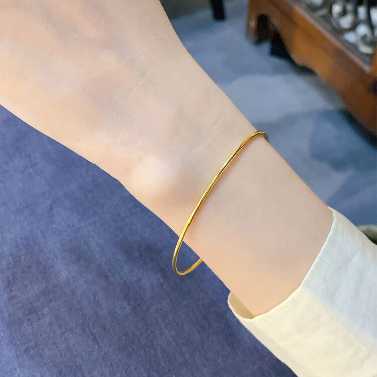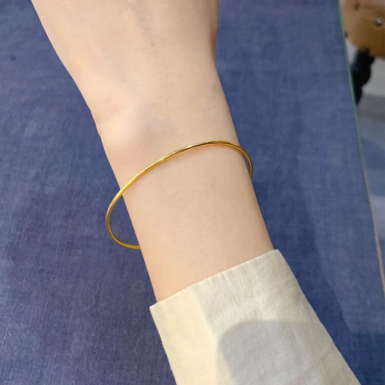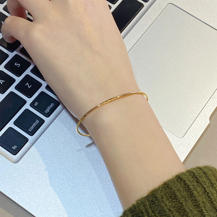 Brangdy original classic versatile pure handmade 18k gold-plated bracelet for women niche design simple and extremely thin 2mm gift for girlfriend 2mm smooth plain ring bracelet inner diameter 55mm