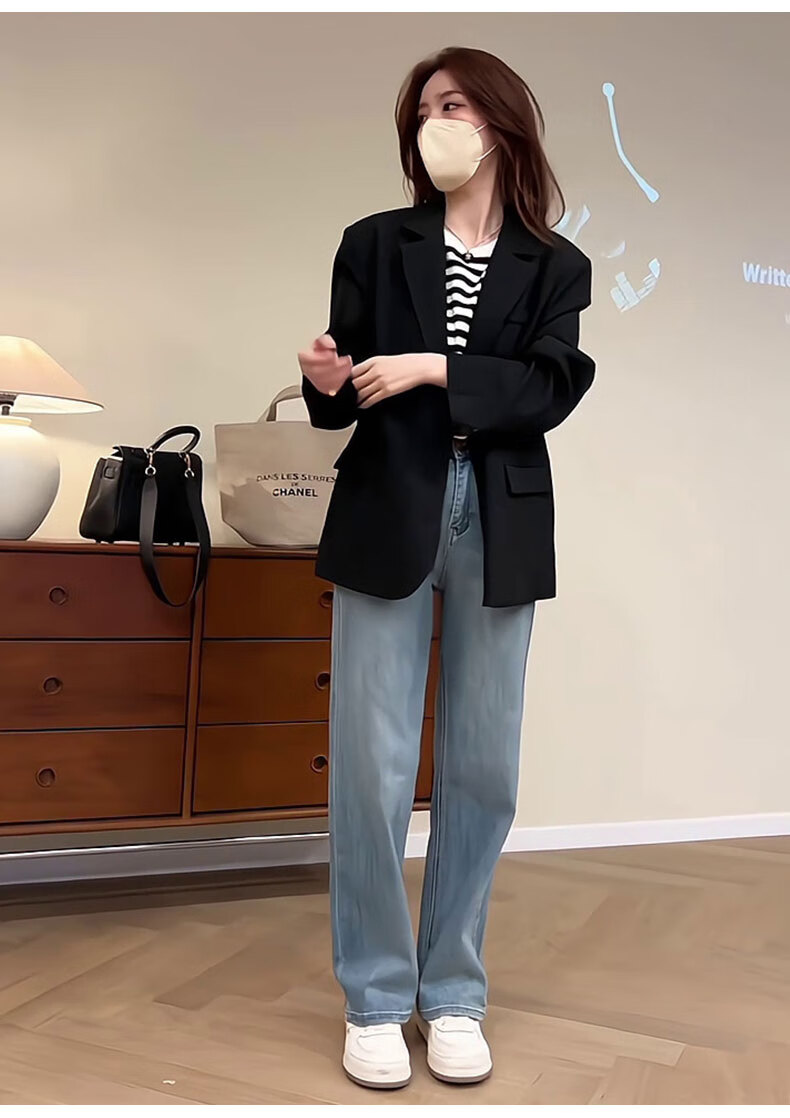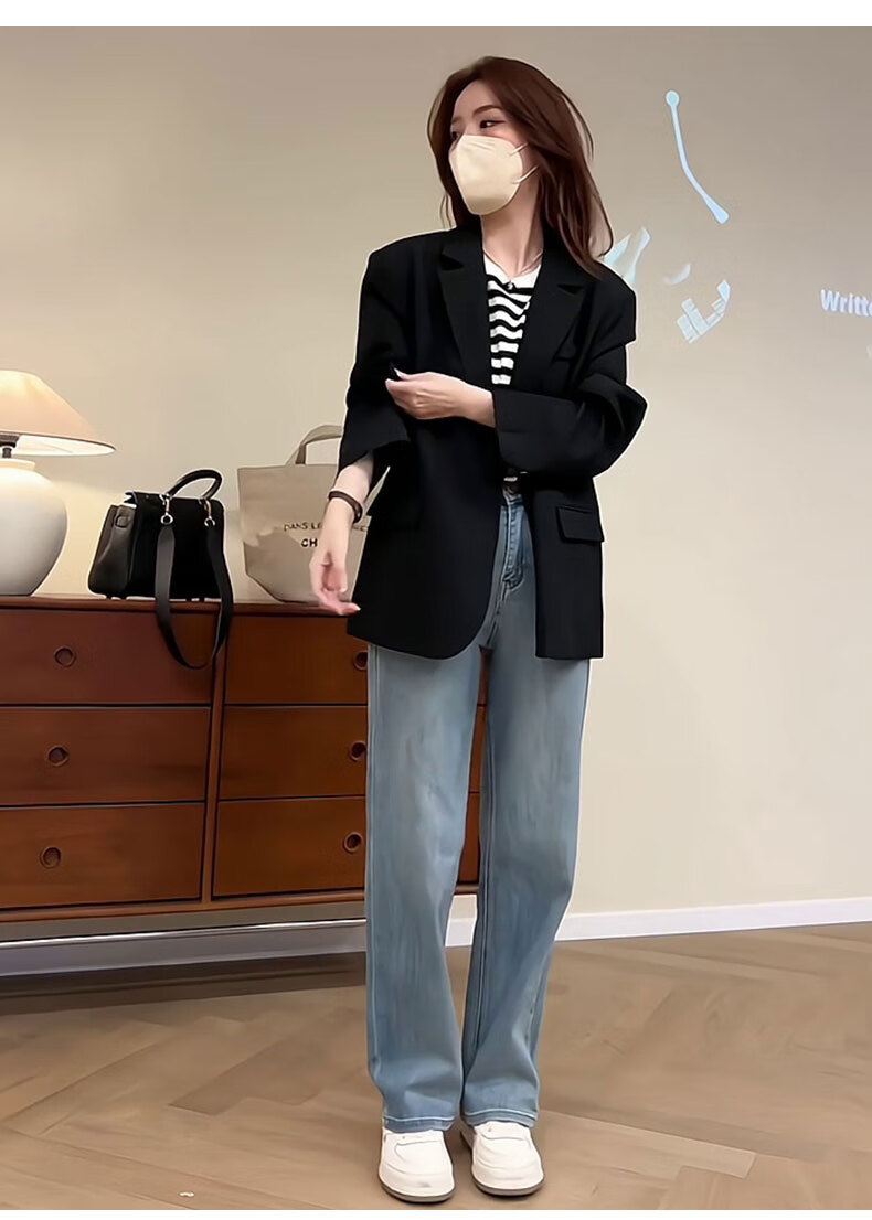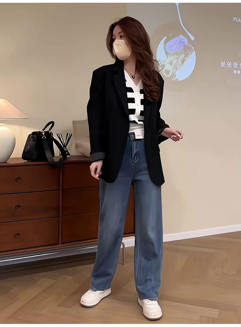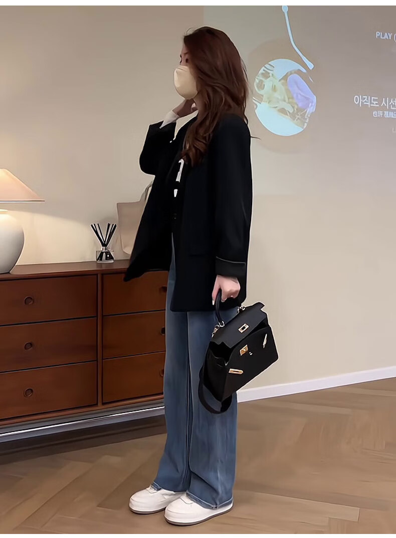 GARNUO black small suit jacket for women small 2025 spring and autumn new Korean style high-end temperament casual suit black L 111-120Jin Jin is equal to 0.5 kg
