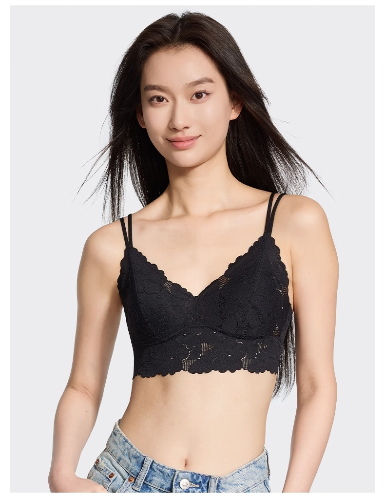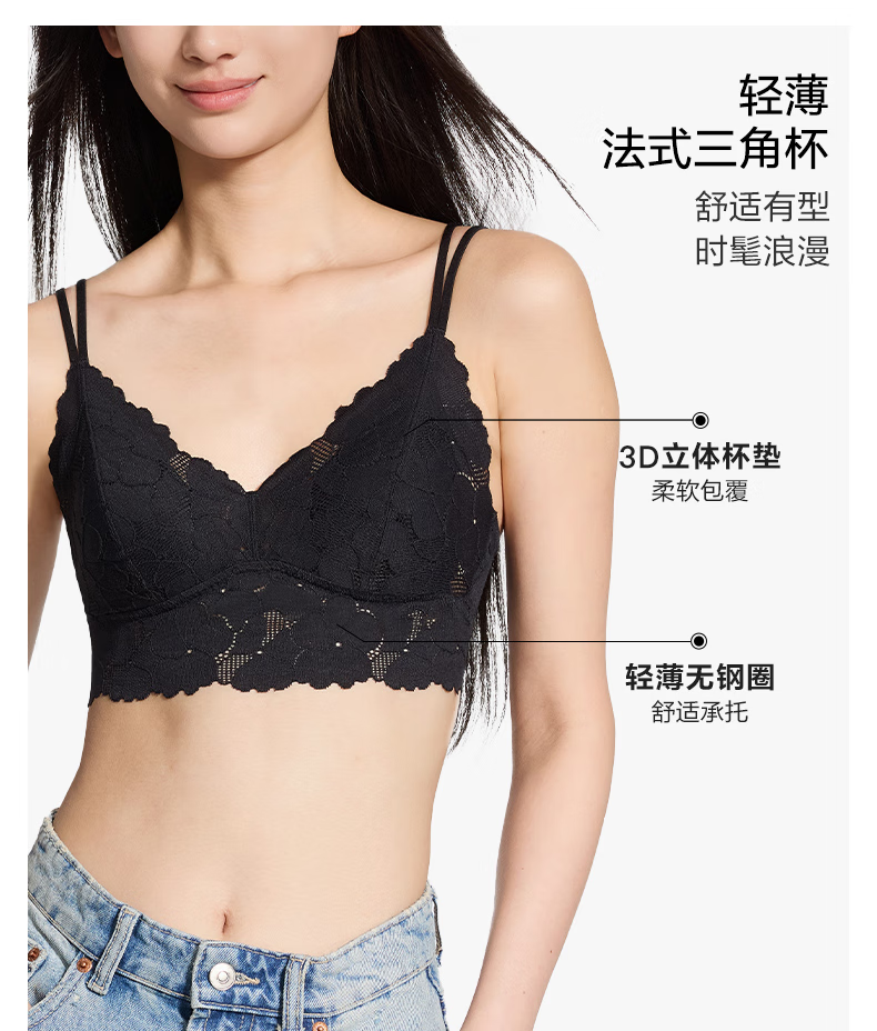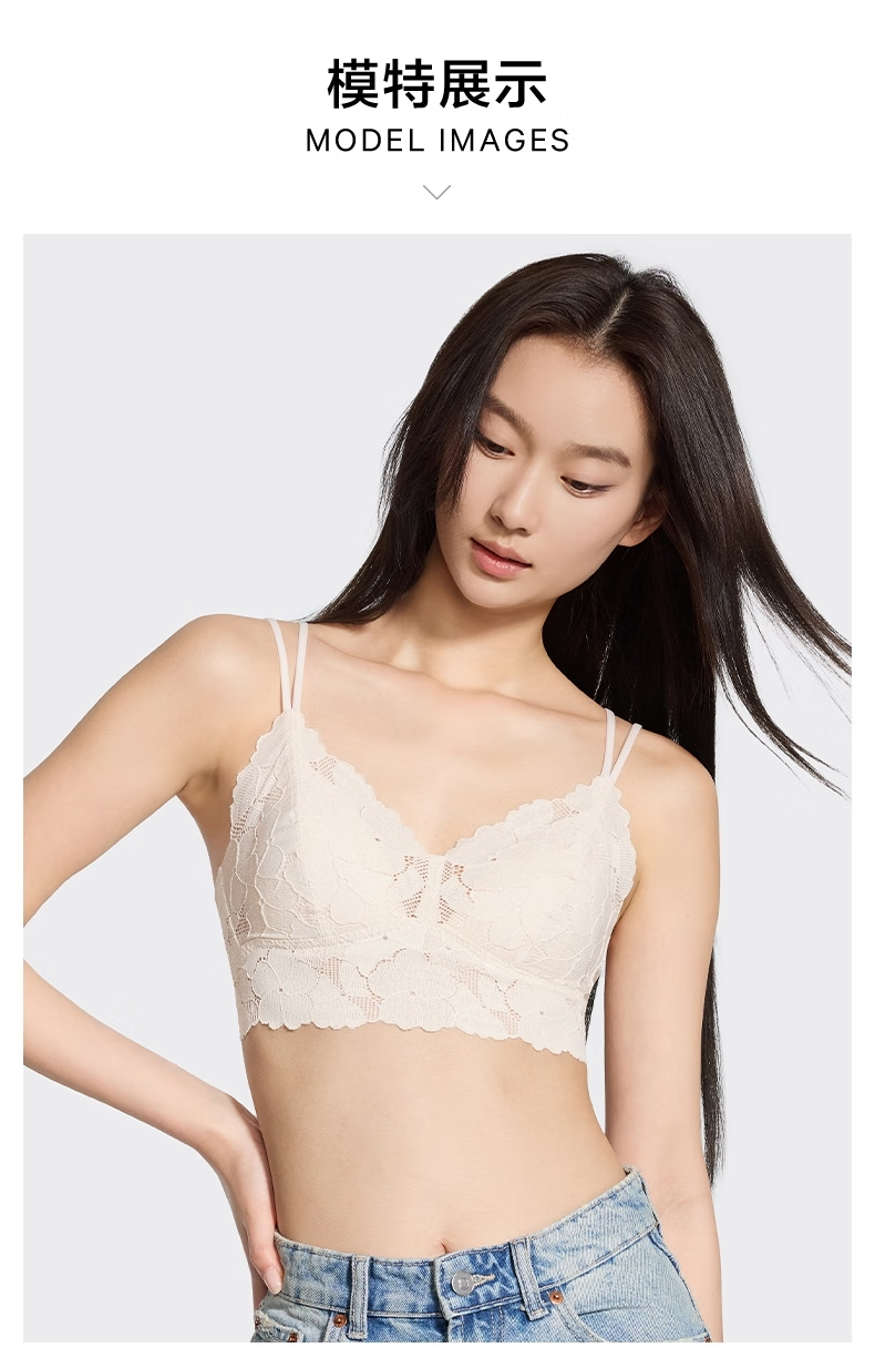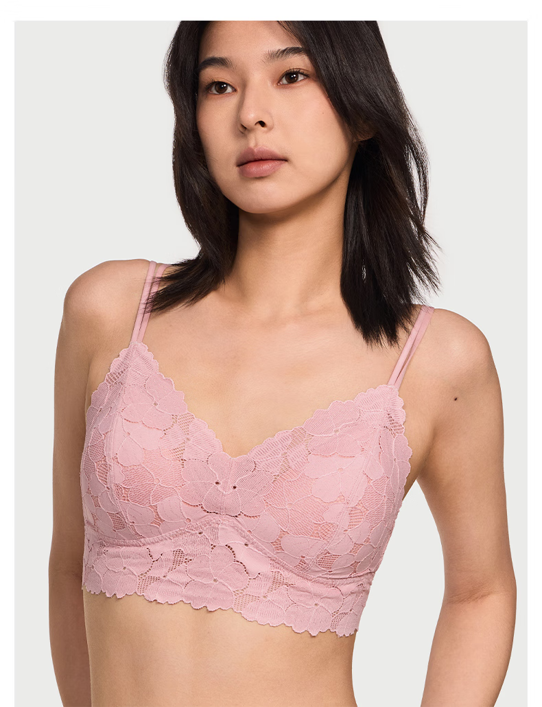 Victoria's Secret Французская треугольная чашка Мягкое кружево с цветочным принтом Тонкий беспроводной бюстгальтер Нижнее белье Жилет 34Y5 Кокосовый белый цветочный стиль 11249615 M