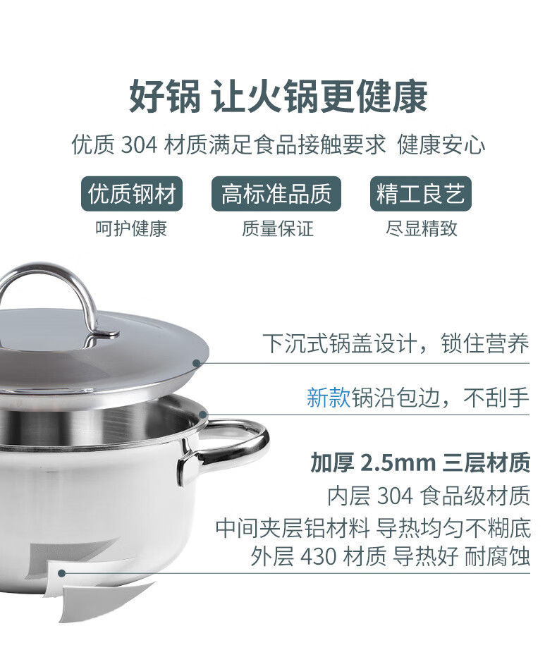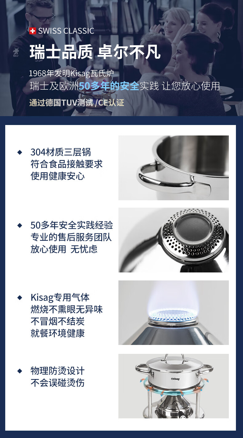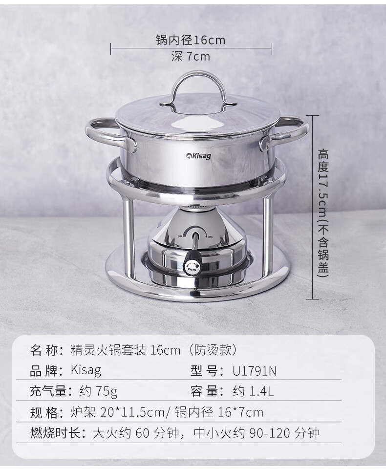 Kisag Swiss Kisag stainless steel single person one pot small hot pot household commercial Wagyu hot pot upgraded model Elf anti-scald model (U1791N) 16cm