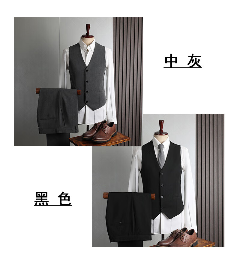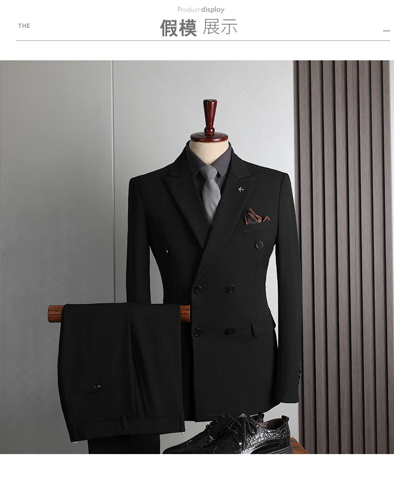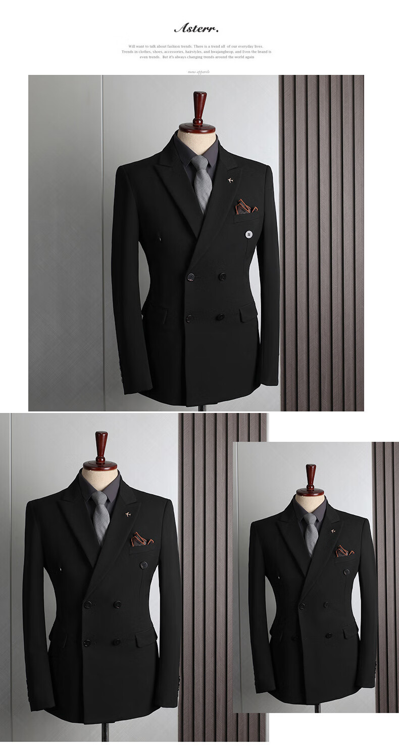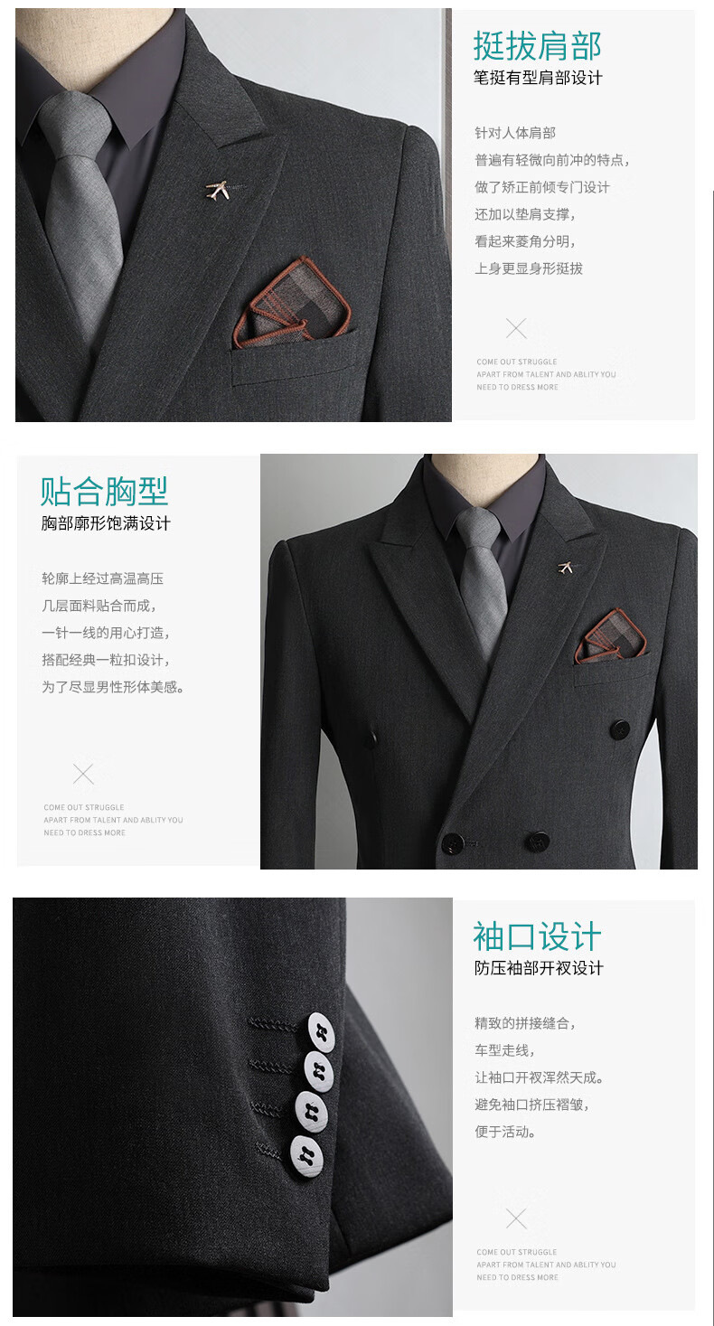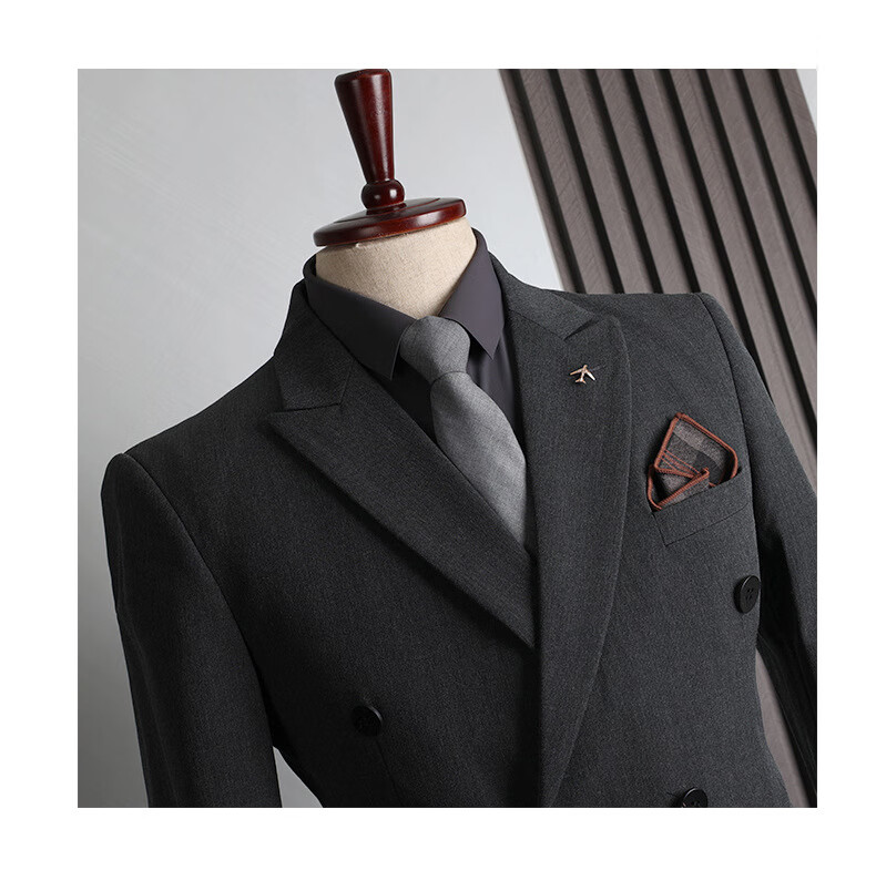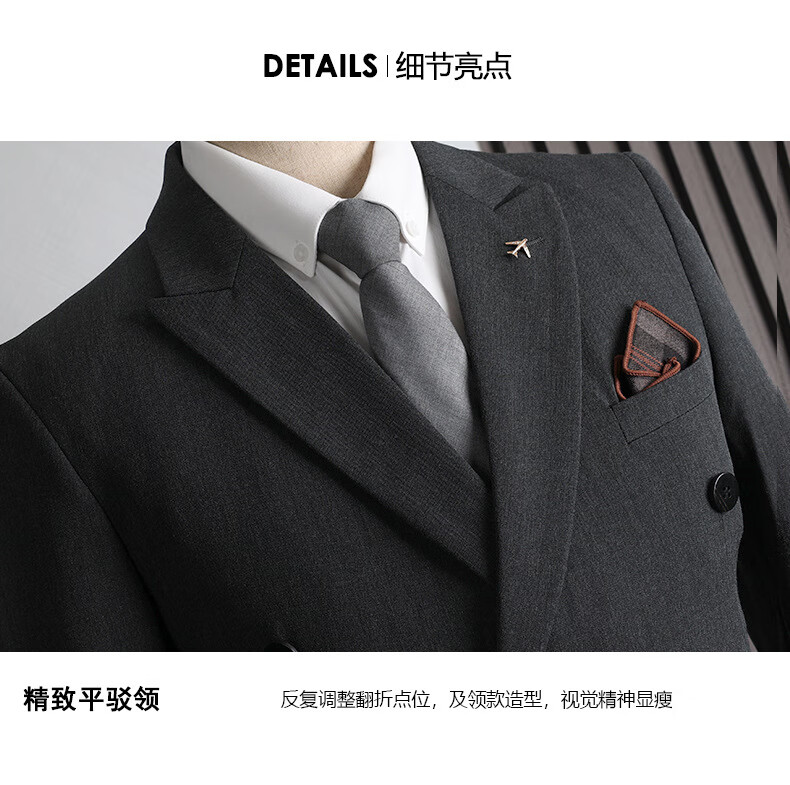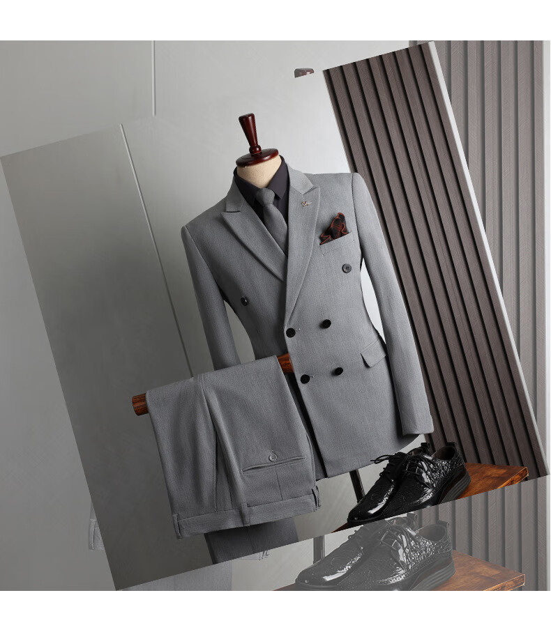 Pierre Cardin suit men's British style double-breasted professional formal business casual suit three-piece groom's wedding dress medium gray suit + pants XL 52 recommended 125-135Jin Jin equals about 0.5 kg
