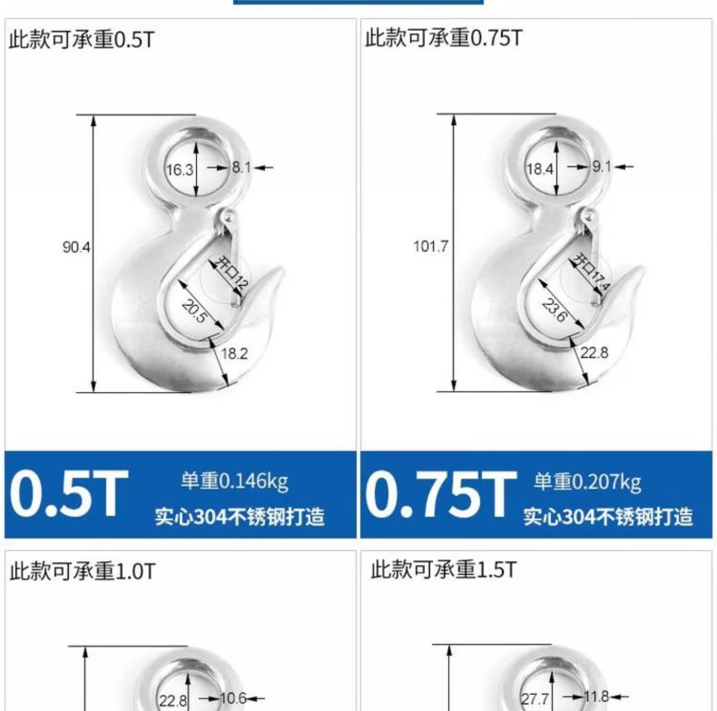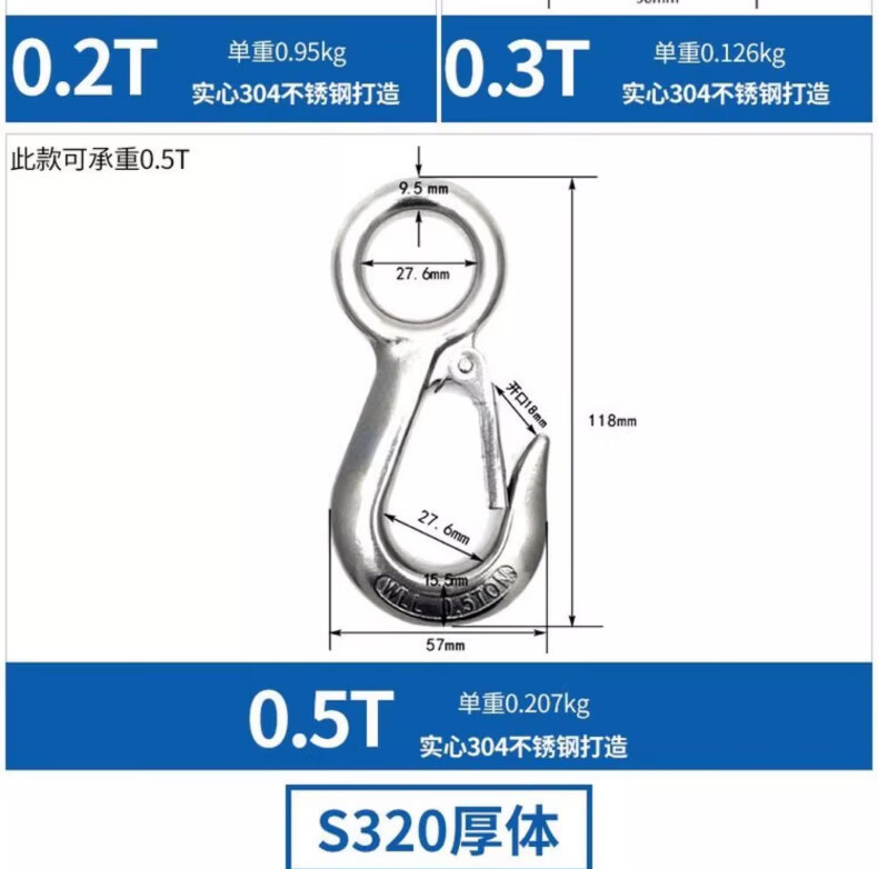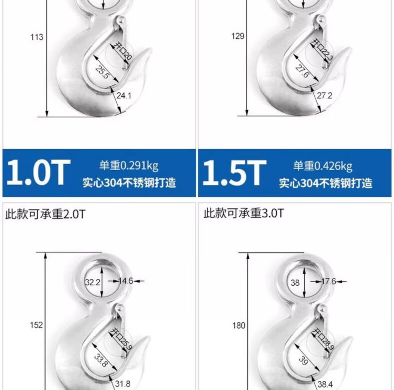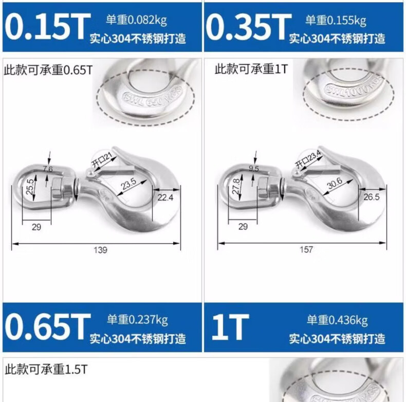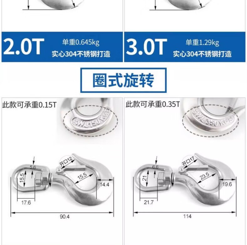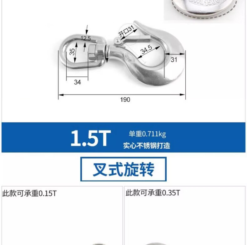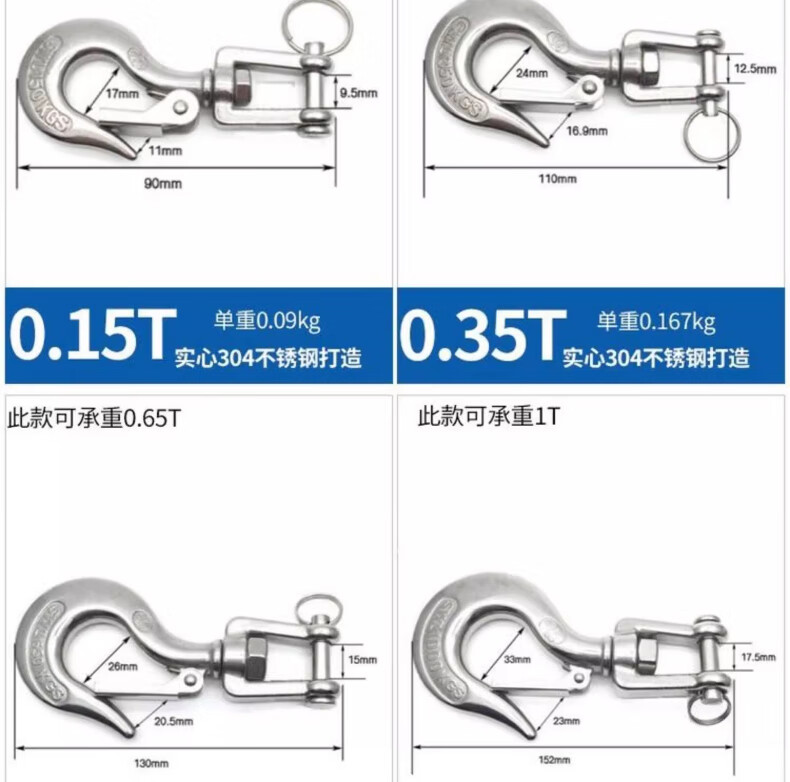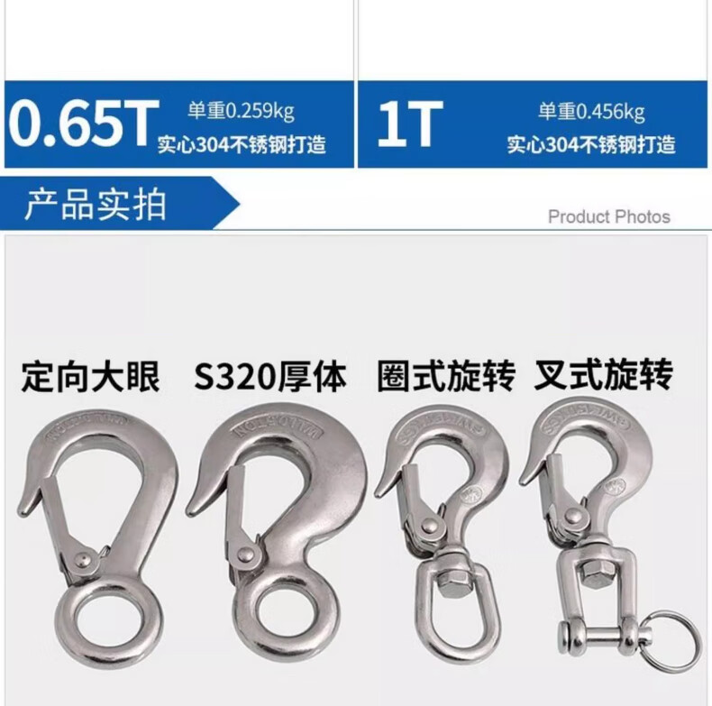 Tianzhuo Hardware 304 stainless steel American cargo hook retractor hook grab directional swivel ring hook load-bearing hook lifting hook directional big eye 0.2T