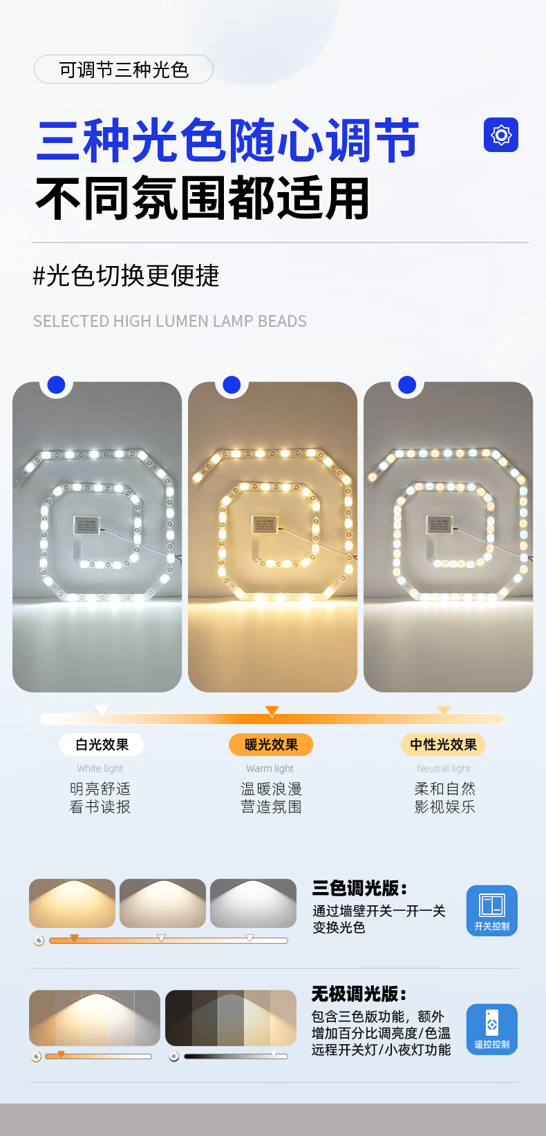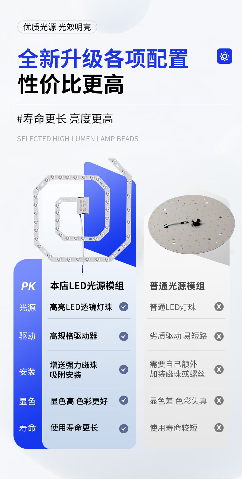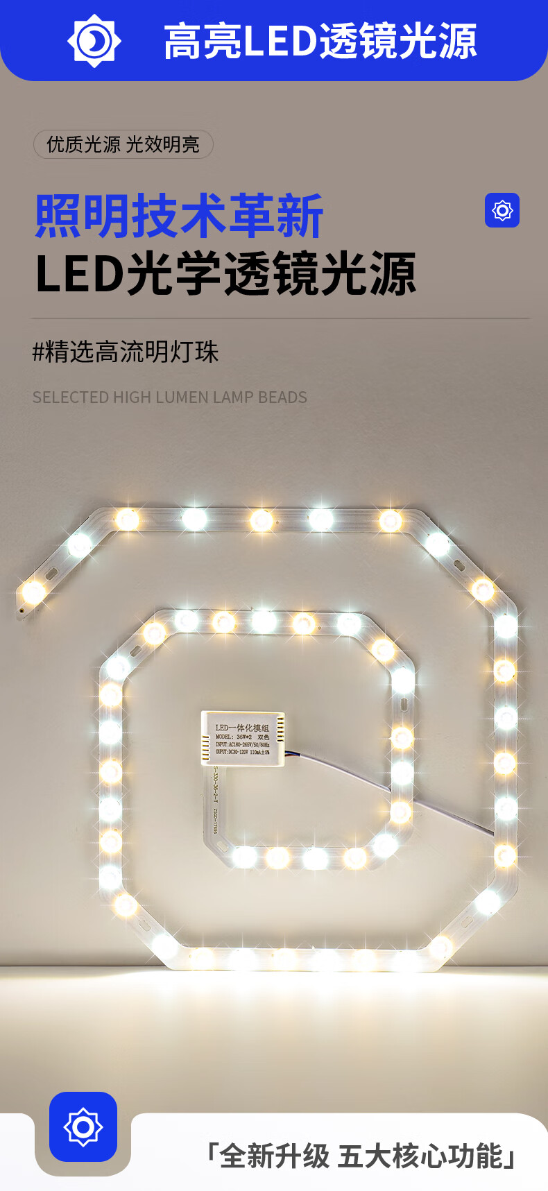 Micro LED ceiling lamp wick round modified light panel modified light source ring replacement lamp strip household lamp panel lens 19.8cm white light 36W other other