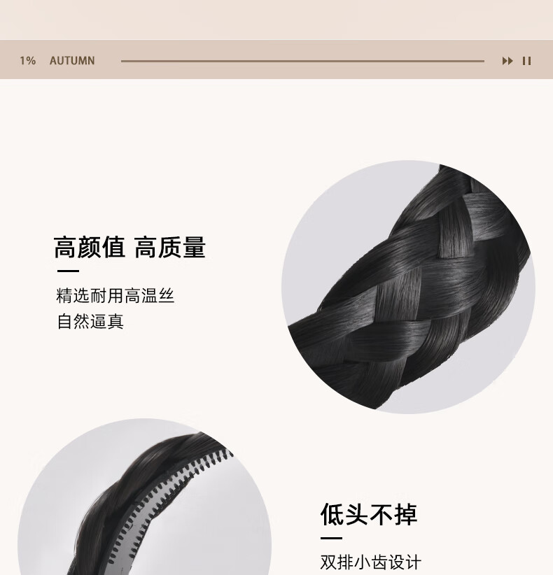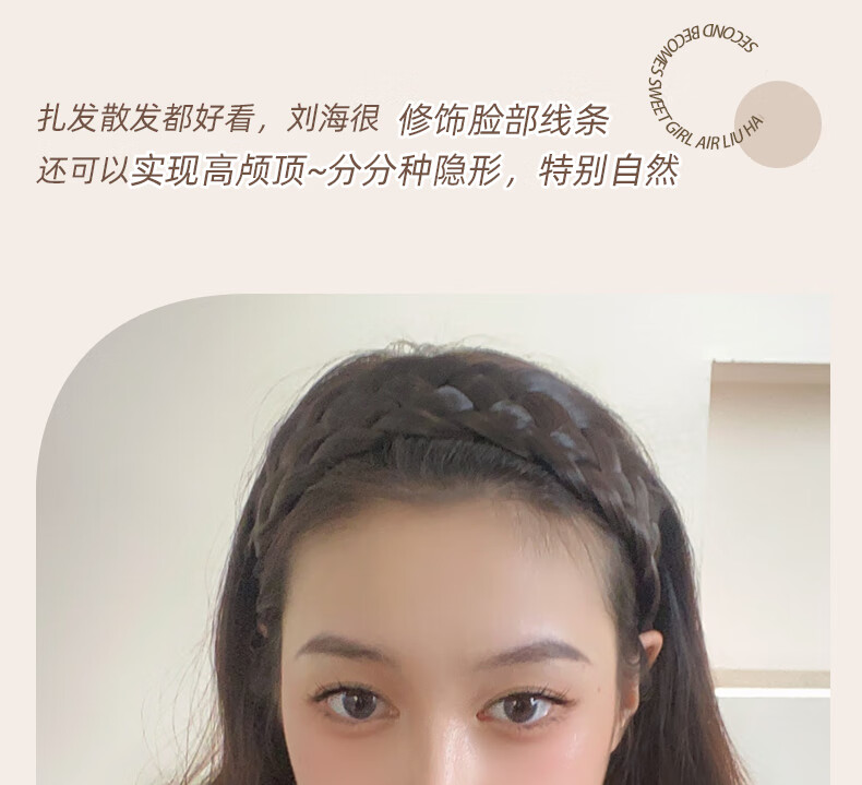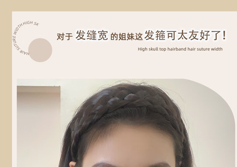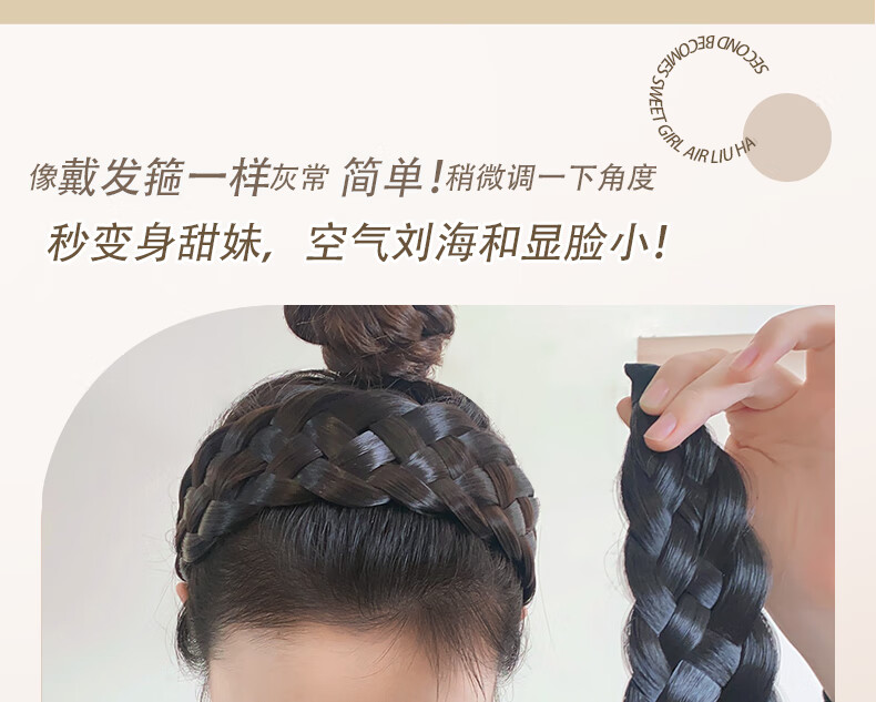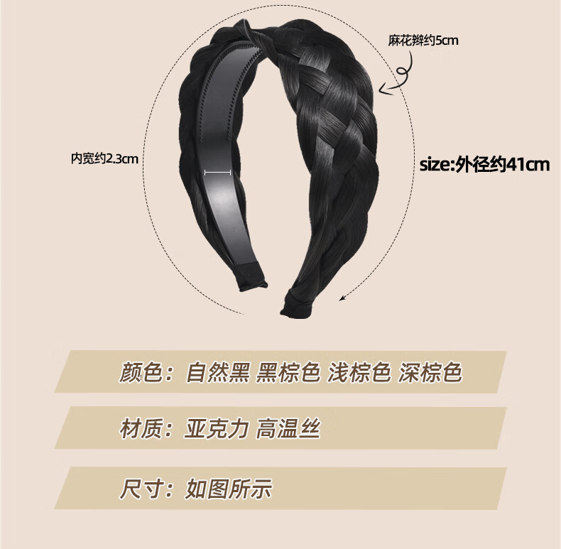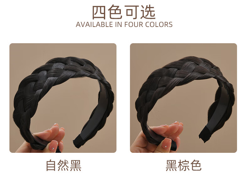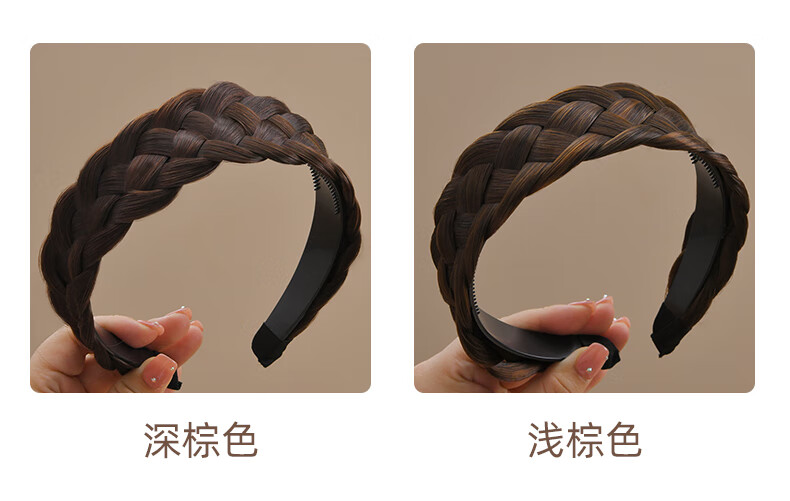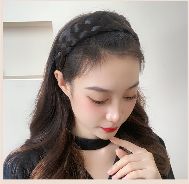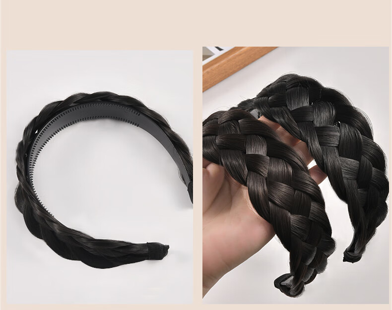 Zuoou wig headband for women with wide edges to cover white hair, braided hairband, five-strand braid, toothed anti-slip hair bundle, black brown
