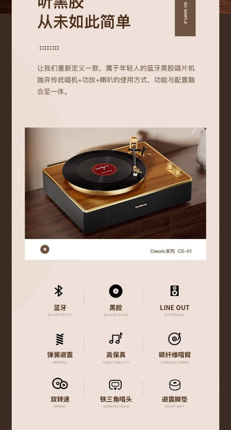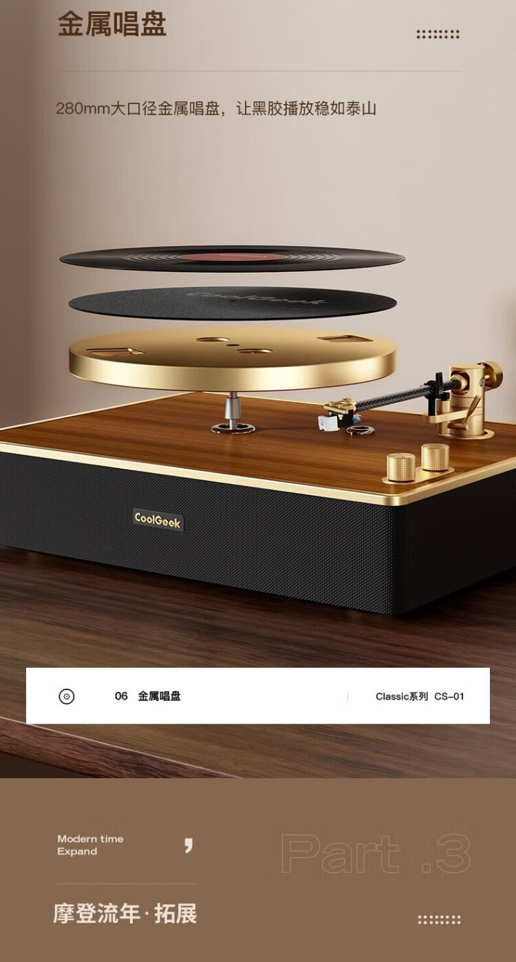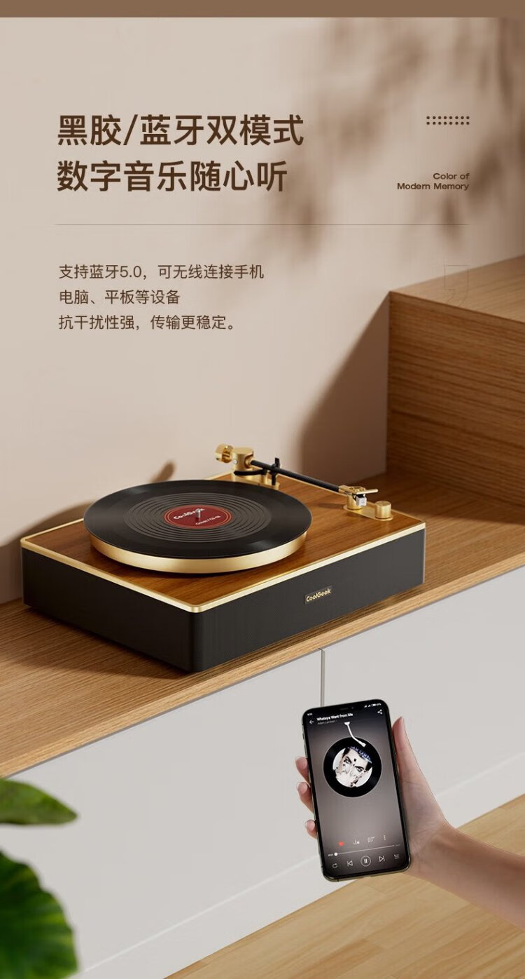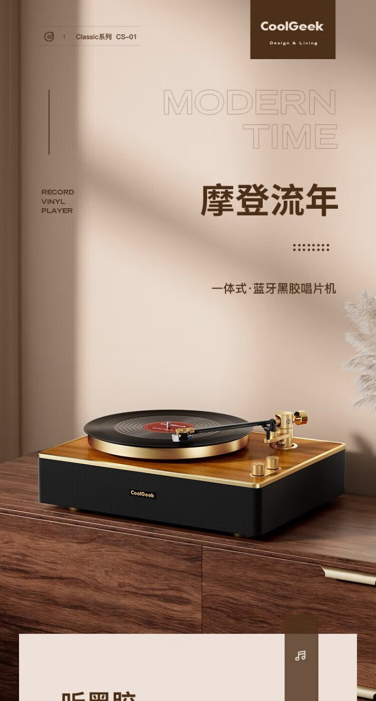 CoolGeek CS01 vinyl record player LP retro gramophone record audio Bluetooth speaker all-in-one home ornaments for boyfriends and girlfriends as housewarming birthday gifts in stock R1 walnut coffee table audio