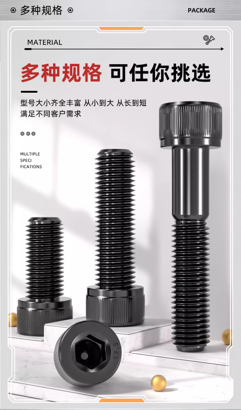 Tianzhuo Hardware M1.4-M6 12.9-level hexagon socket screws black cylindrical head cup head bolts M1.6M2M2.5M3M4M5 M2*7 (50 pieces)