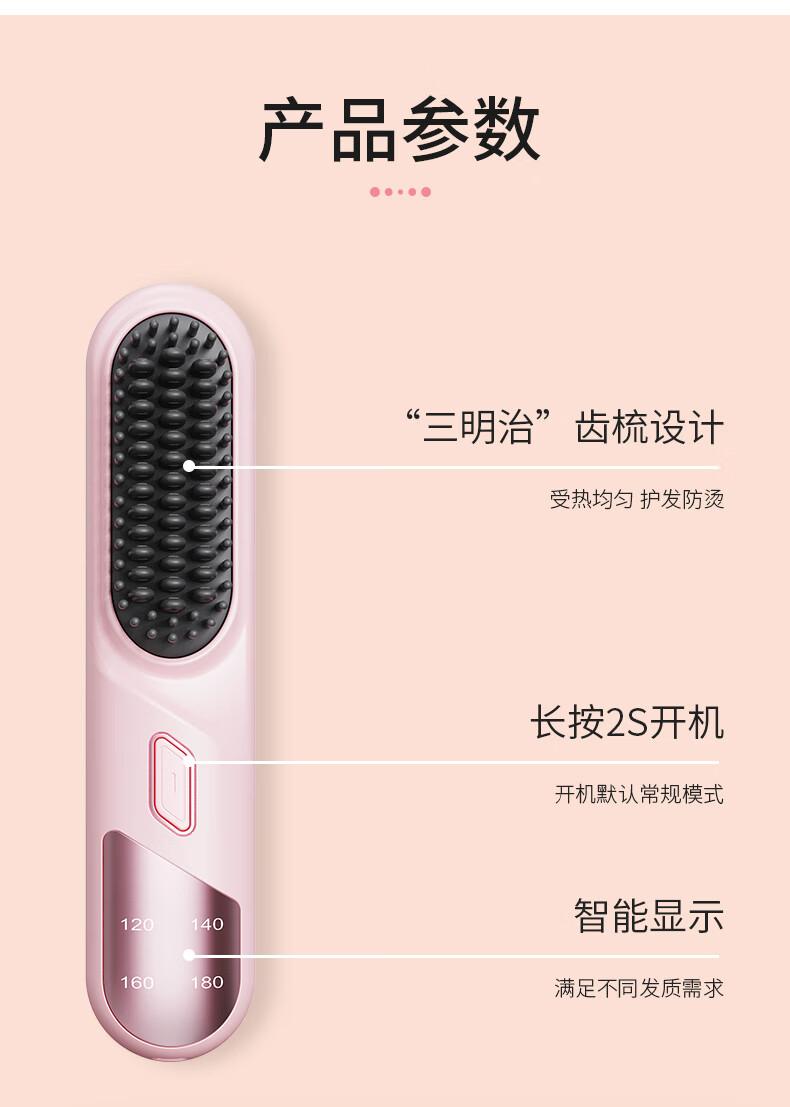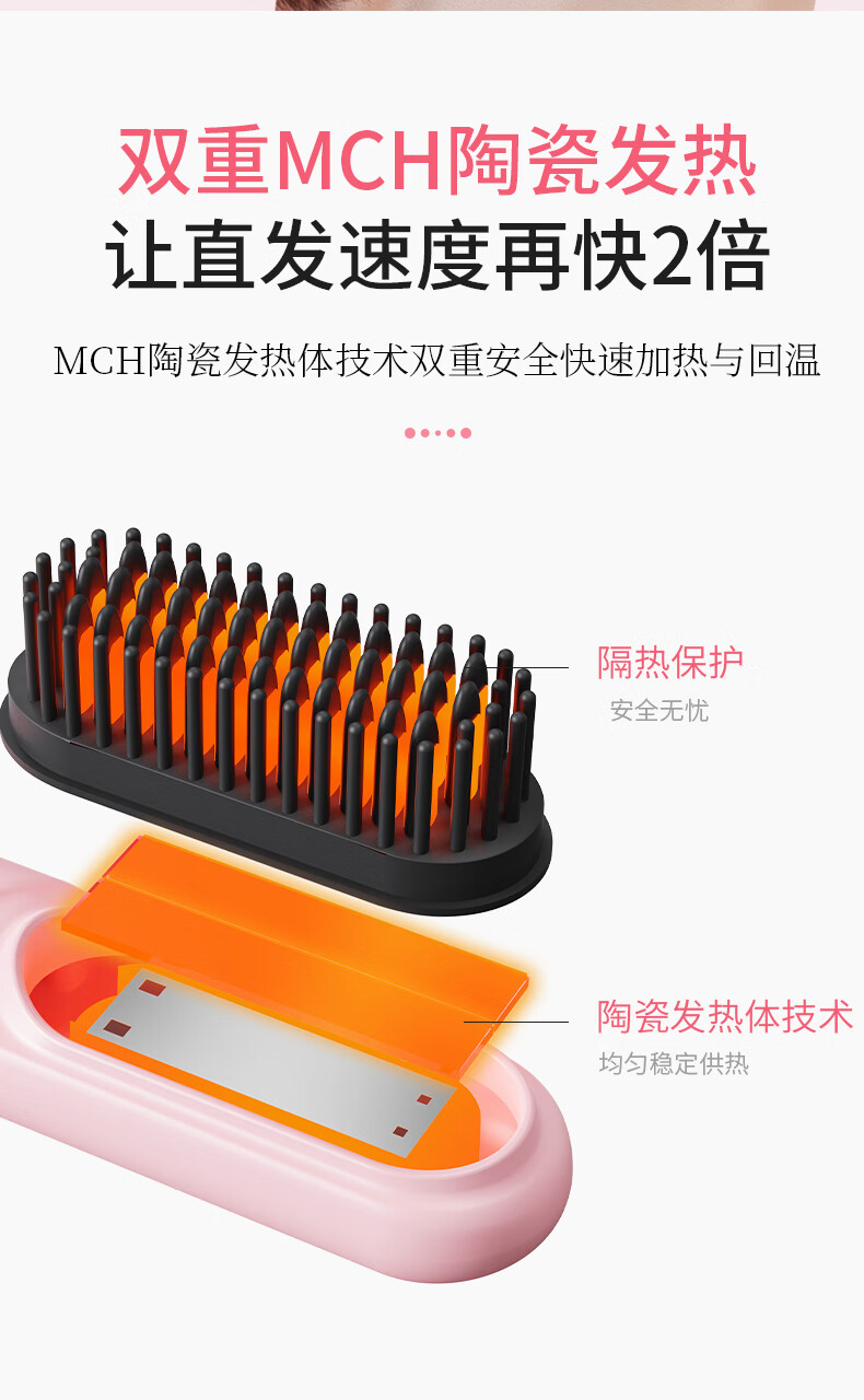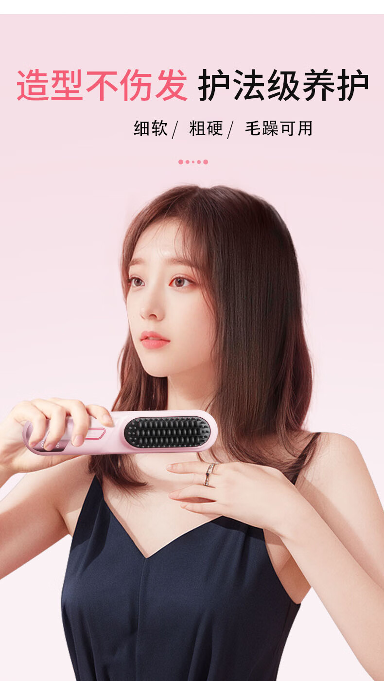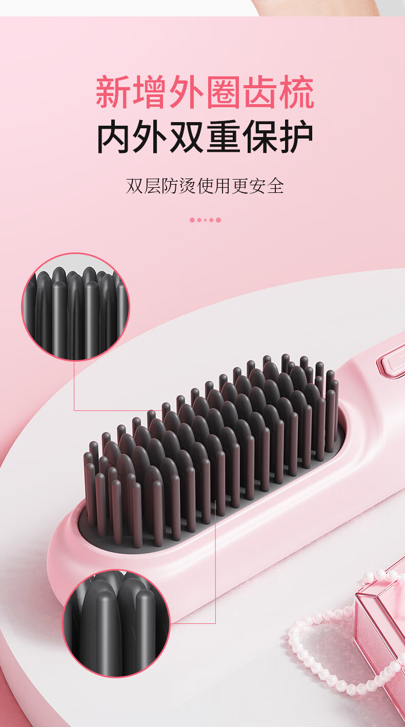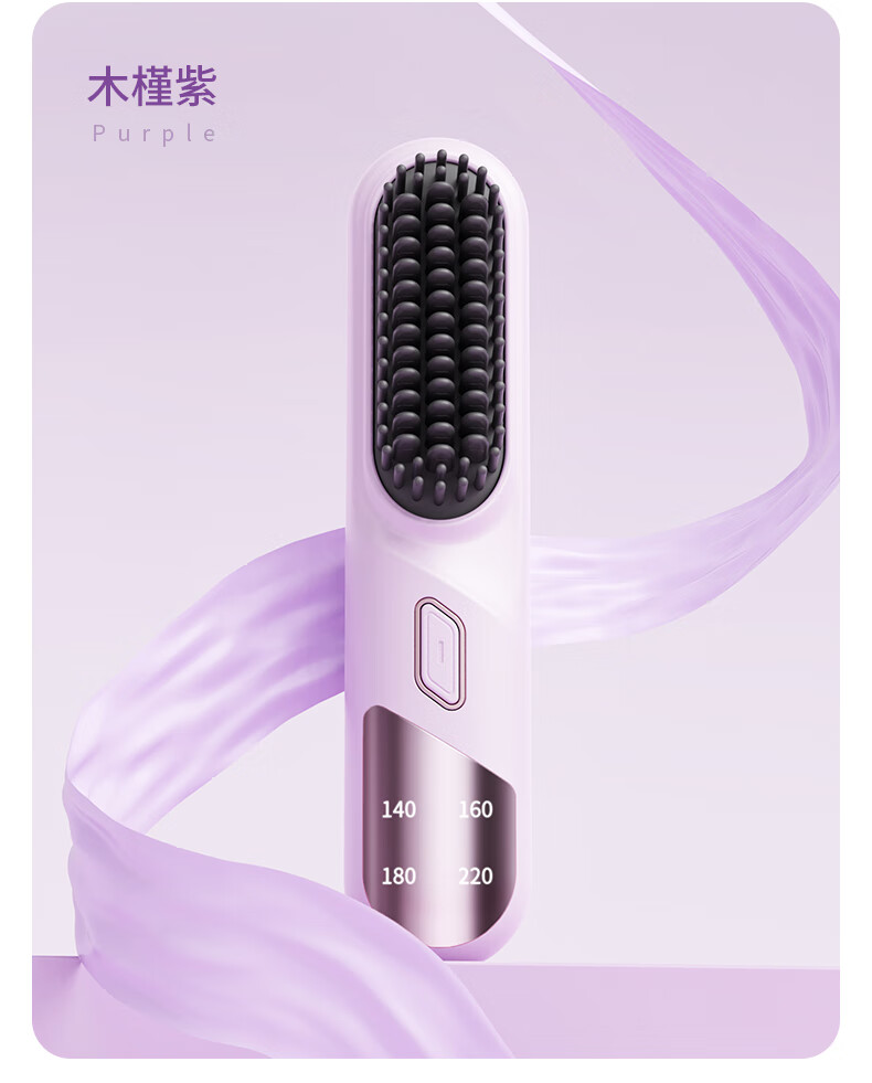 Keqi Cordless Hair Straightening Comb Negative Ion Hair Straightener protects your hair without damaging your hair. Curling wand is fluffy and straightening with an inner buckle. Lazy hairdressing artifact. Constant temperature and long-lasting styling. Curling and straightening dual-use electric comb. Hibiscus Purple. Four-level temperature control + tens of millions of negative ions for hair care + dual-purpose curling and straightening.