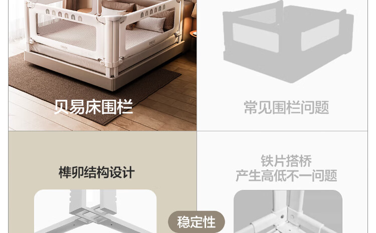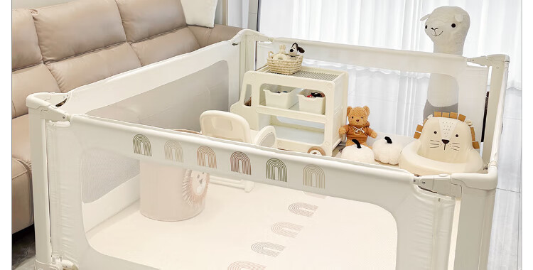 BeiE Rainbow Curved Bed Fence Baby Baffle Safety Guardrail Children's Bed Anti-Fall Bedside Railing No Punching BeiE Rainbow Direct Press Bed No Seams Anti-Pinch 1.8*2.0*2.0m Three Sides