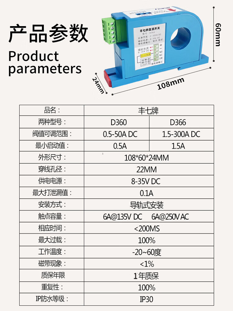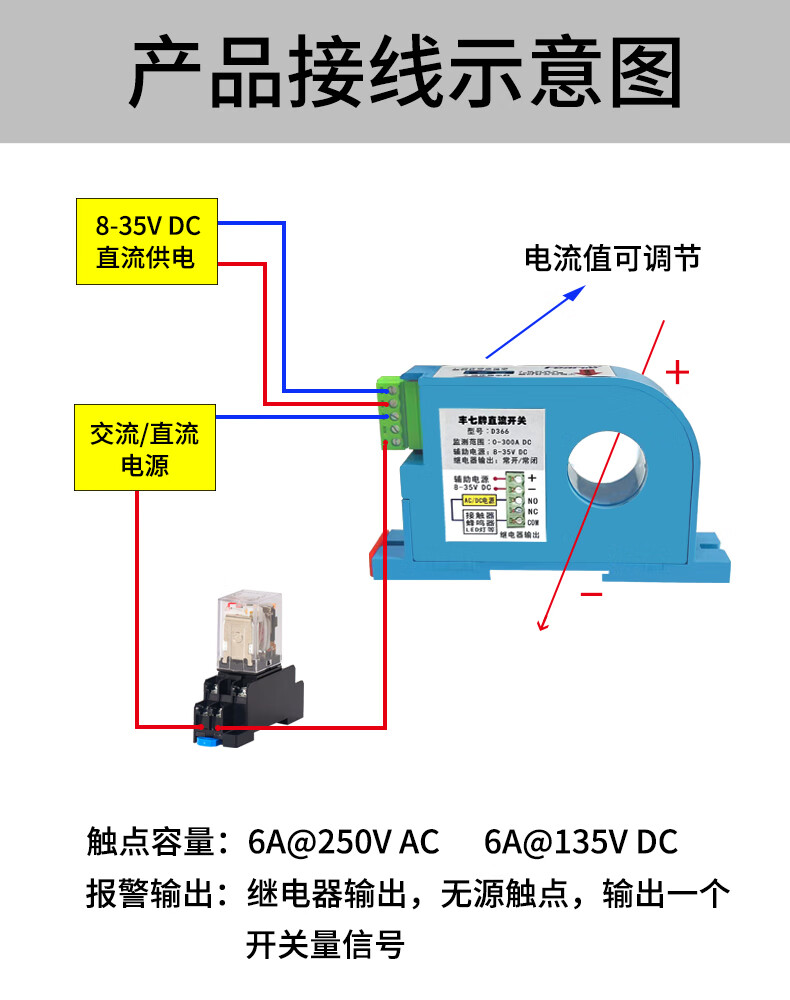 DC transformer detection current limit alarm output isolation induction relay linkage overload protection switch D360 (0.5-50A)