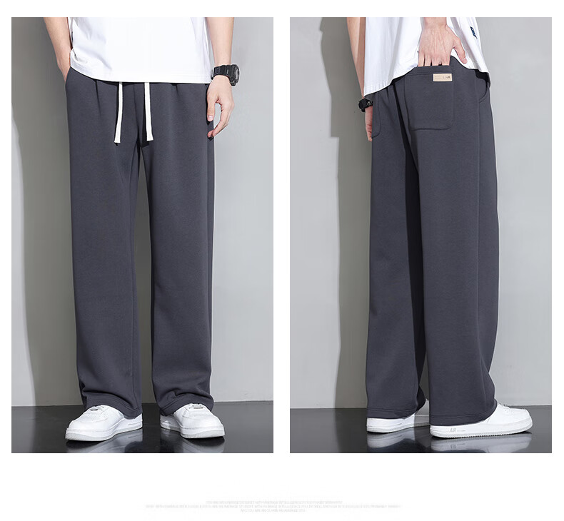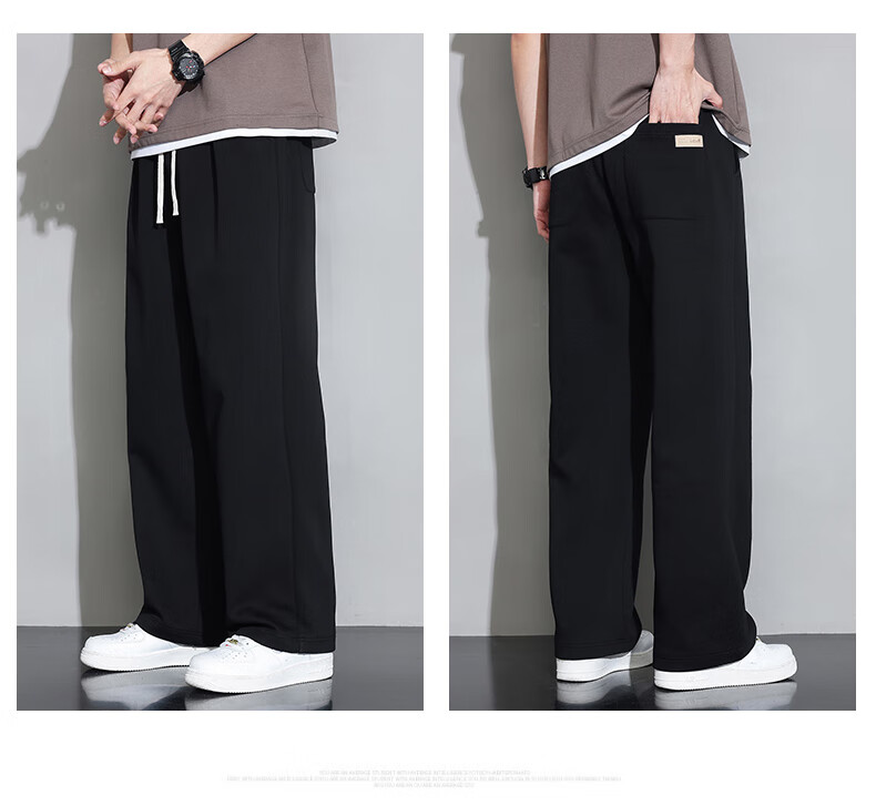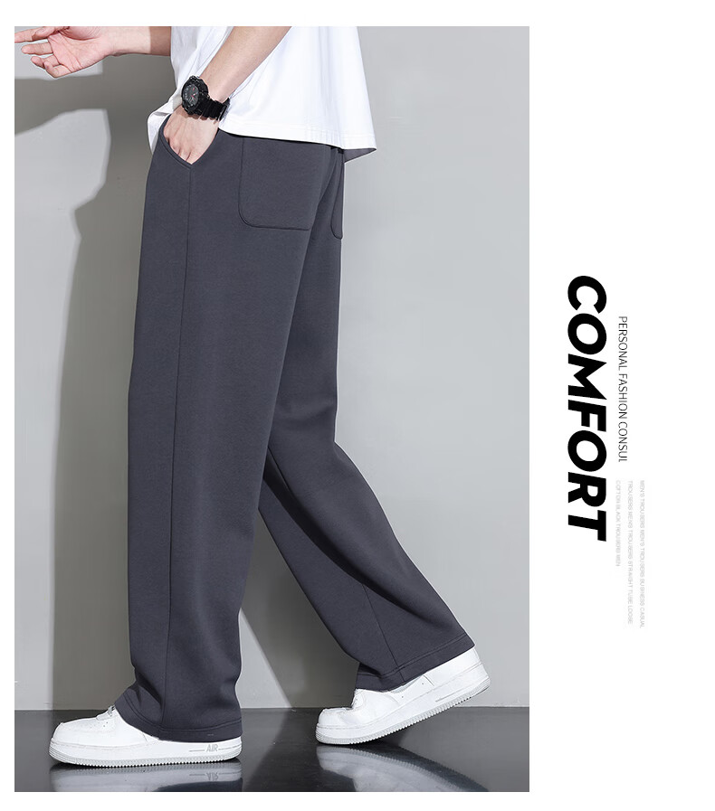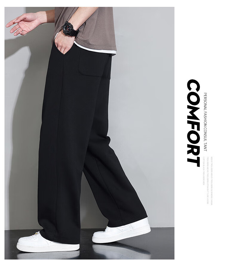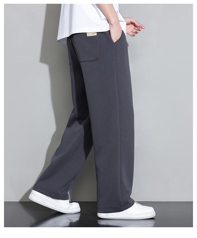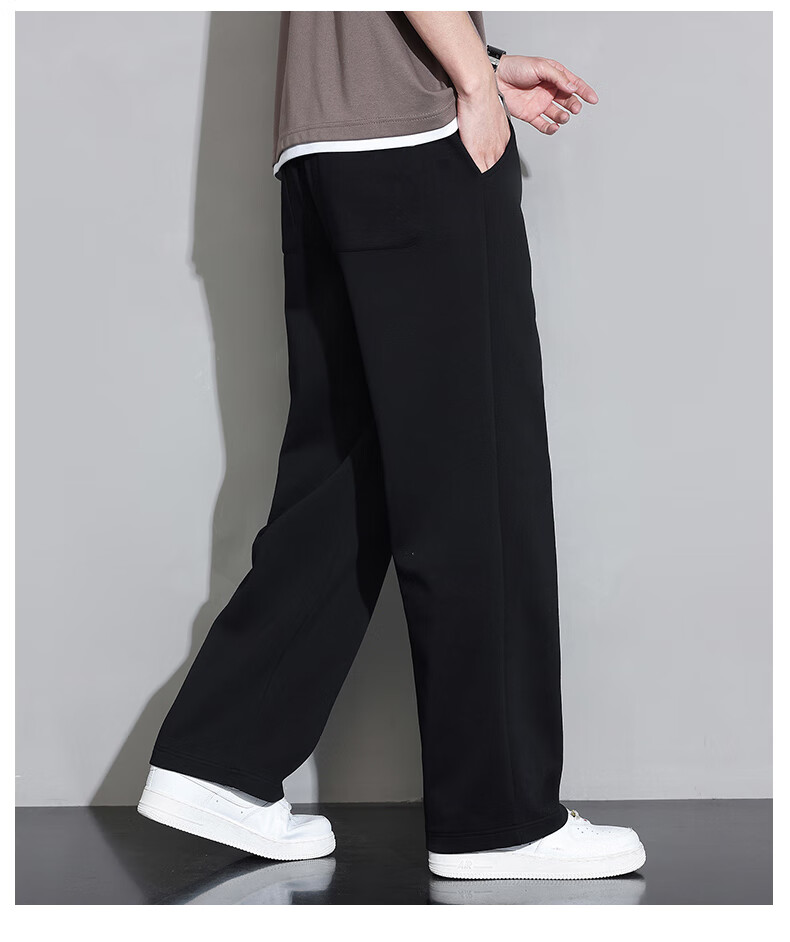Jeanswest casual pants men's autumn and winter new straight-leg loose sports trendy wide-leg pants versatile plus velvet thickened long pants men 926 black XL