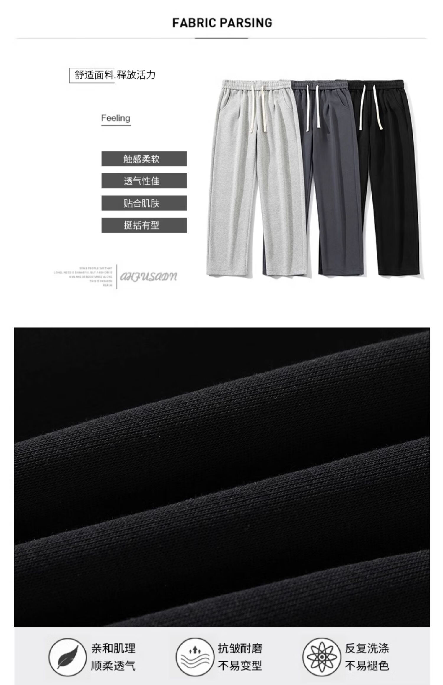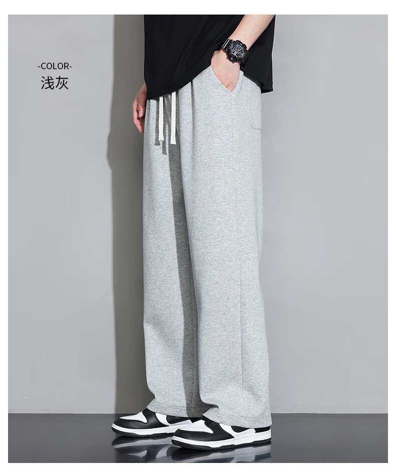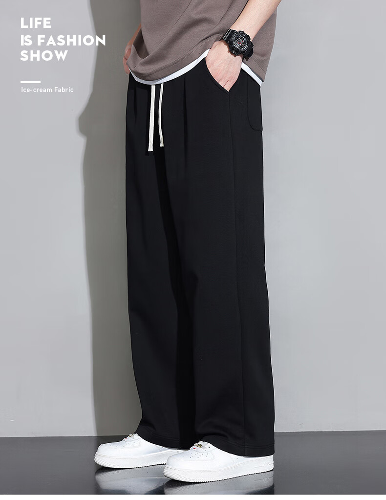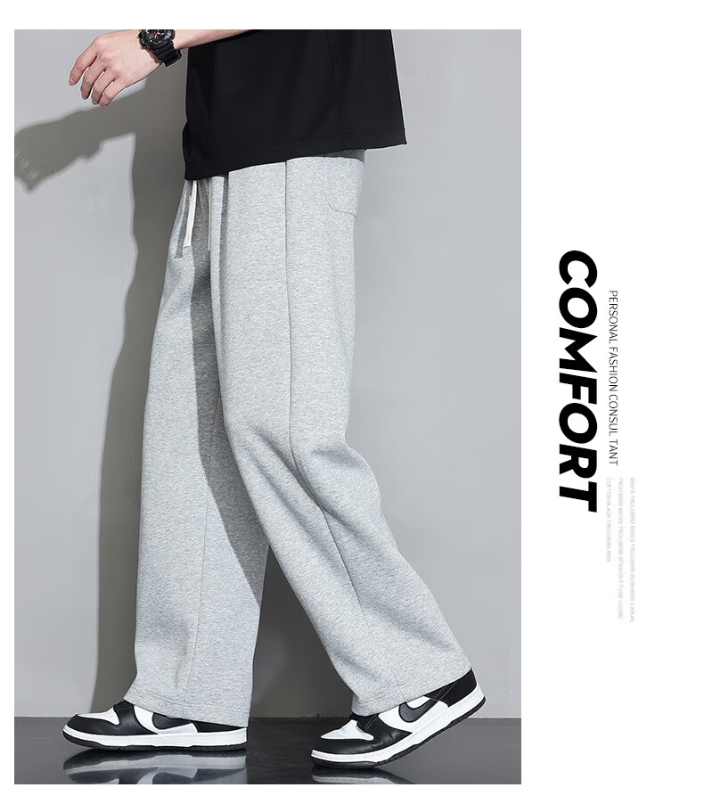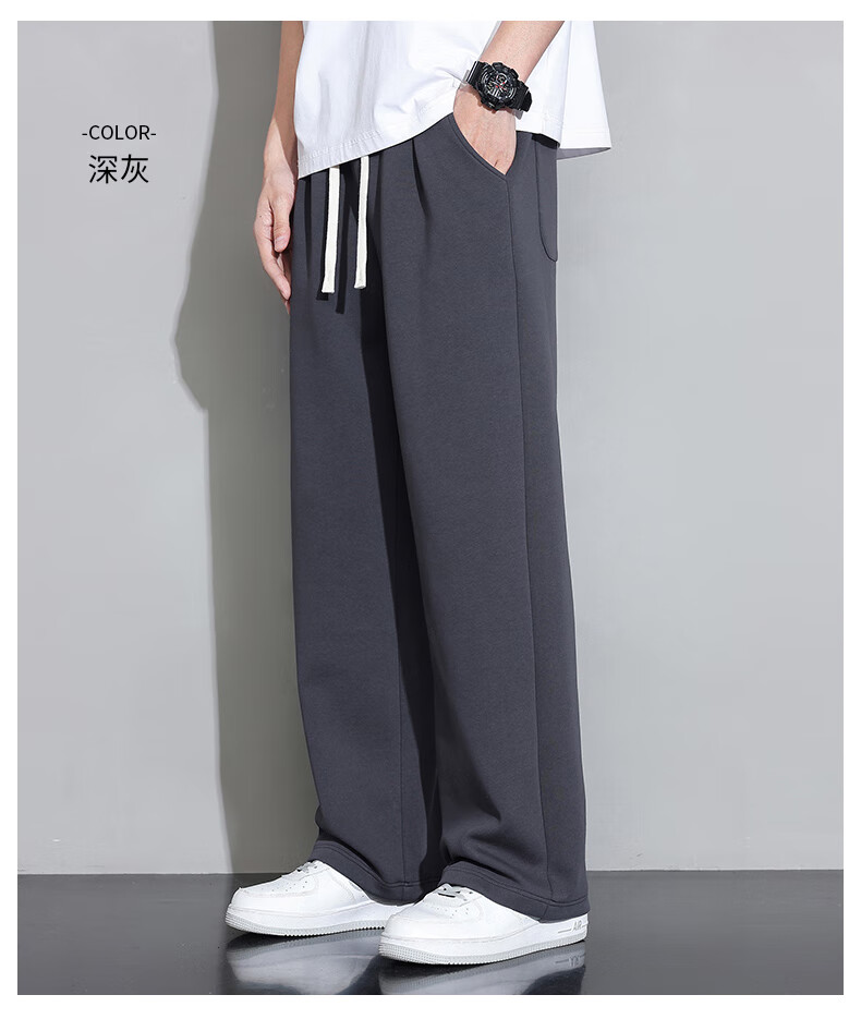 Jeanswest casual pants men's autumn and winter new straight-leg loose sports trendy wide-leg pants versatile plus velvet thickened long pants men 926 black XL