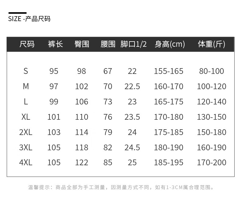 Outseam (cm) 99 cm 101.5 cm 104 cm 106.5 cm 109 cm