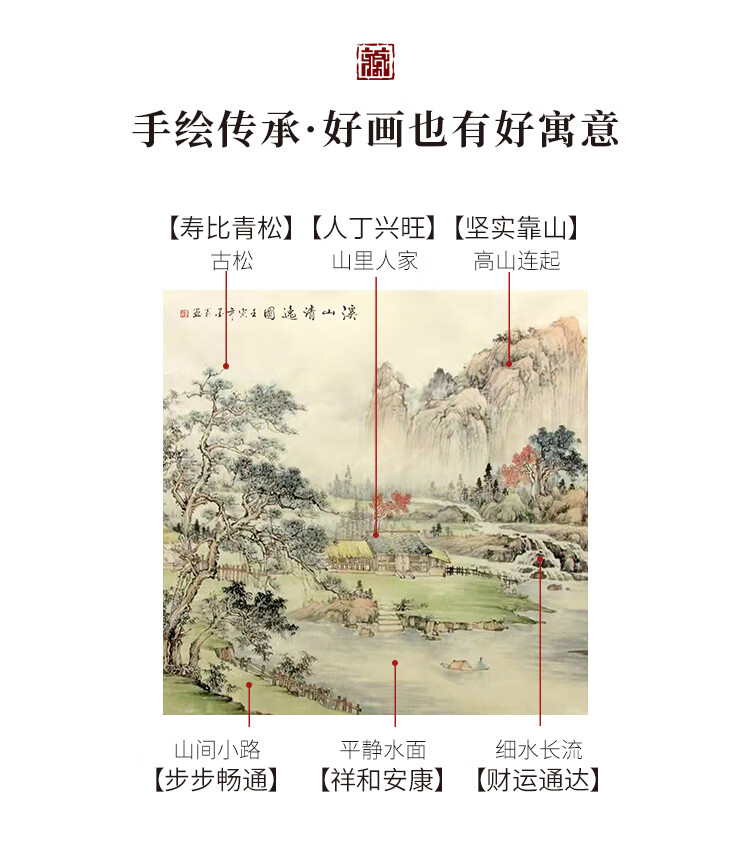Shangdetang Chinese painting landscape painting entrance hall decoration painting restaurant Chinese Feng Shui hanging painting ink painting Dou Fang collection GSX-91869-Fuchun Mountain Residence Picture, framed 65*65cm