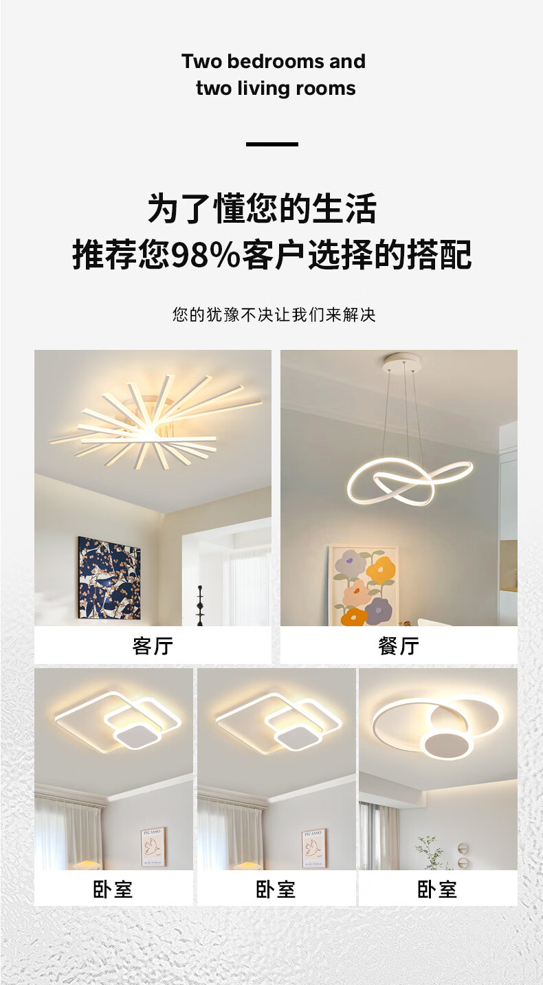 Yongzhi Guangdong Zhongshan living room lamp creative Nordic main lamp restaurant whole house package room atmosphere household ceiling lamp Foshan eye protection white 9 heads diameter 120CM 120 three-color dimming wall switch control