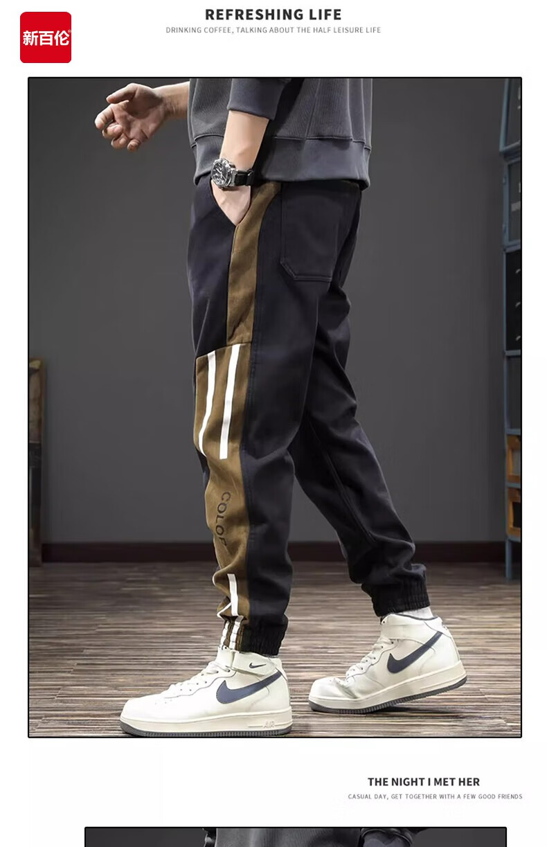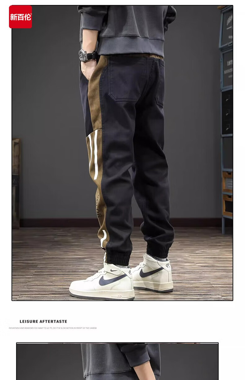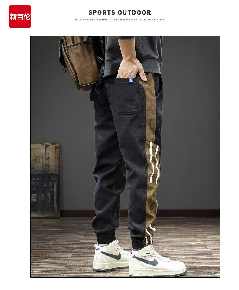New Balance 2025 Autumn and Winter High-End Pure Cotton Sports Casual Pants Men's Versatile Trendy Brand Thickened and Velvet Loose Legged Workwear Pants Black Regular Spring and Autumn Anti-Wrinkle Non-Fading L (170)