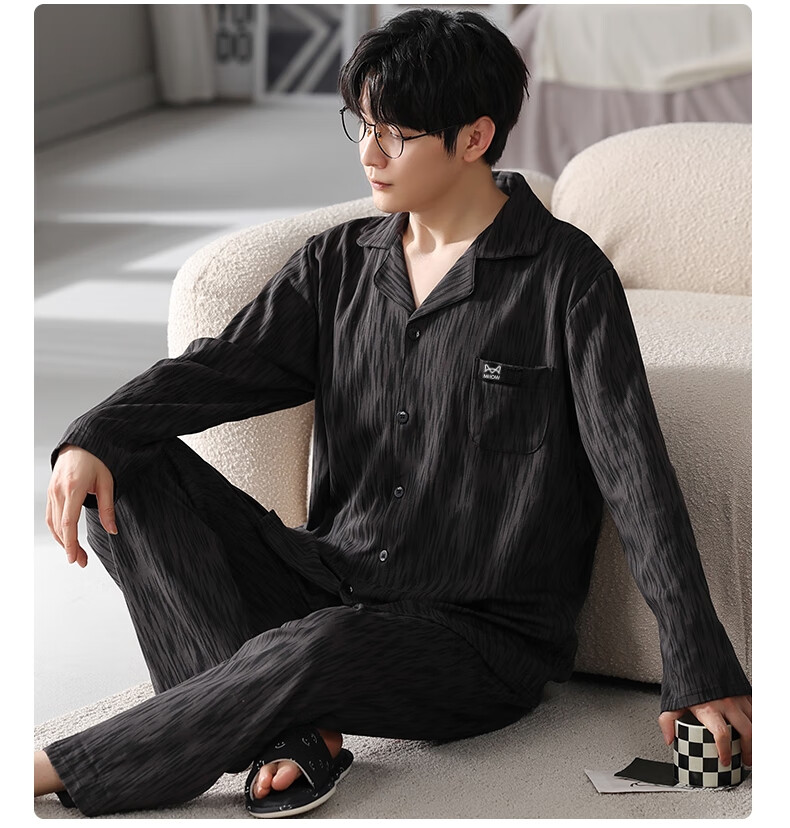 Catman Pajamas Men's 100% Cotton Long Sleeve Four Seasons New Japanese Large Size Men's Style Can Be Weared Out Trendy Home Clothes Set Main Image Model Newly Upgraded LOGO 100% Cotton XL Recommended 130-150Jin Jin equals 0.5kg