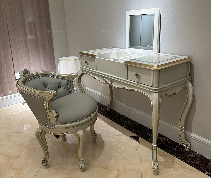 Lafite Mulsanne Tiffany Blue Dressing Table French High-end Villa Master Bedroom Dressing Table European Neoclassical Flip Storage Dressing Table Dressing Stool 1150*490*805