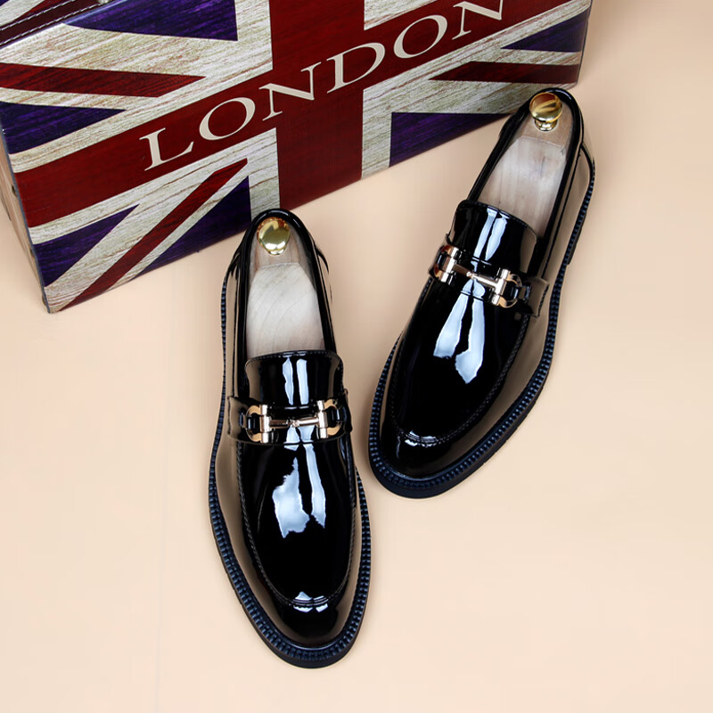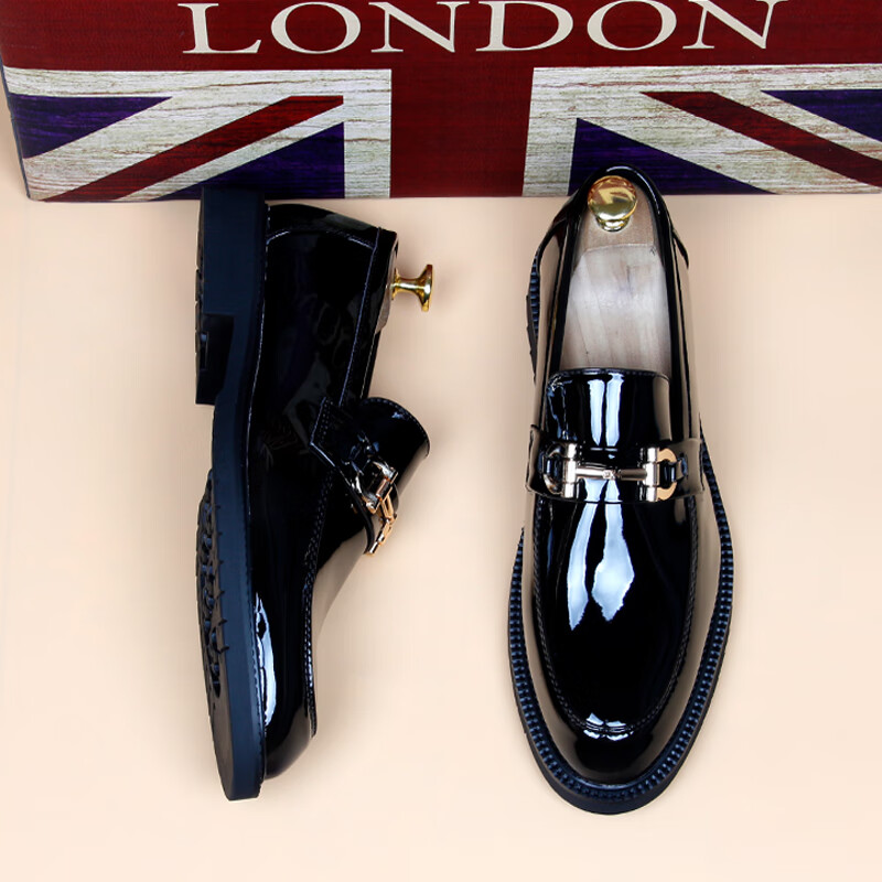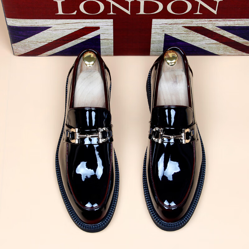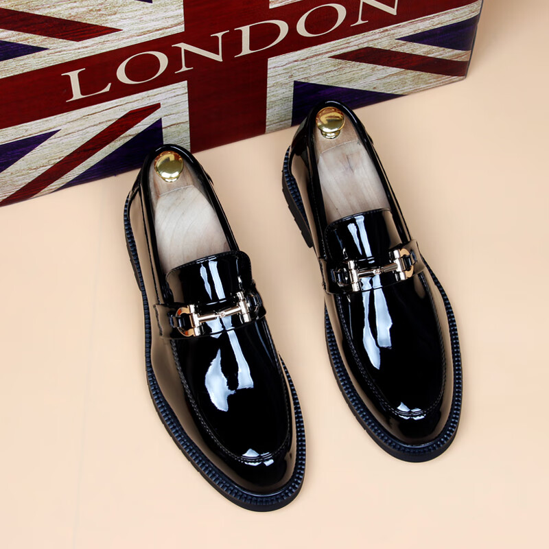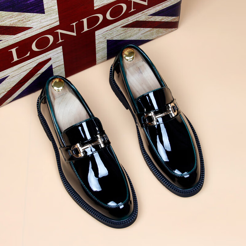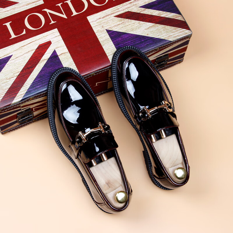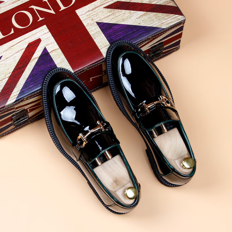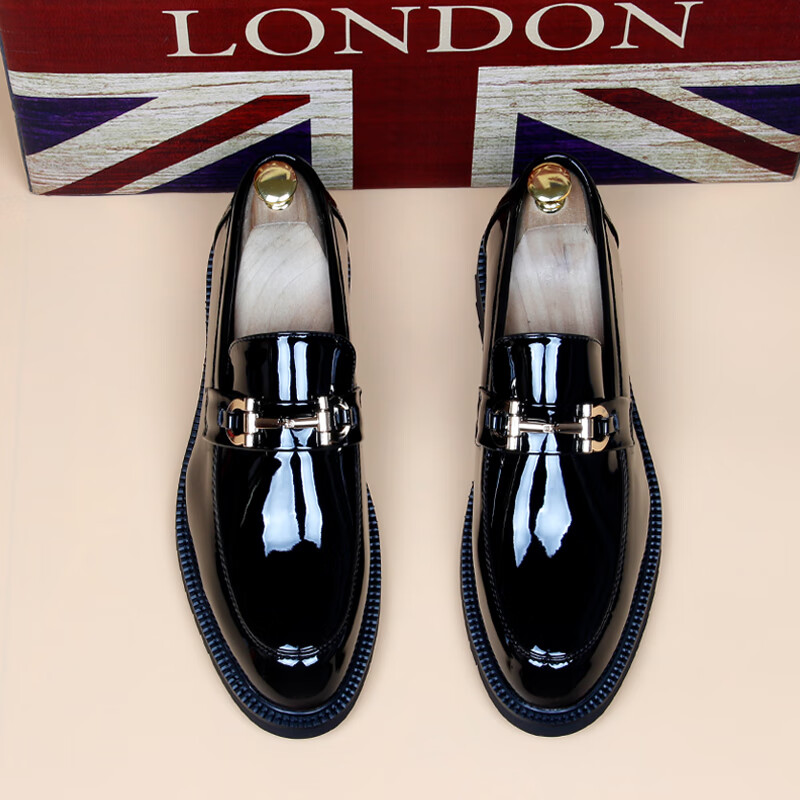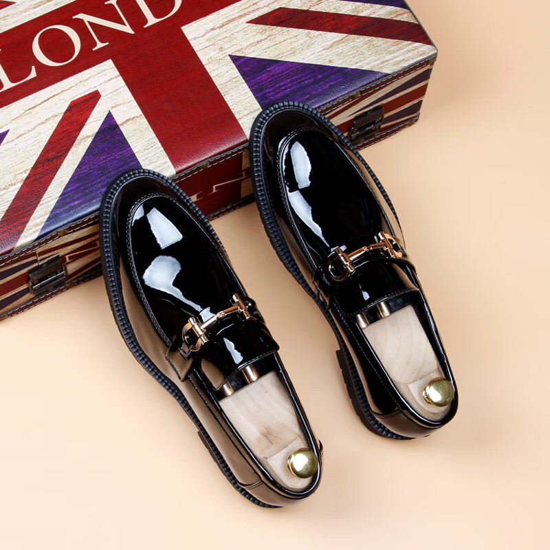 CARTELO crocodile casual leather shoes men's genuine leather formal wear business British glossy one-leg men's shoes youth height increase lazy bean shoes black height increase 41