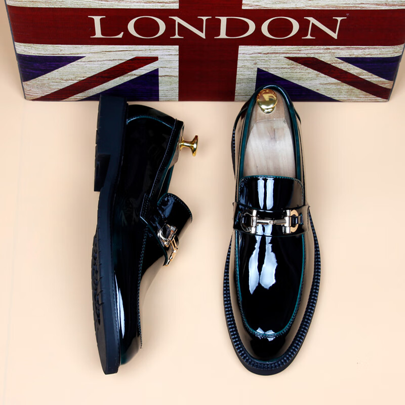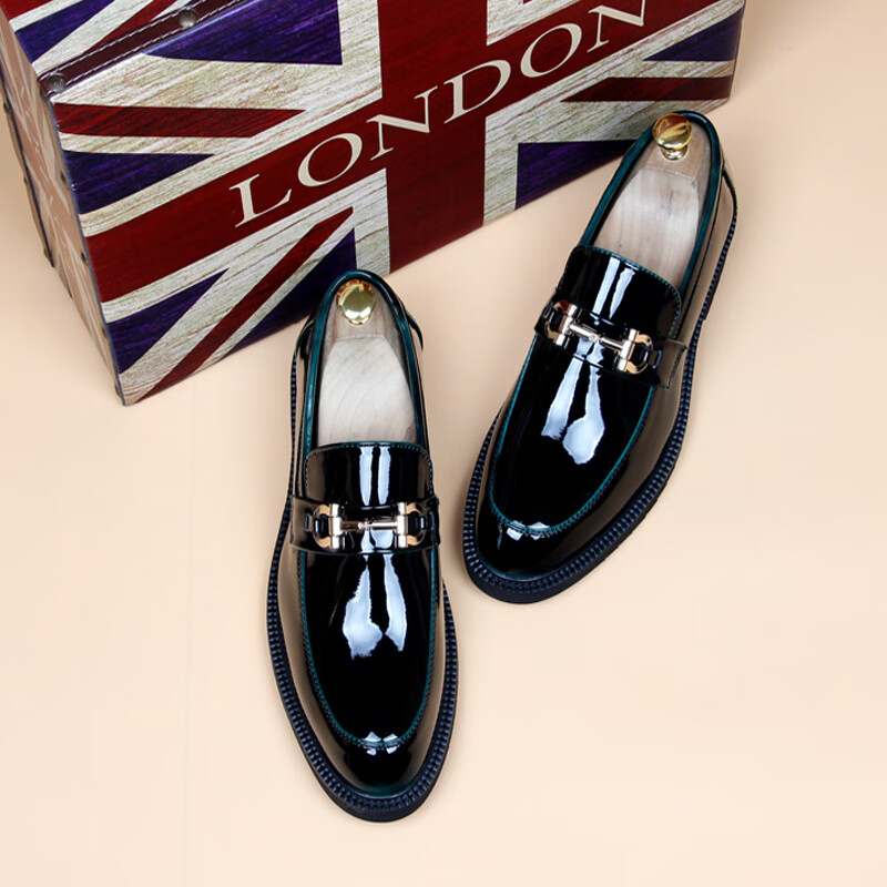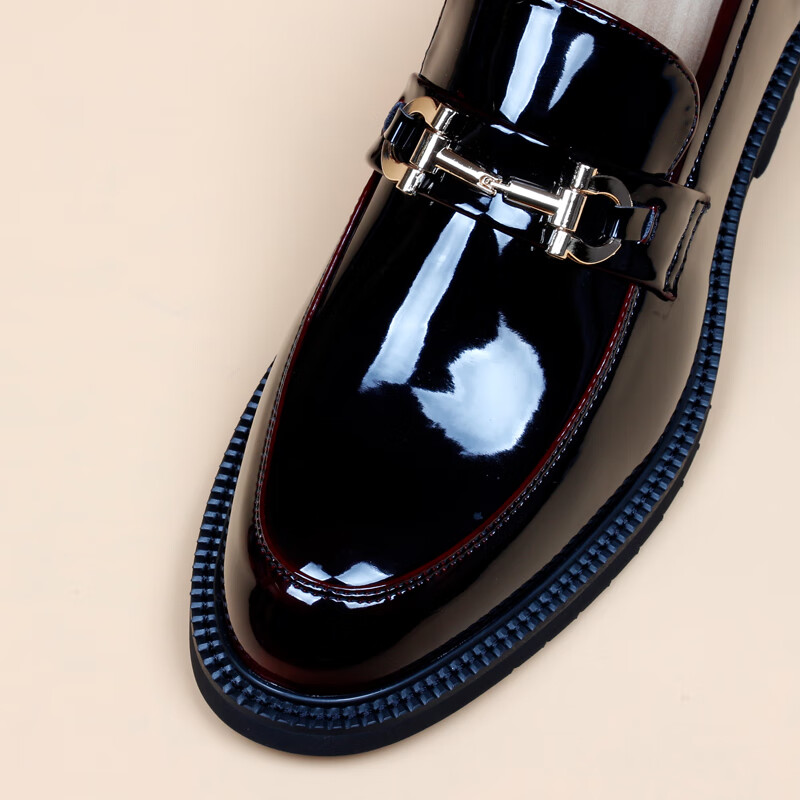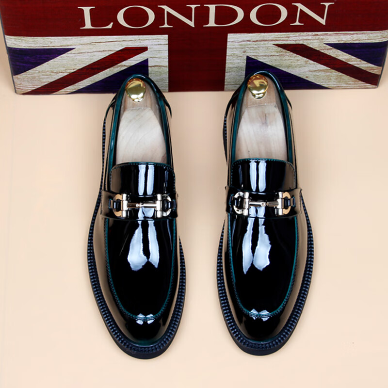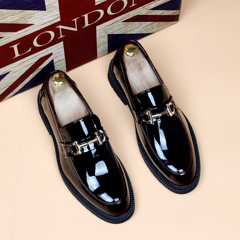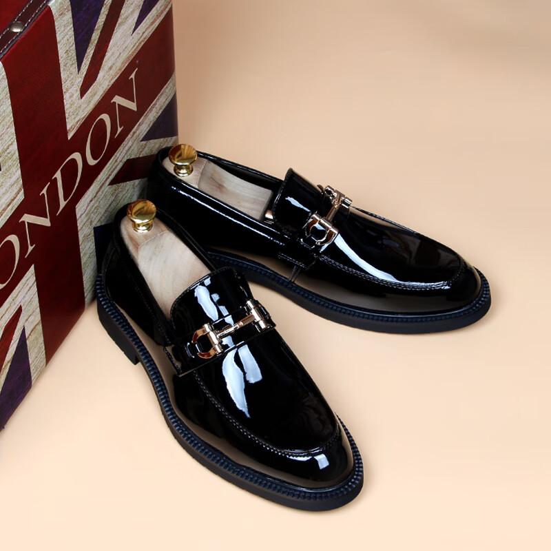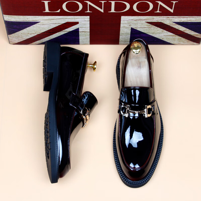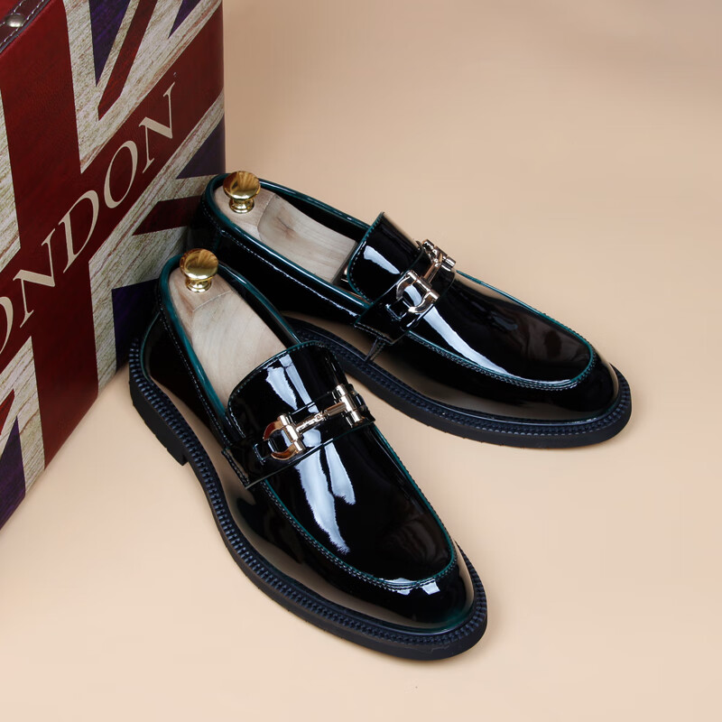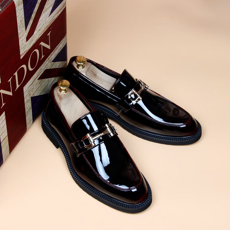 CARTELO crocodile casual leather shoes men's genuine leather formal wear business British glossy one-leg men's shoes youth height increase lazy bean shoes black height increase 41