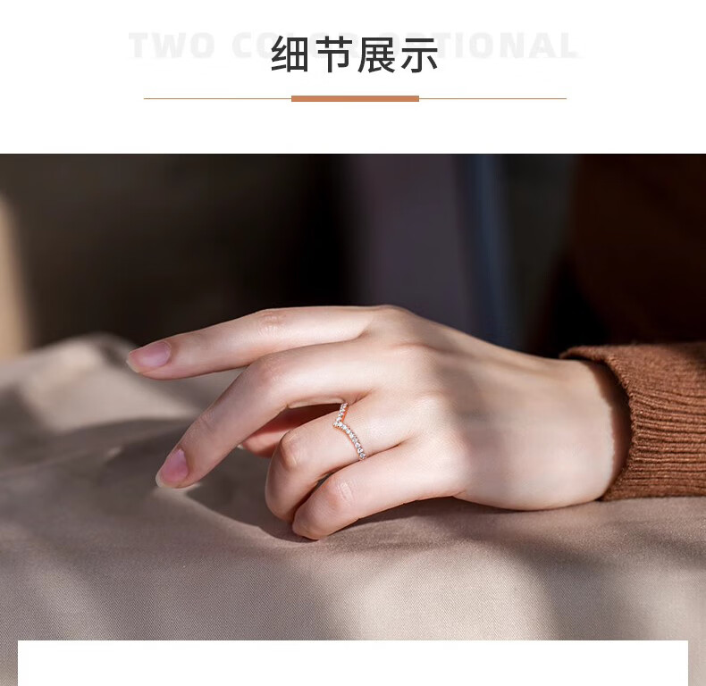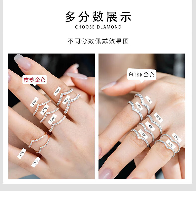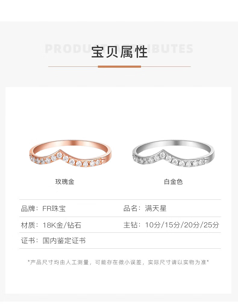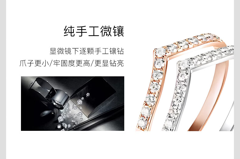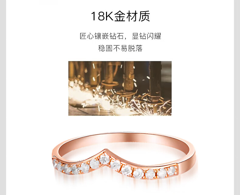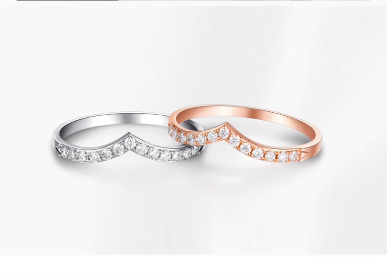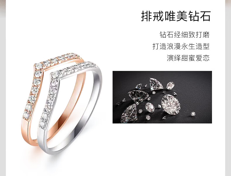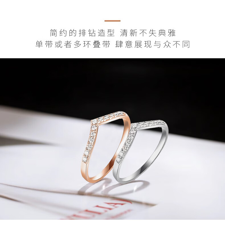 FR diamond ring for women rose gold 18k gold diamond row wedding ring fashionable V-shaped diamond ring proposal 520 gift rose gold 18K 10 points diamond