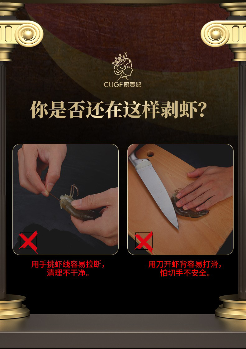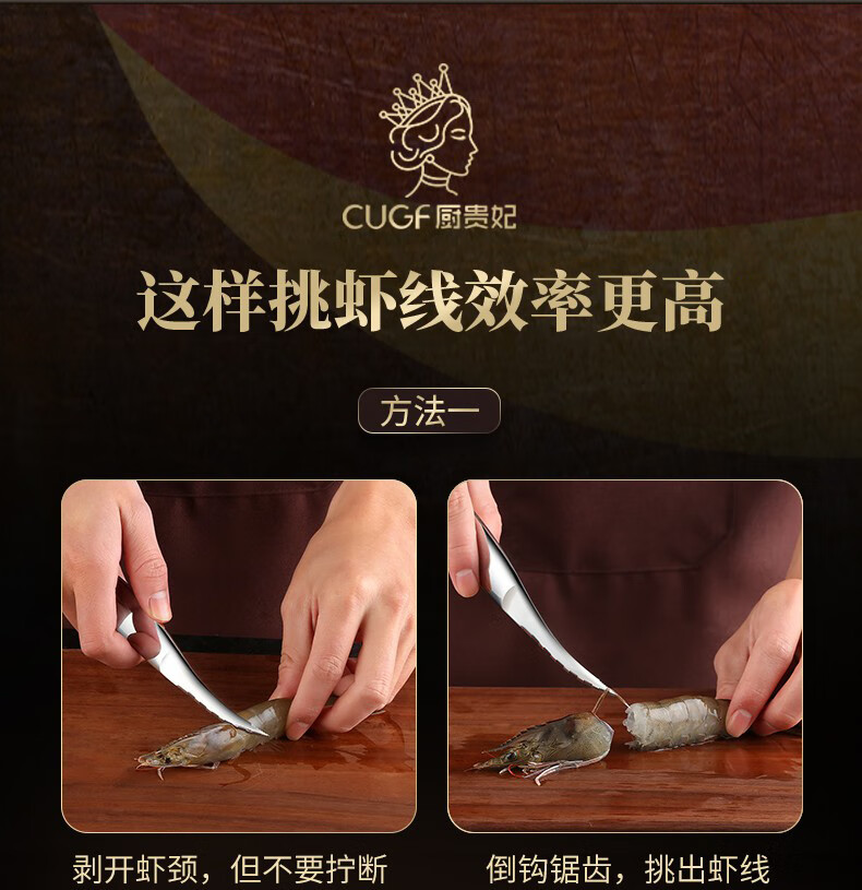 Kitchen Princess Shrimp Line Remover Shrimp Line Knife Home Kitchen Shrimp Line Removal Knife Stainless Steel Shrimp Peeler Crayfish Artifact Upgraded Double Blade Solid Wood Handle Shrimp Line Remover Artifact
