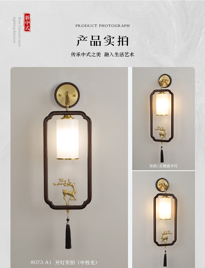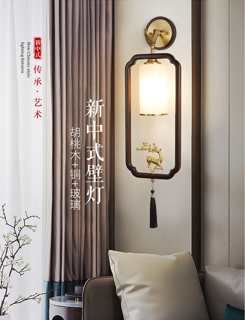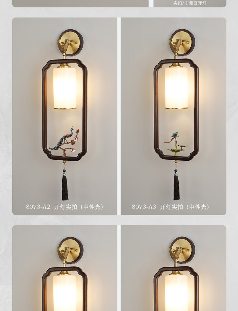Ancient Tang Style 2024 New Walnut Wall Lamp Living Room Porch TV Background Wall Bedroom Study Walkway Chinese Style Zen Lamp A-2/Model 20 Watt Three Color LED
