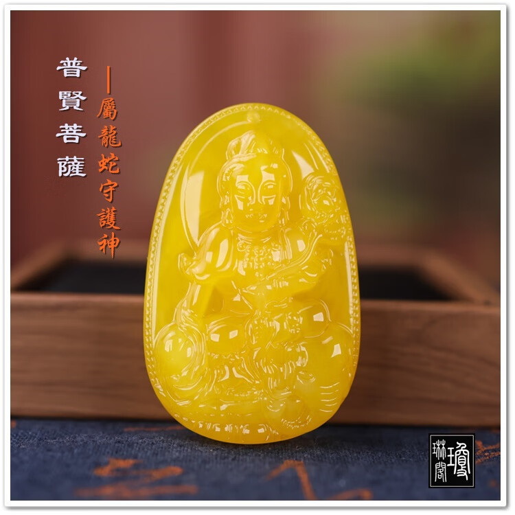 Yuyi natural beeswax natal Buddha zodiac pendant twelve zodiac signs and eight guardian gods Bodhisattva pendant sweater chain with certificate Samantabhadra Bodhisattva Dragon Snake (59*38*15) mm weight 2