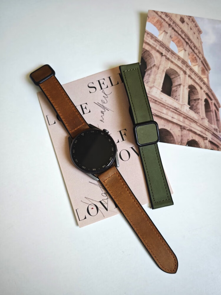 Suitable for Huawei GT4/5/6Watch4/5/6pro watch square buckle crazy horse pattern strap gt2/3 genuine leather silicone magnetic strap Honor Extraordinary Master buds strap crazy horse leather dark brown Huawei/watch4 Pro