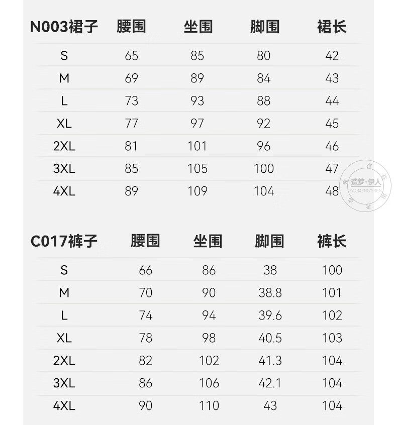 Outseam (cm) 99 cm 101.5 cm 104 cm 106.5 cm 109 cm