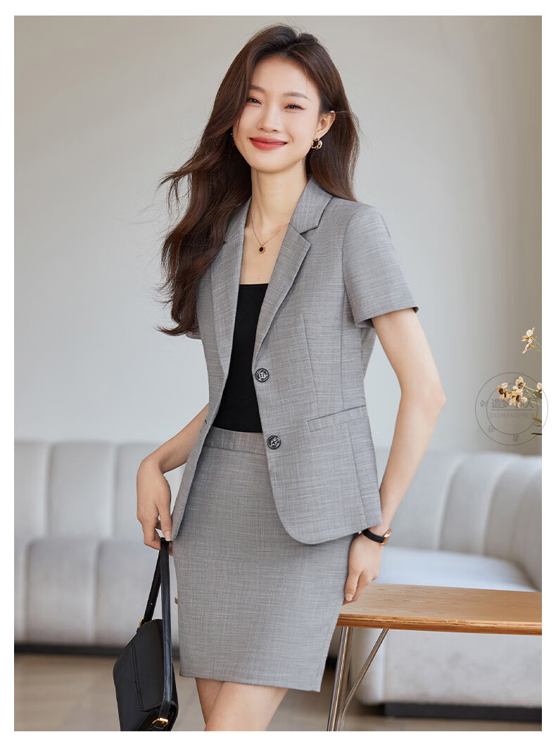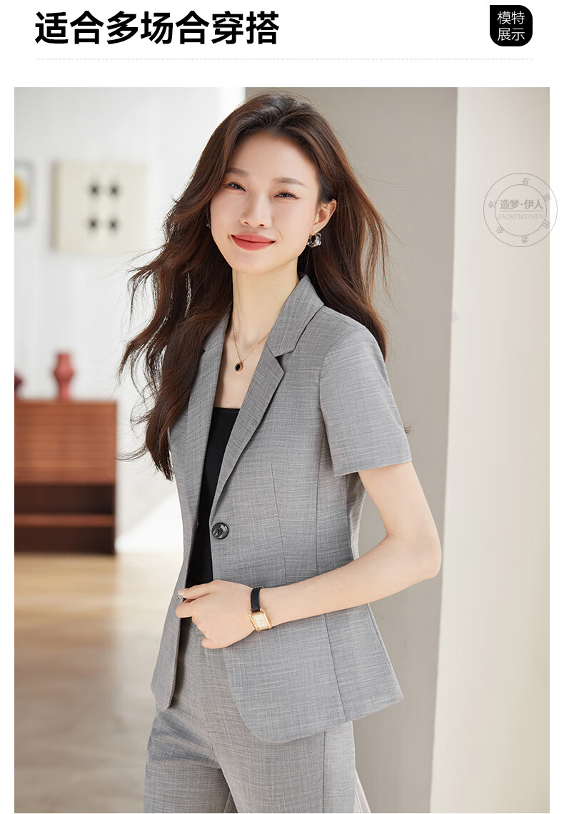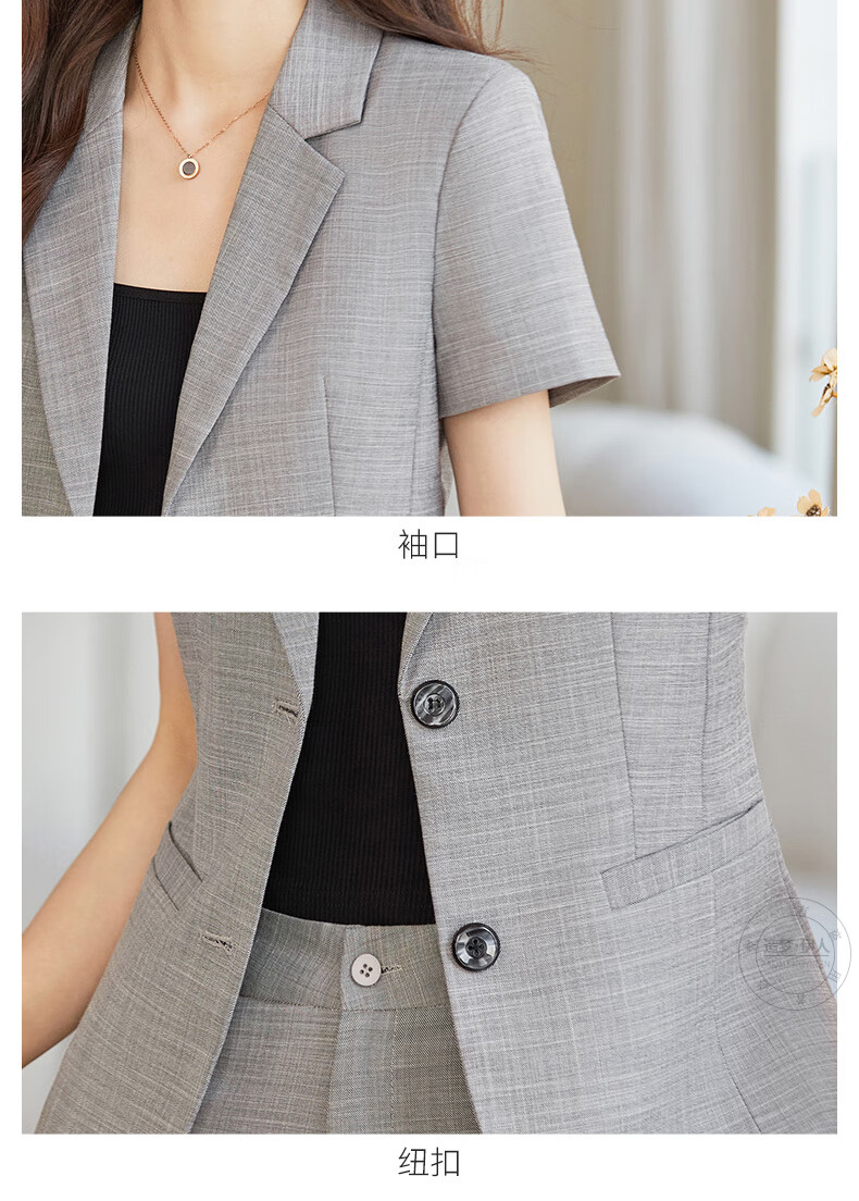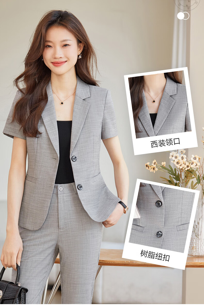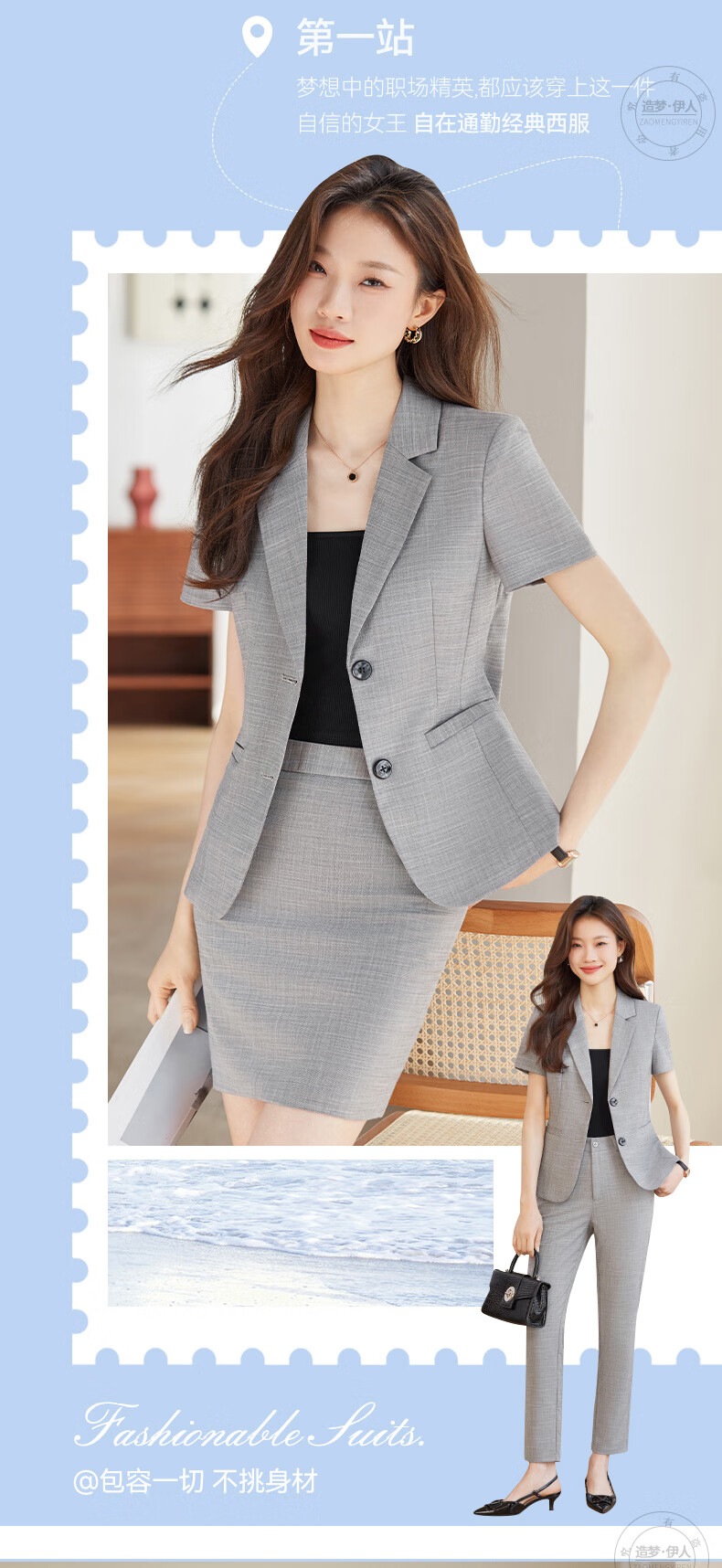 Dream Yiren short-sleeved suit for women summer thin high-end professional OL commuting temperament business formal suit for women gray suit + pants (black suspenders) XL