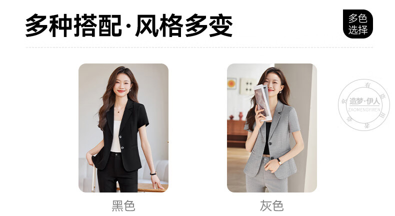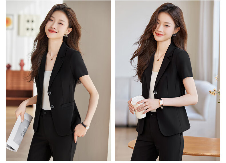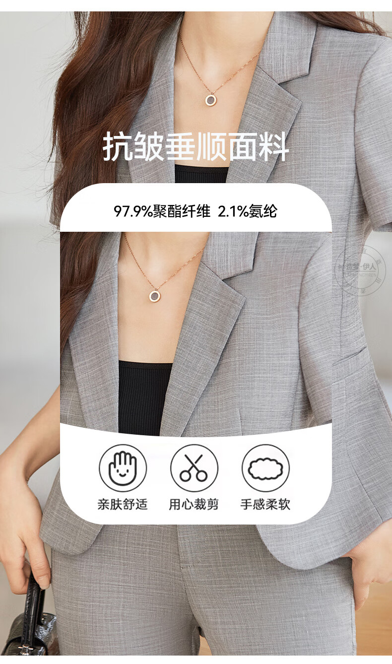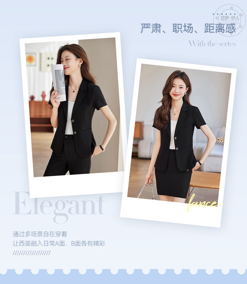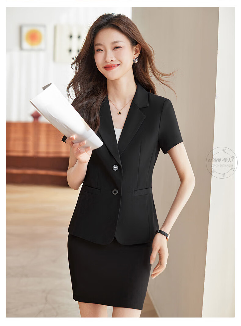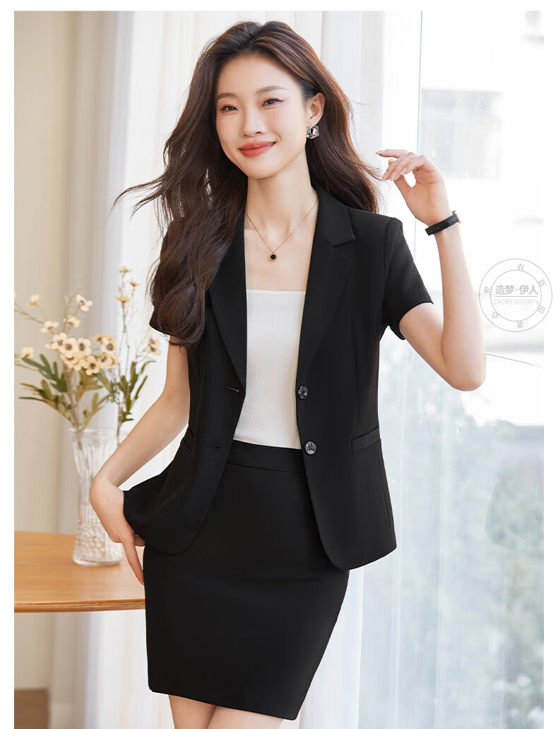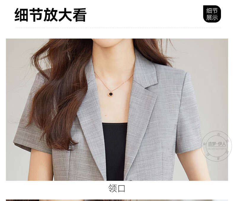 Dream Yiren short-sleeved suit for women summer thin high-end professional OL commuting temperament business formal suit for women gray suit + pants (black suspenders) XL