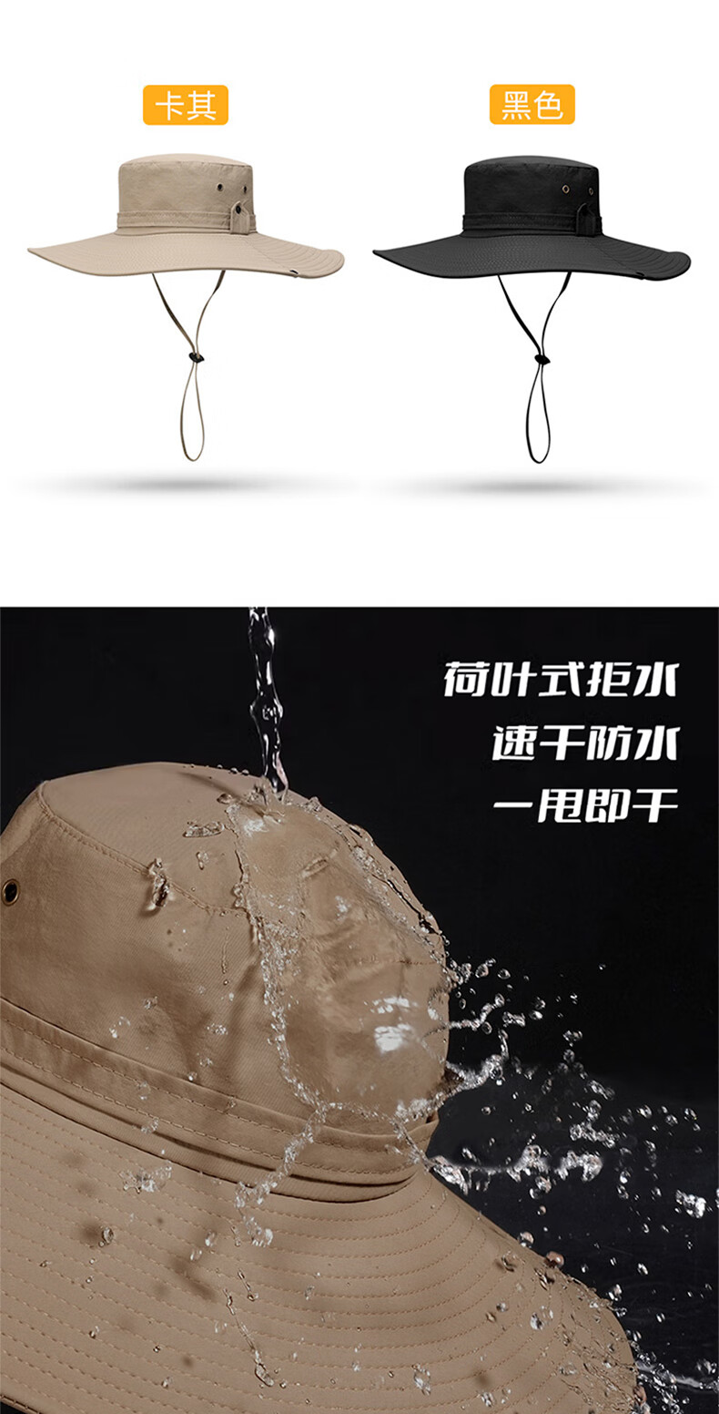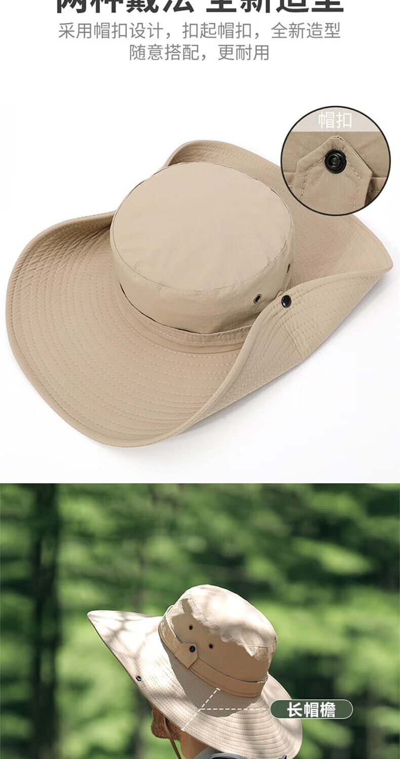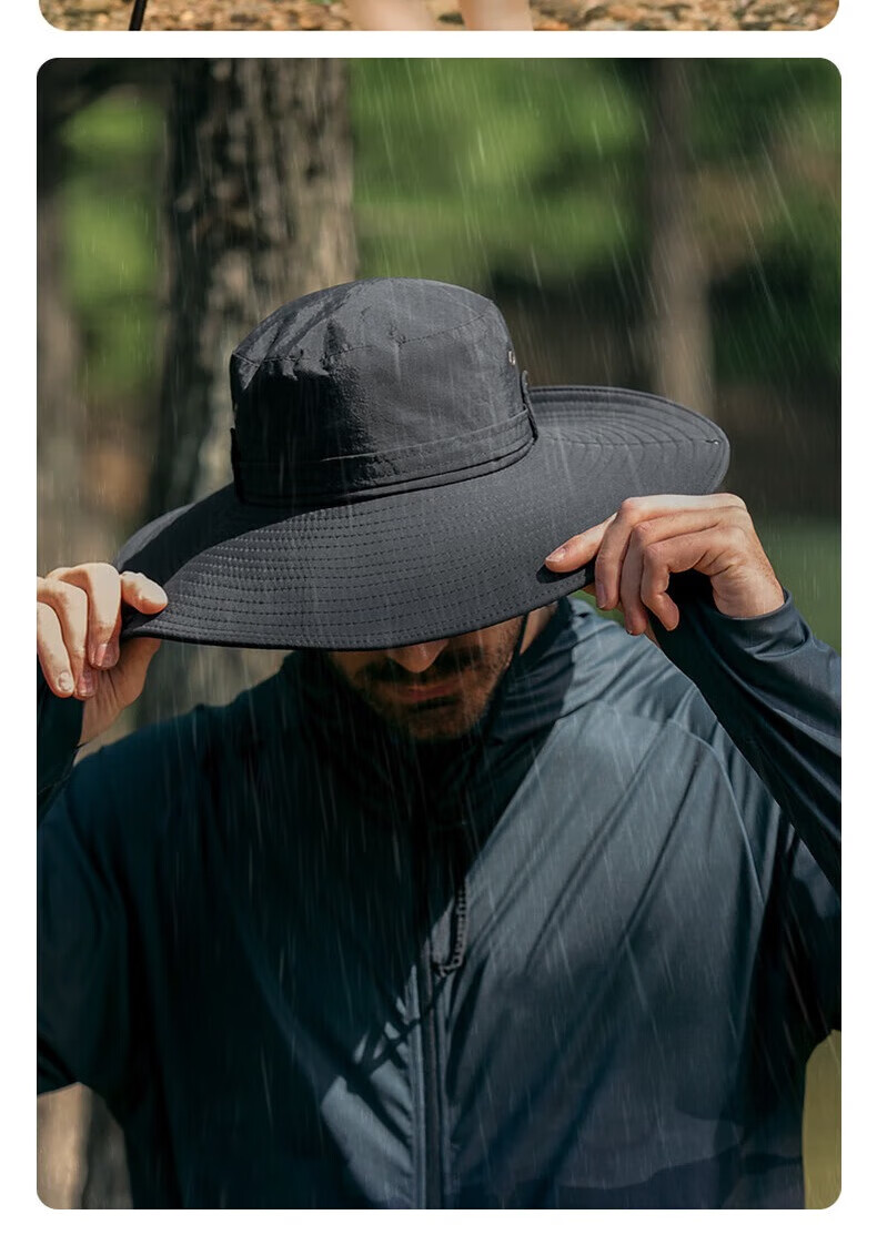 Bo Na Ling hat men's large brim denim fisherman's hat women's outdoor hiking and hiking sun hat couple style Huang Yimei same style outdoor fisherman's hat - large brim classic black