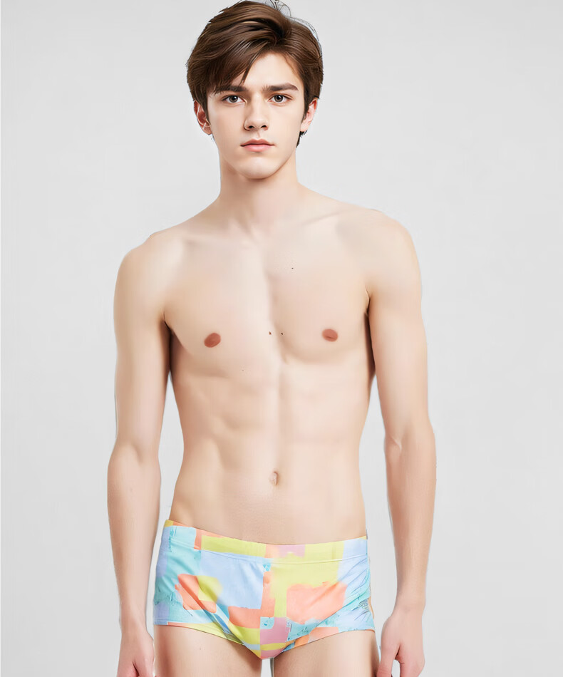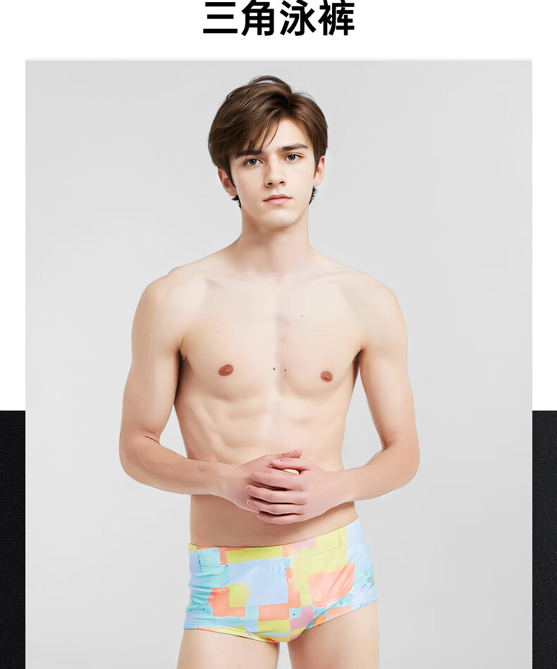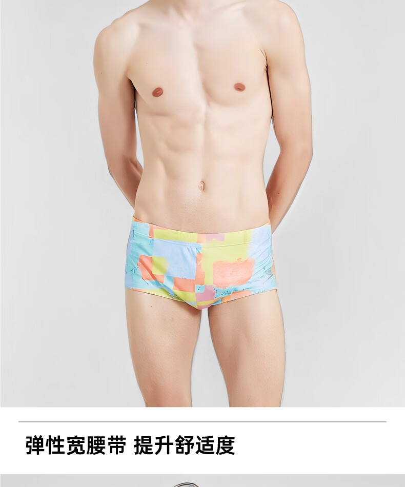速比涛泳裤男平角游泳裤时尚印花抗氯速干高弹舒适防尴尬专业训练竞赛 天青蓝/深蓝色/西瓜色/白色 L /36