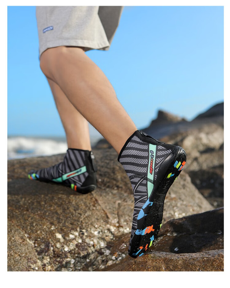 Leopard Trace (BAOJEE) high-top diving boots for men and women, anti-cut, anti-slip, anti-slip, beach swimming, wading, upstream and sea equipment, snorkeling shoes, blue 43