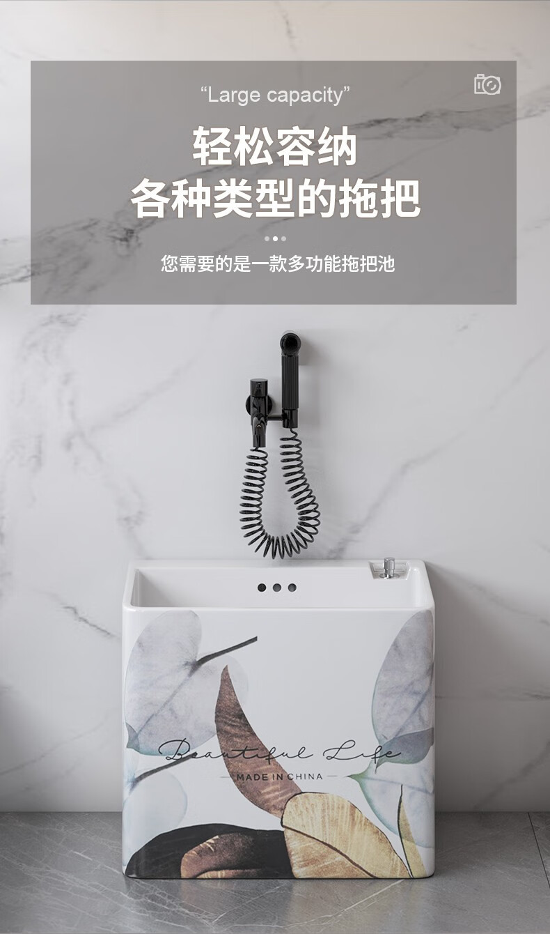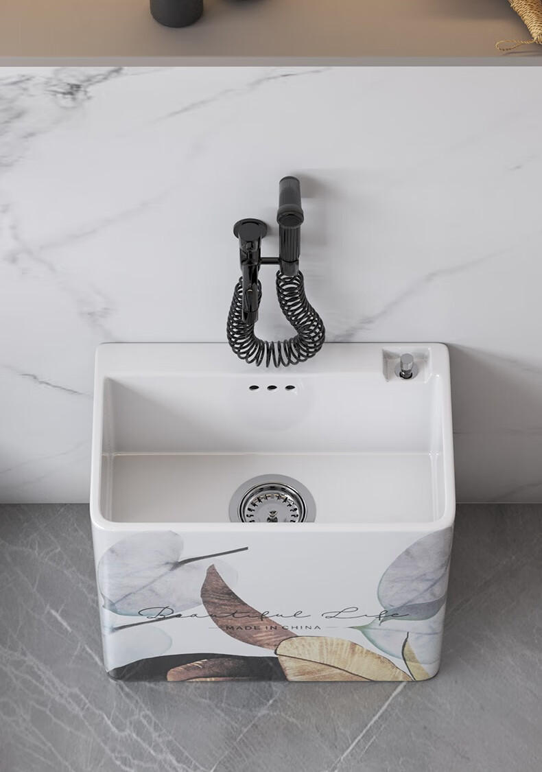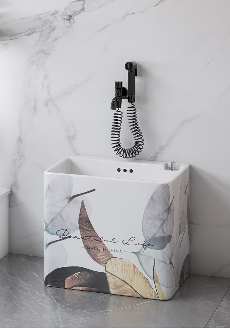 Haoge Nordic mop pool mop pool balcony bathroom large and small mop bucket mop basin floor-standing mop pool HG-426 (five-color leaves) + silver spray gun