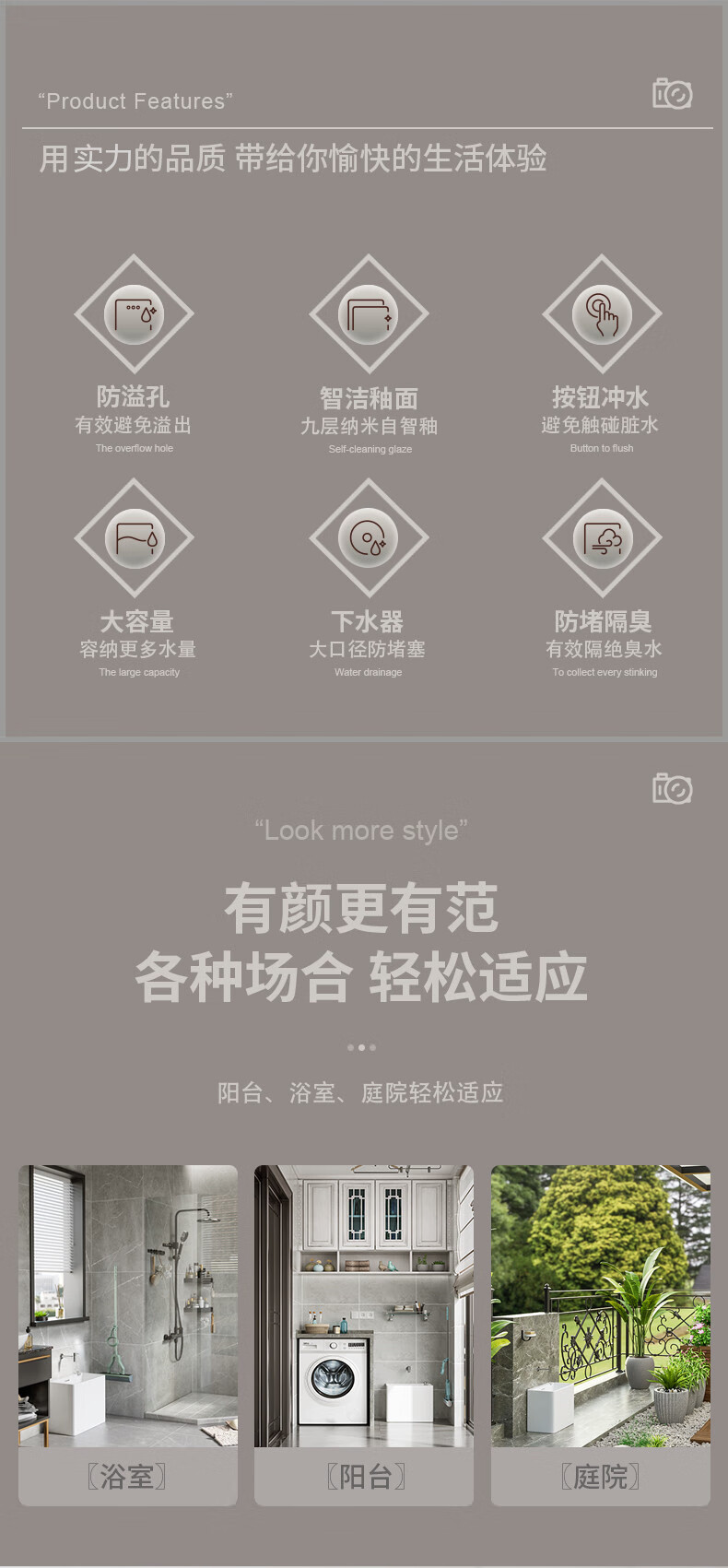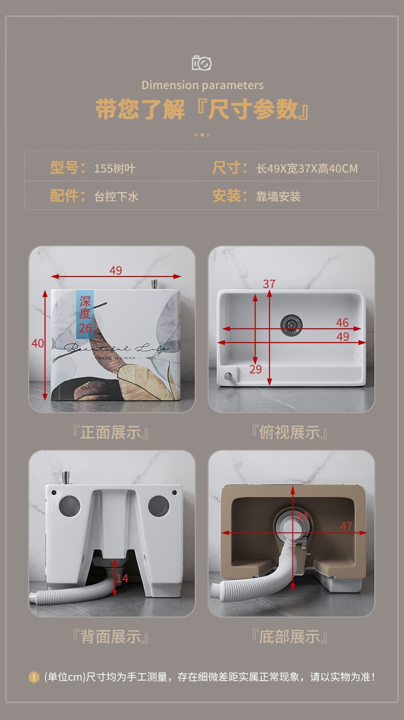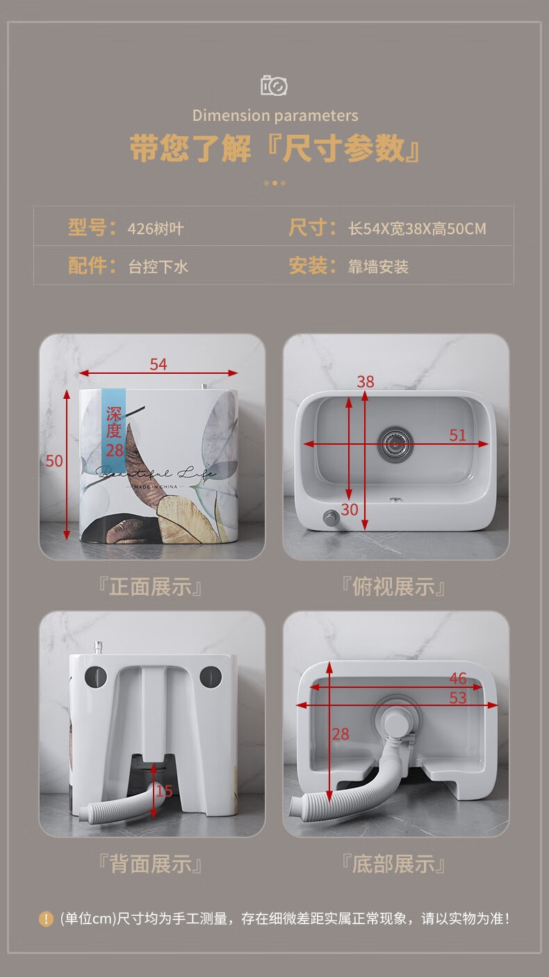 Haoge Nordic mop pool mop pool balcony bathroom large and small mop bucket mop basin floor-standing mop pool HG-426 (five-color leaves) + silver spray gun