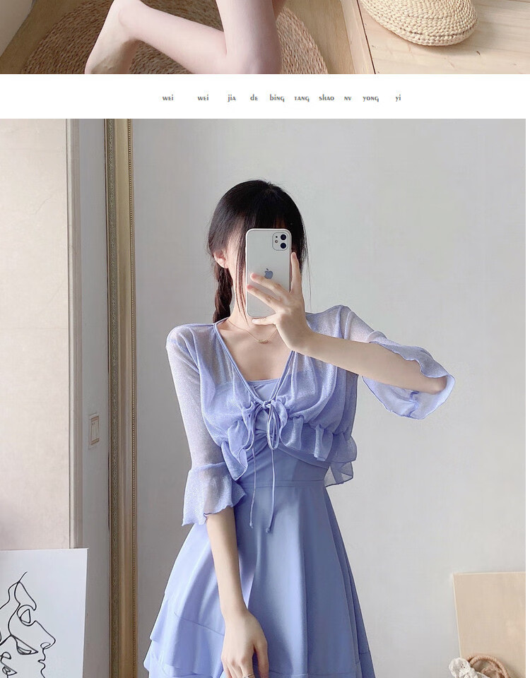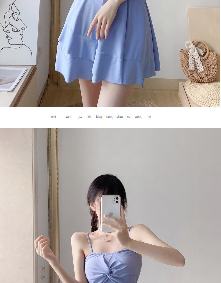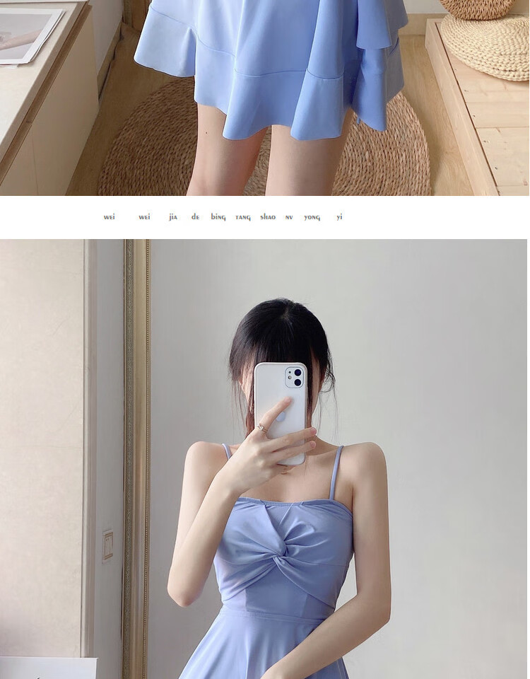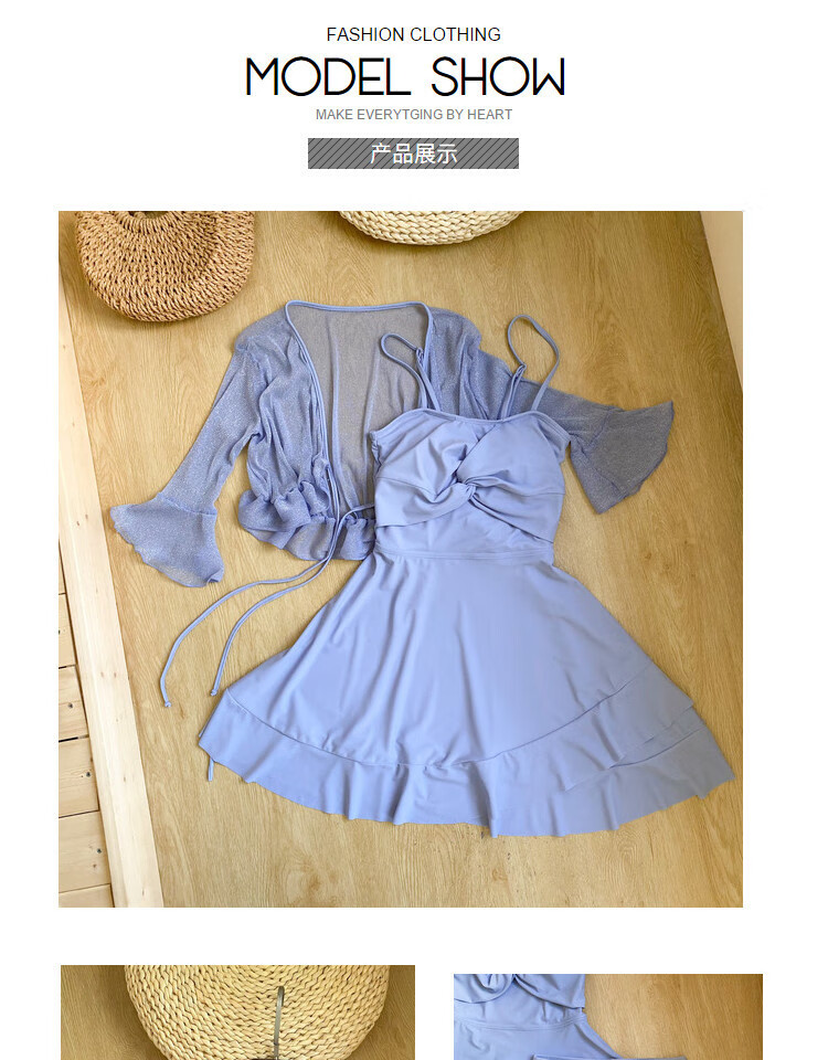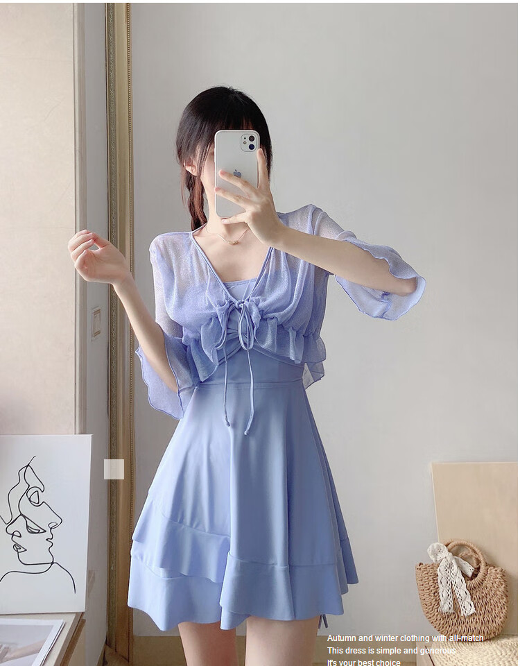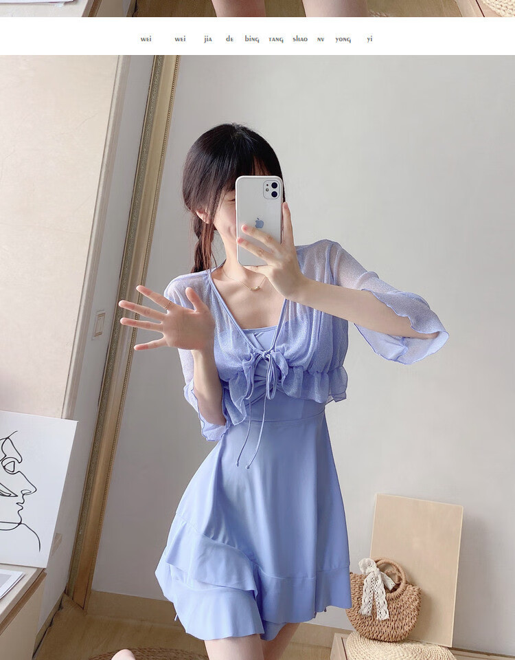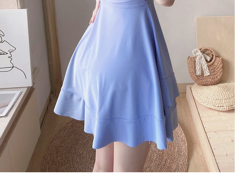 Bo Na Ling swimsuit women's ins hot spring swimsuit one-piece swimsuit outer skirt conservative sexy sun protection short sleeves slimming belly cover blue skirt swimsuit 80-120Jin Jin is equal to 0.5 kg