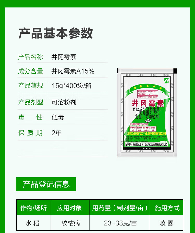 Jinggangmycin A15% rice smut, sheath and blight, wheat scab, and blight pesticide and fungicide 15g*100 bags