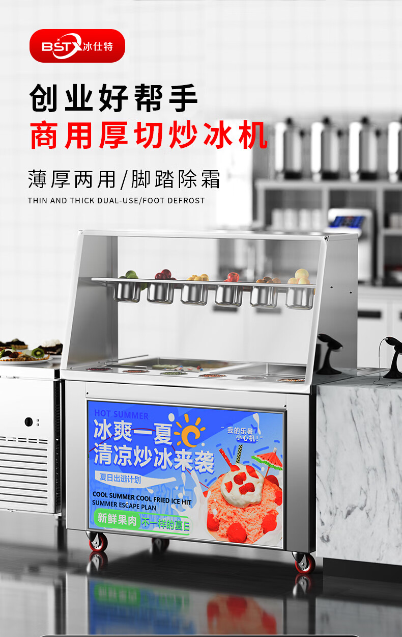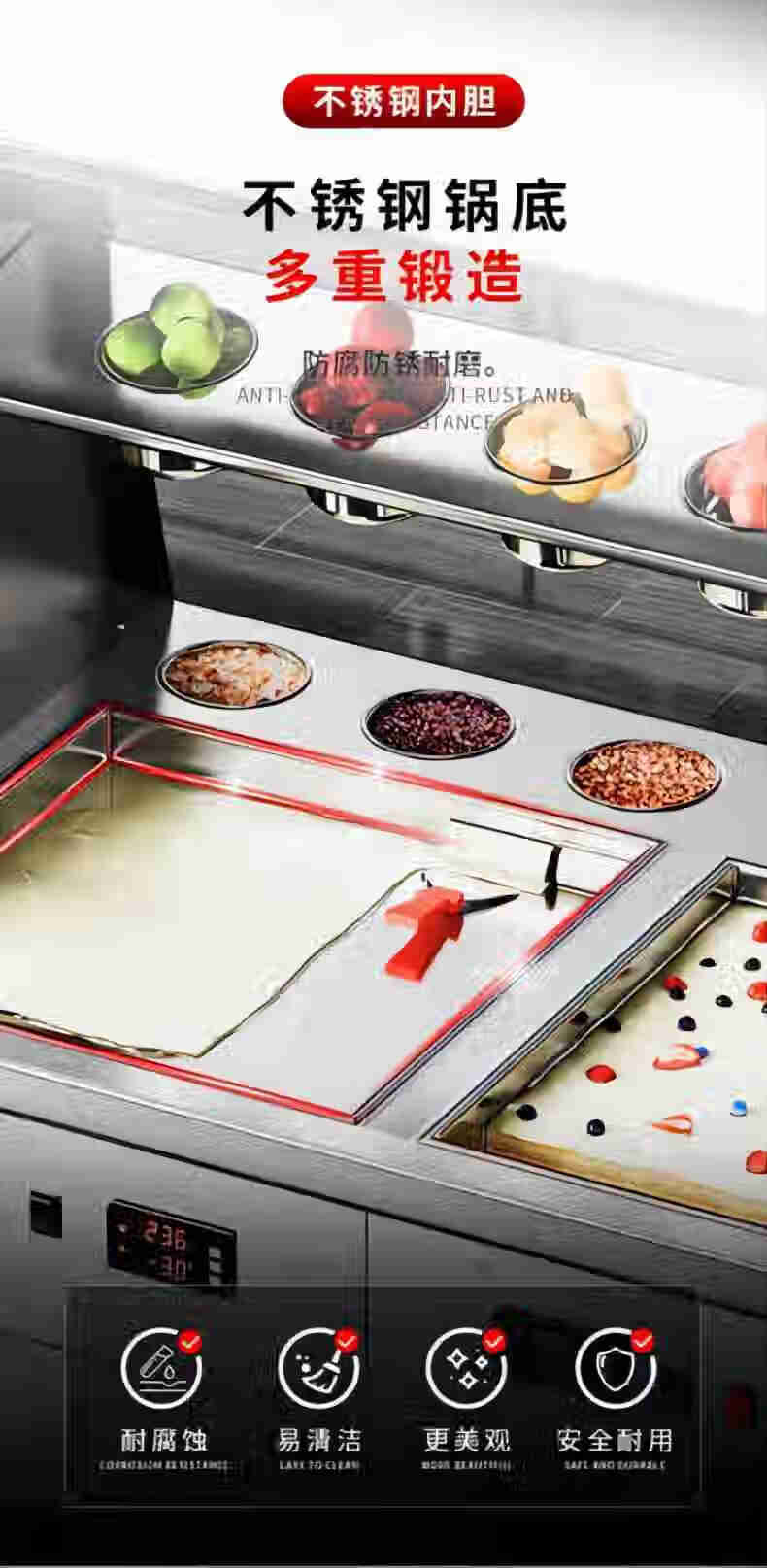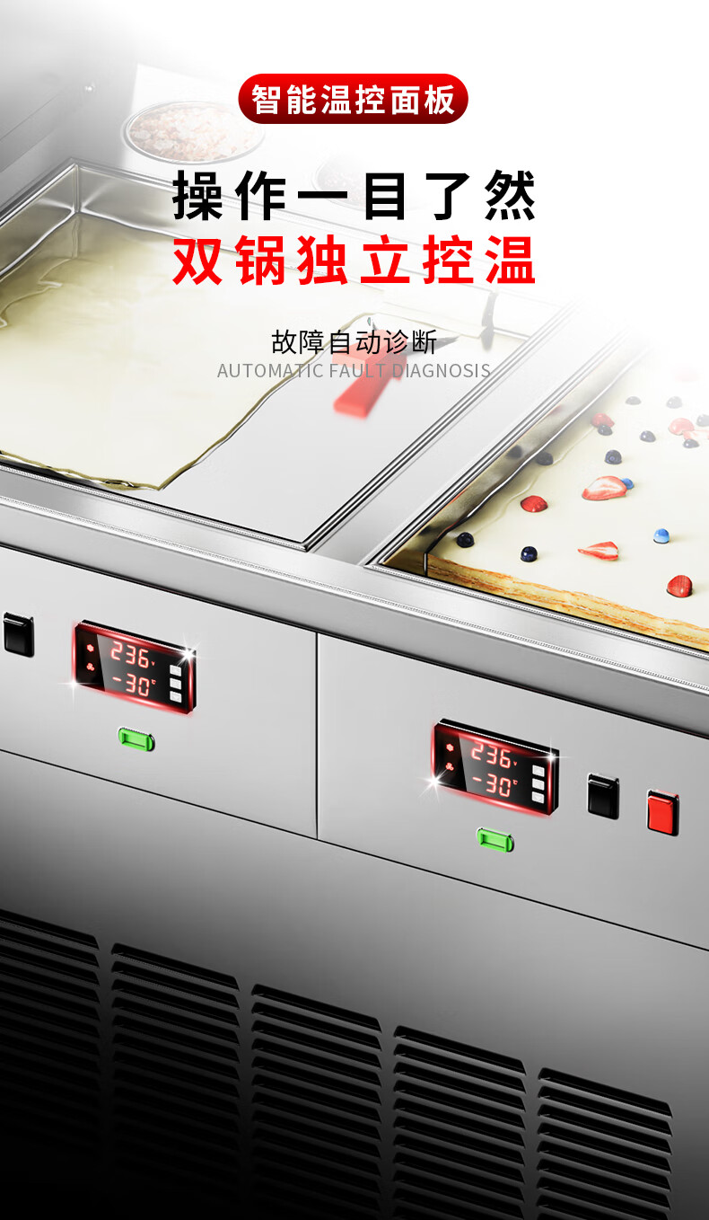 冰仕特厚切摆摊酸奶机冰淇淋炒冰机商用炒奶炒冰激凌卷机单双锅机 【方锅】经济款(厚切+炒卷)1.25P单压缩机