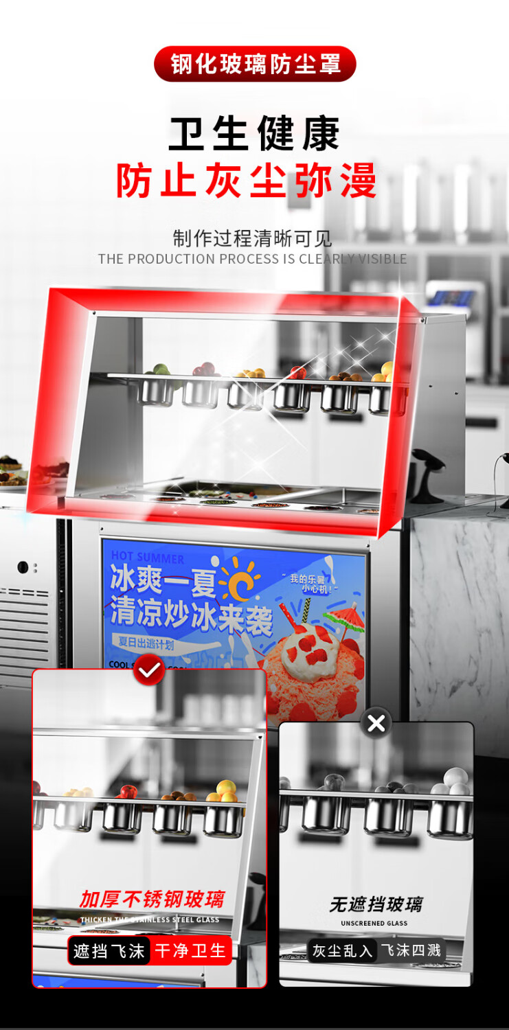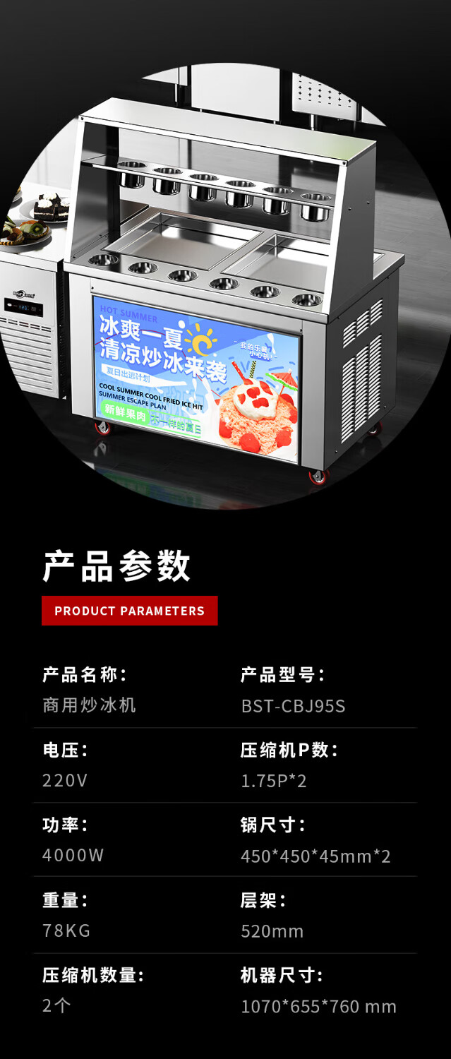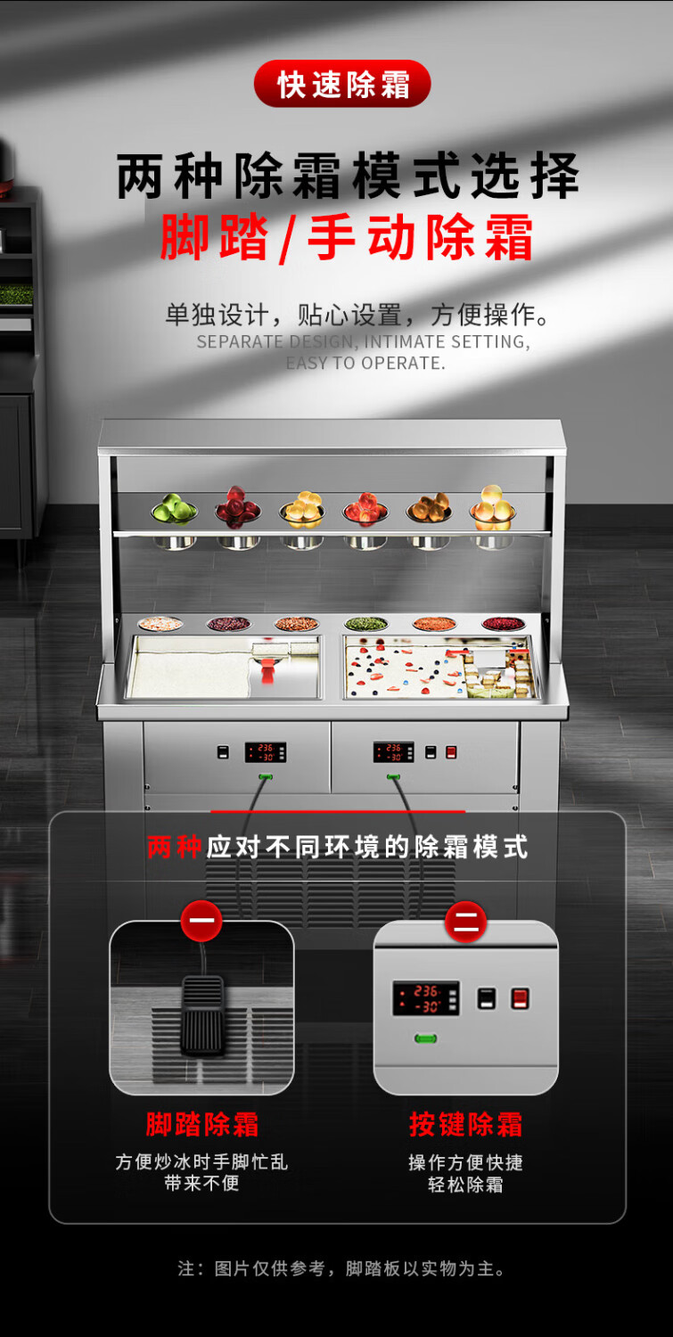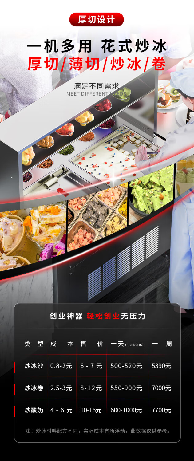 冰仕特厚切摆摊酸奶机冰淇淋炒冰机商用炒奶炒冰激凌卷机单双锅机 【方锅】经济款(厚切+炒卷)1.25P单压缩机