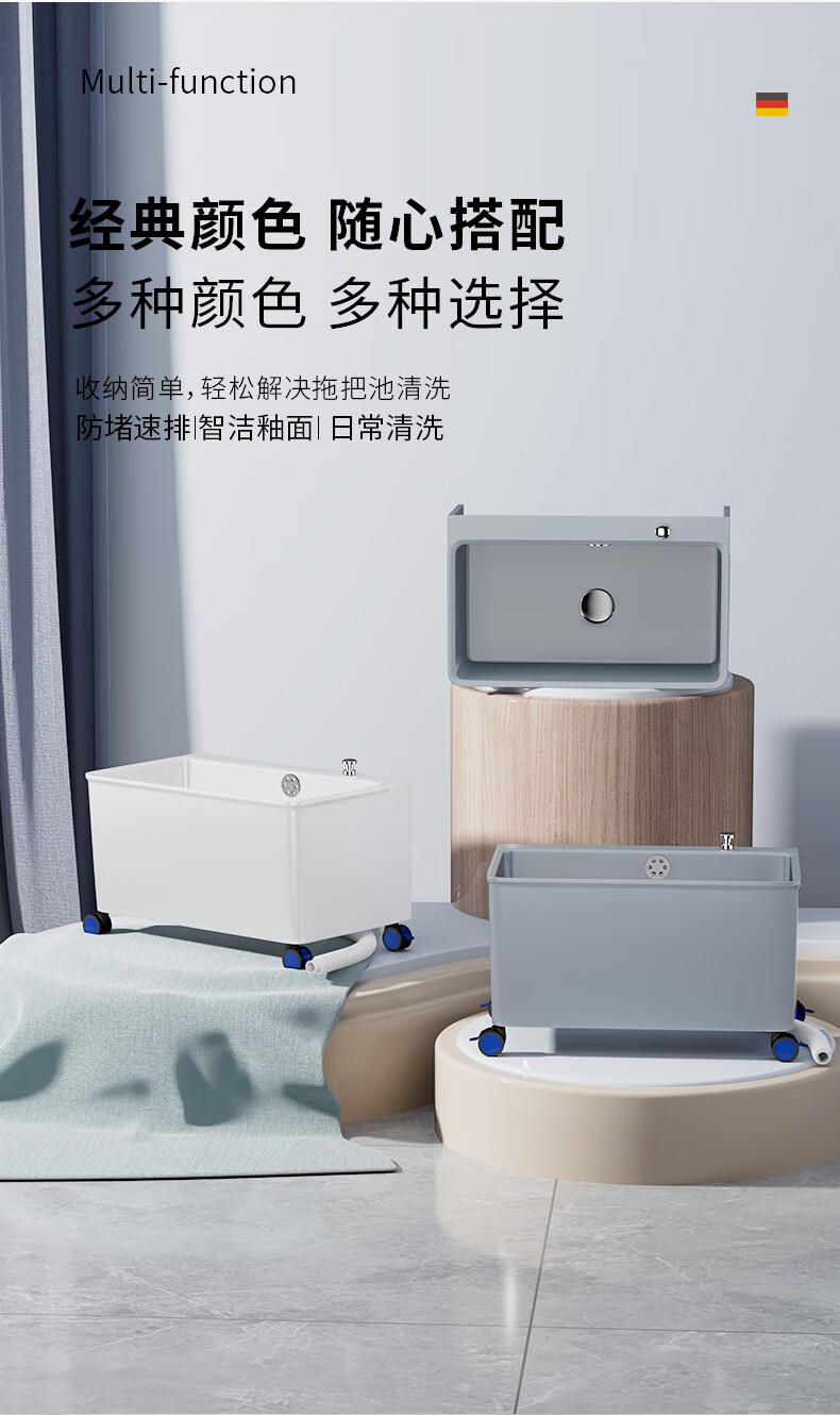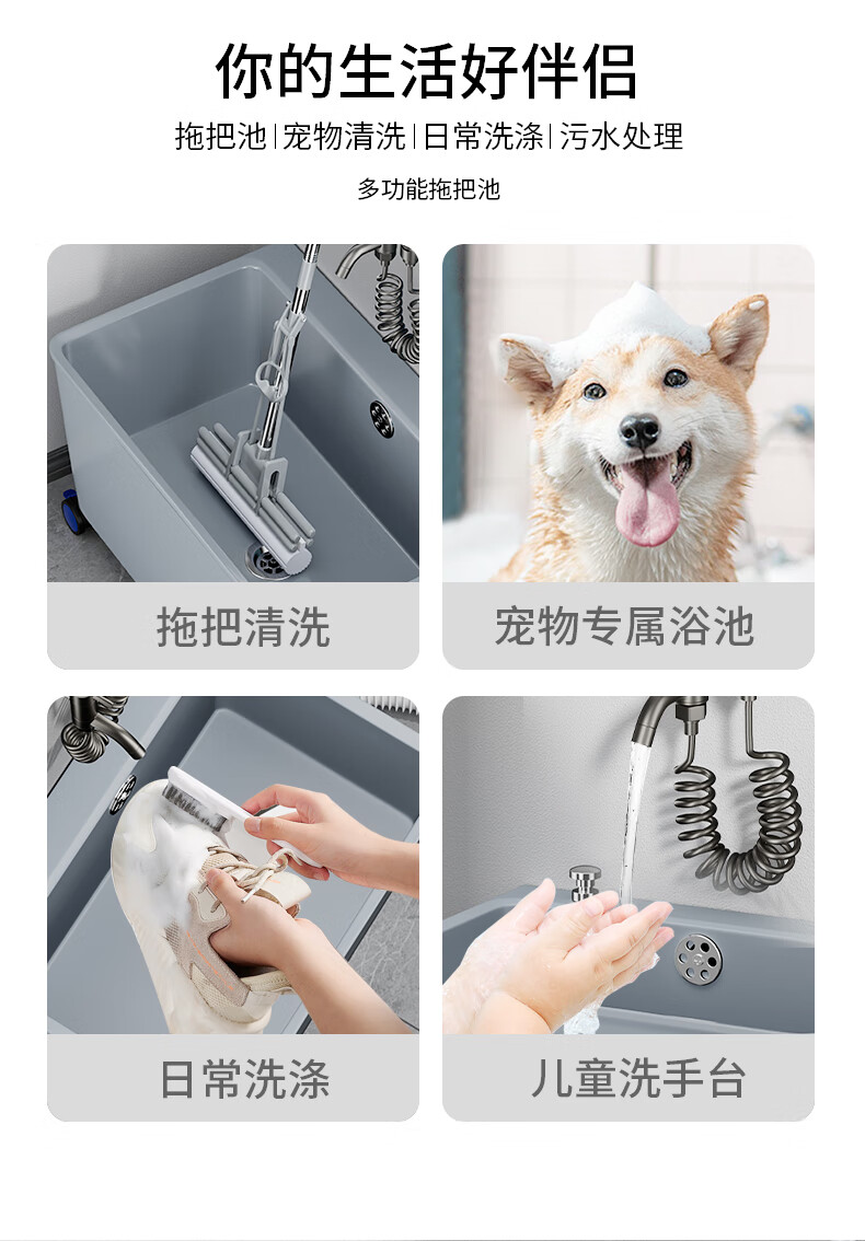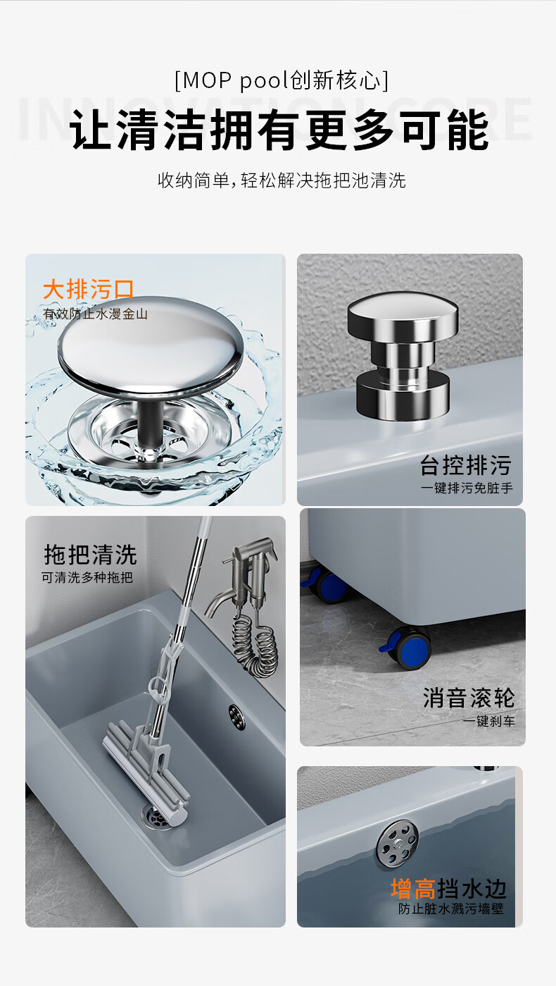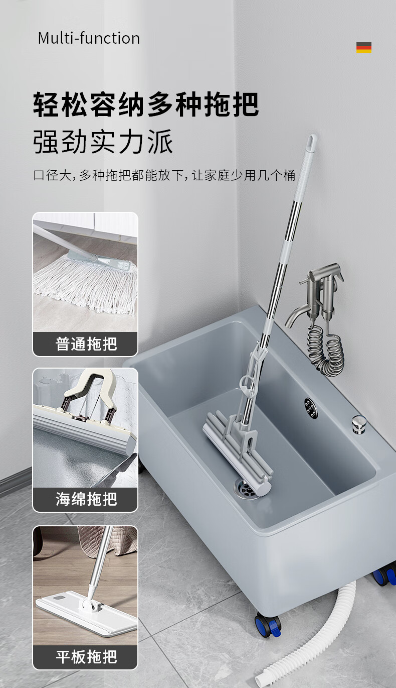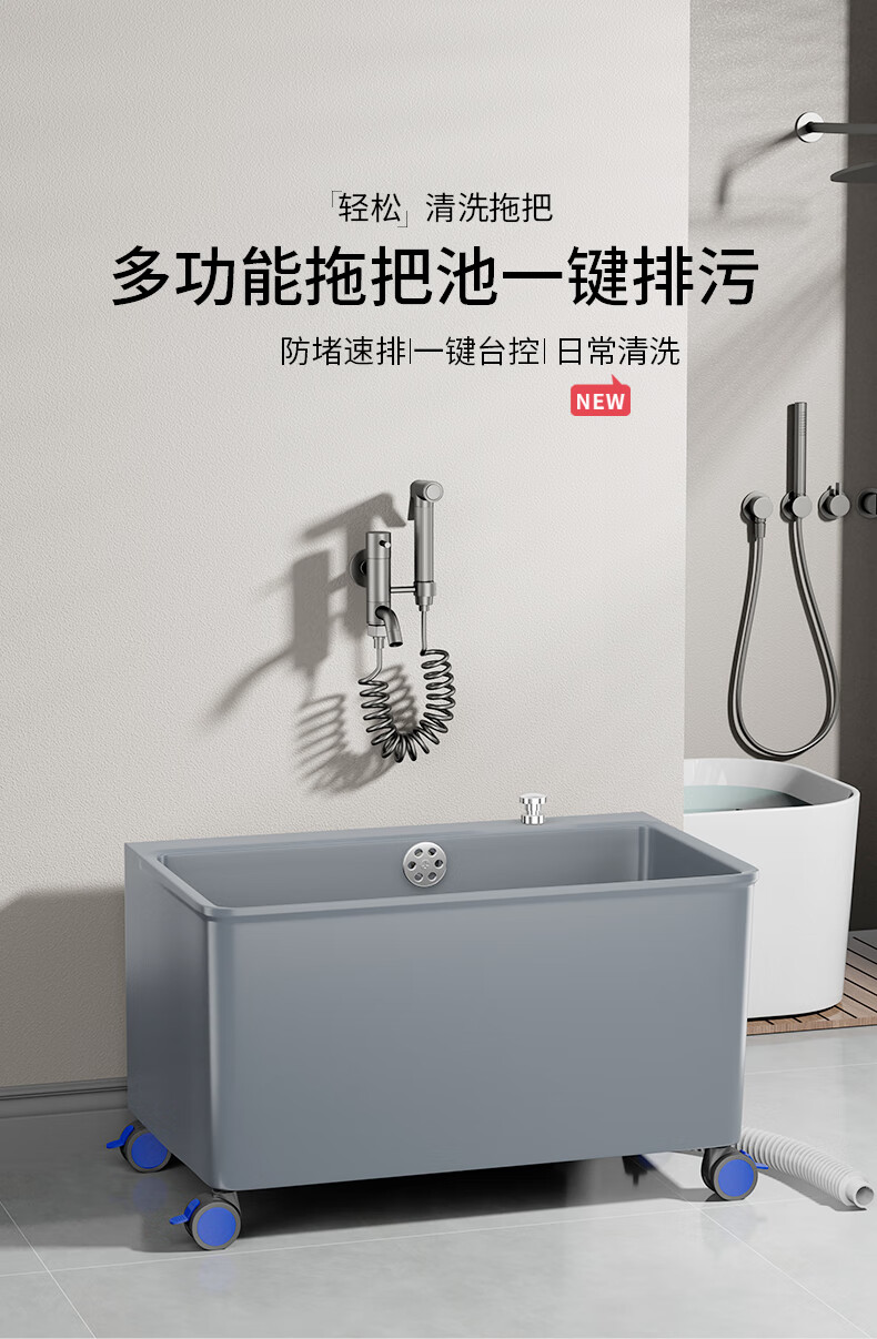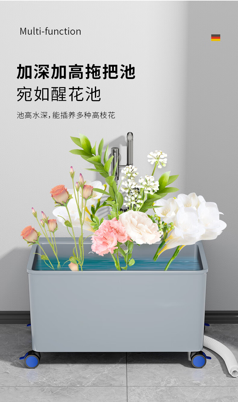 Blue Peony Mop Pool Balcony High Mop Basin Bathroom Household Mop Pool Mop Pool Mobile Washing Basin Pool Sink White Fixed Large Size 65cm + Full Copper Spray Gun