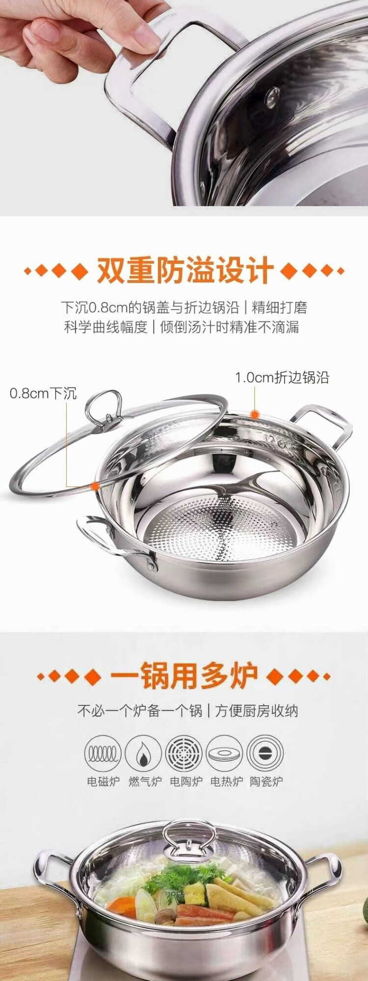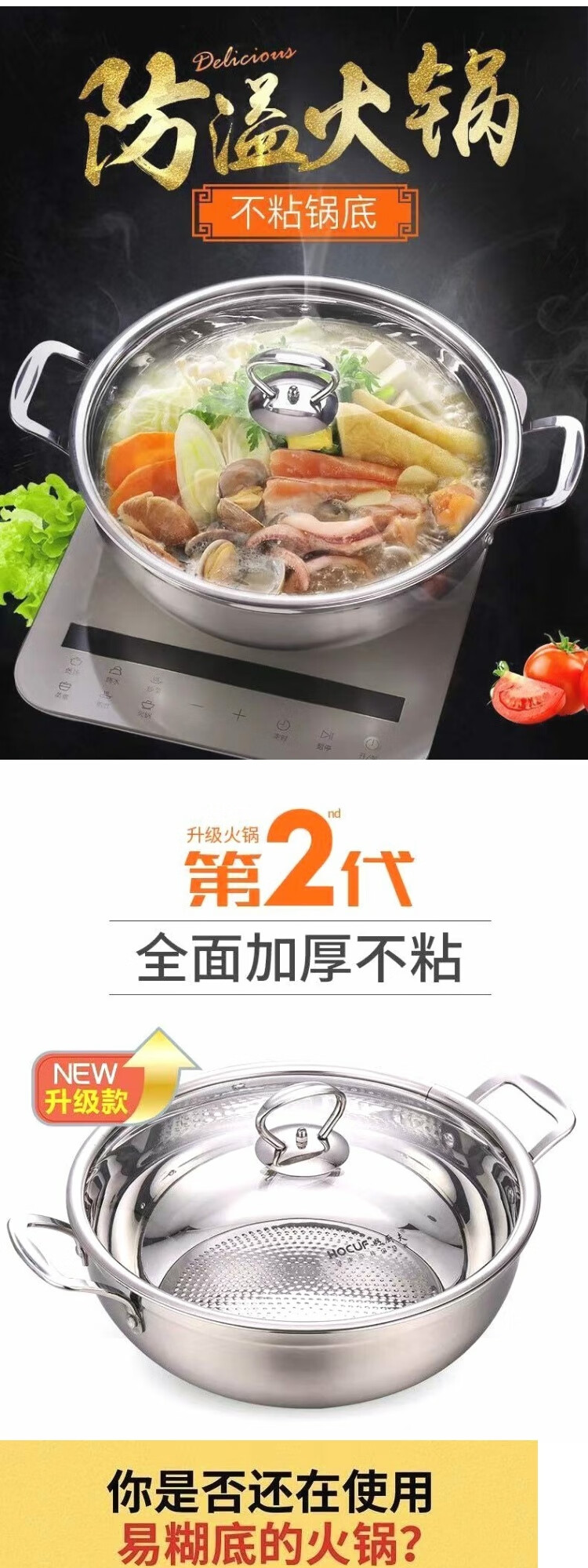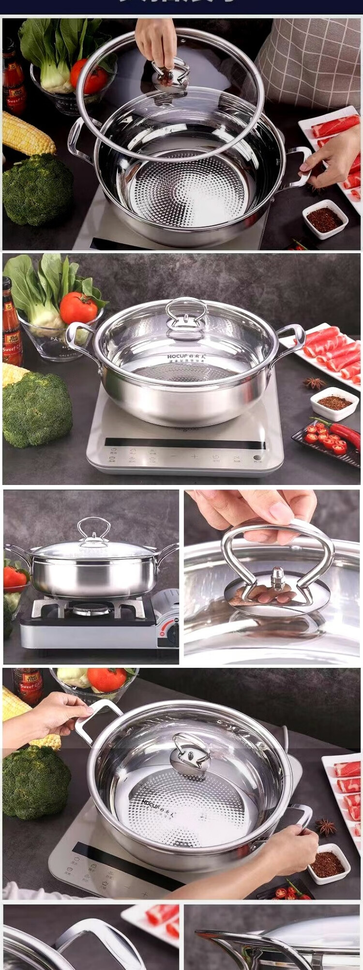 Meikejie stainless steel hot pot pot with deep and extra thick double bottom non-stick pot gas induction cooker open flame special household double bottom non-stick hot pot/all steel handle 34cm
