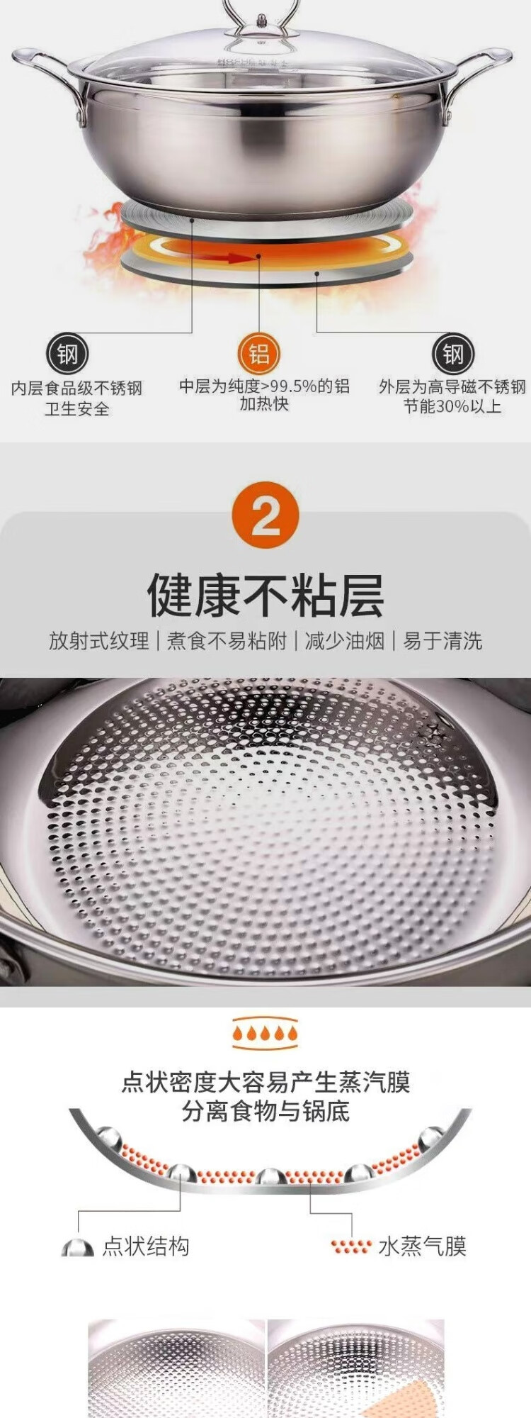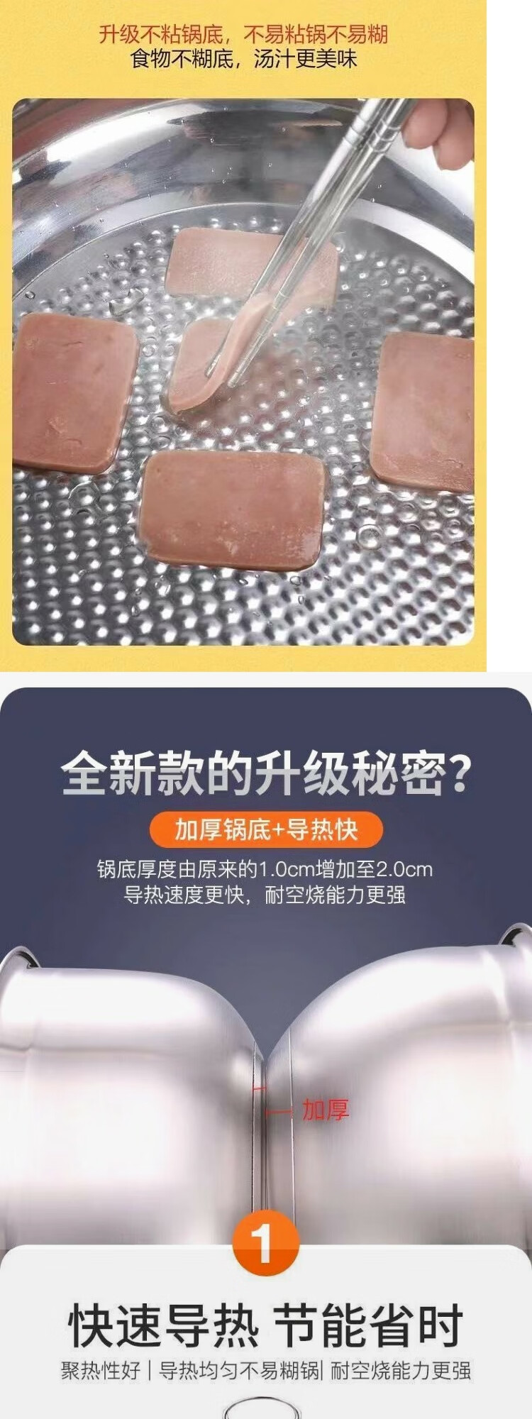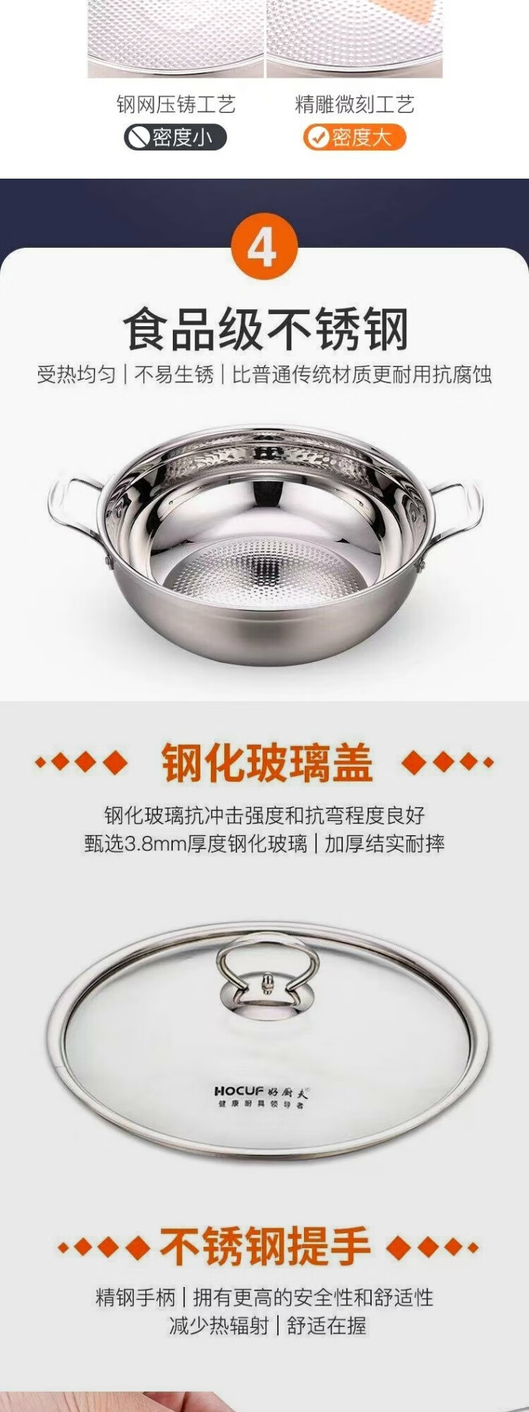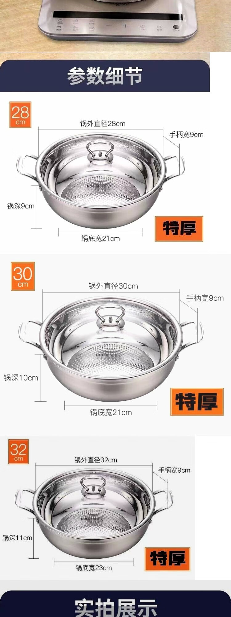 Meikejie stainless steel hot pot pot with deep and extra thick double bottom non-stick pot gas induction cooker open flame special household double bottom non-stick hot pot/all steel handle 34cm